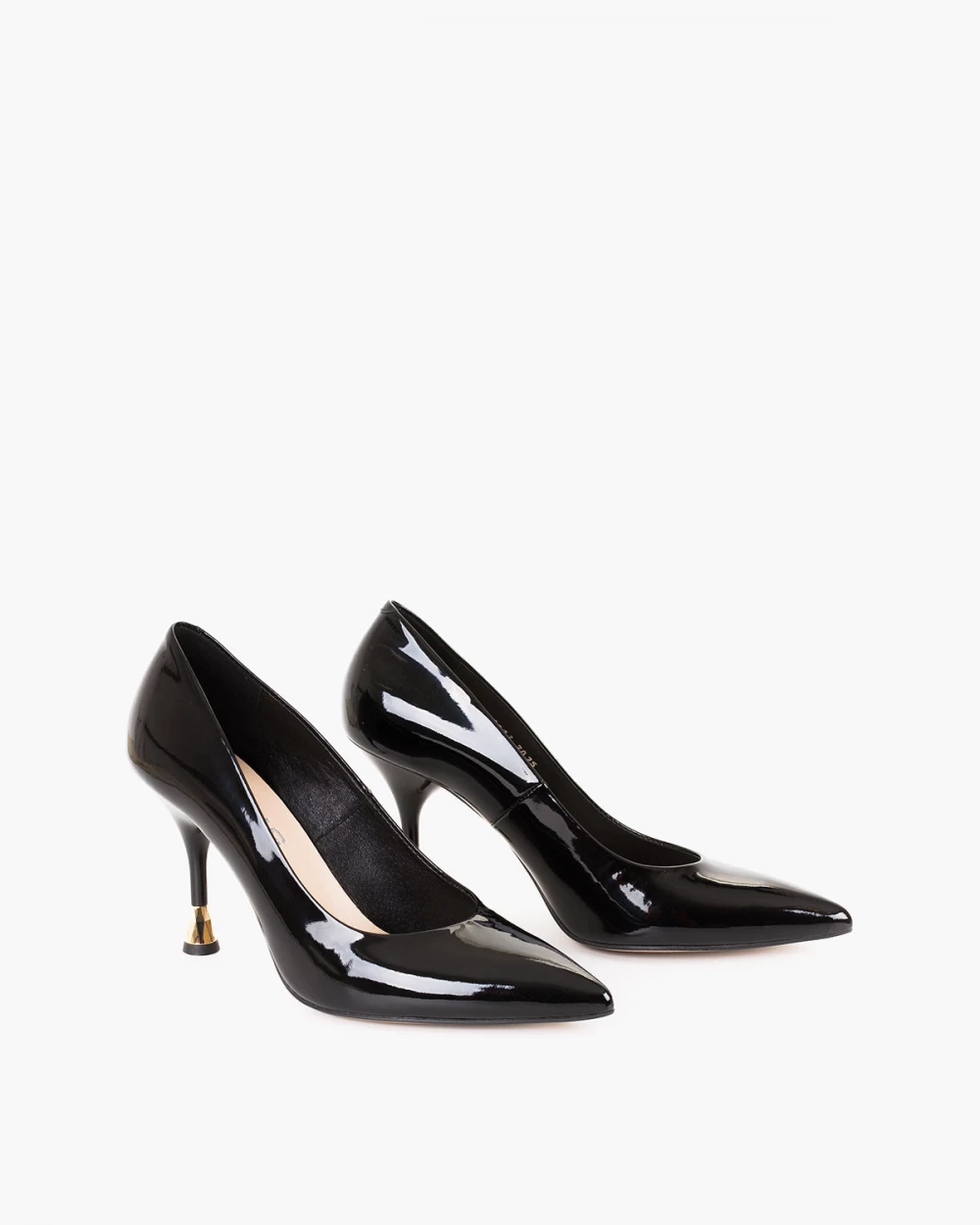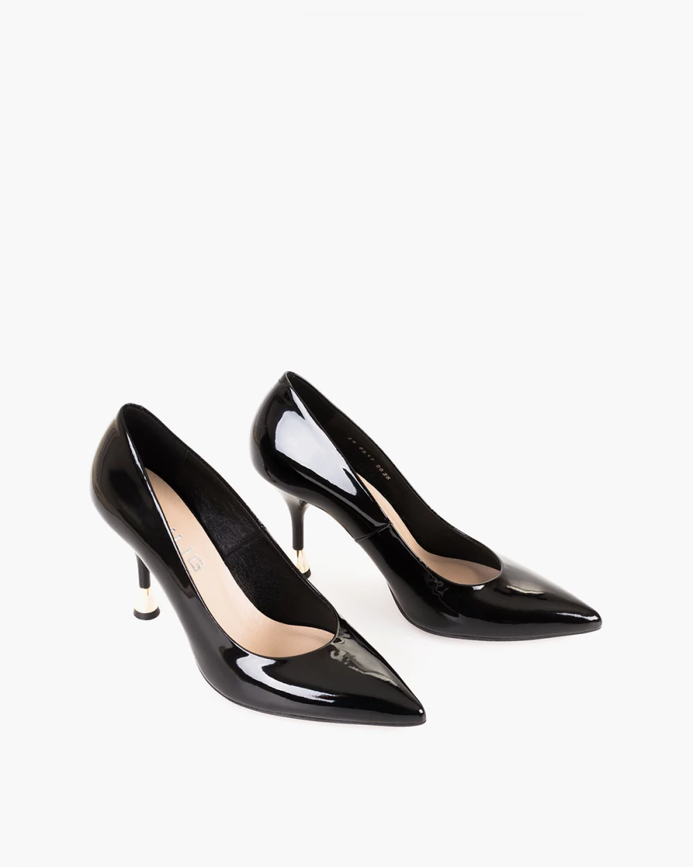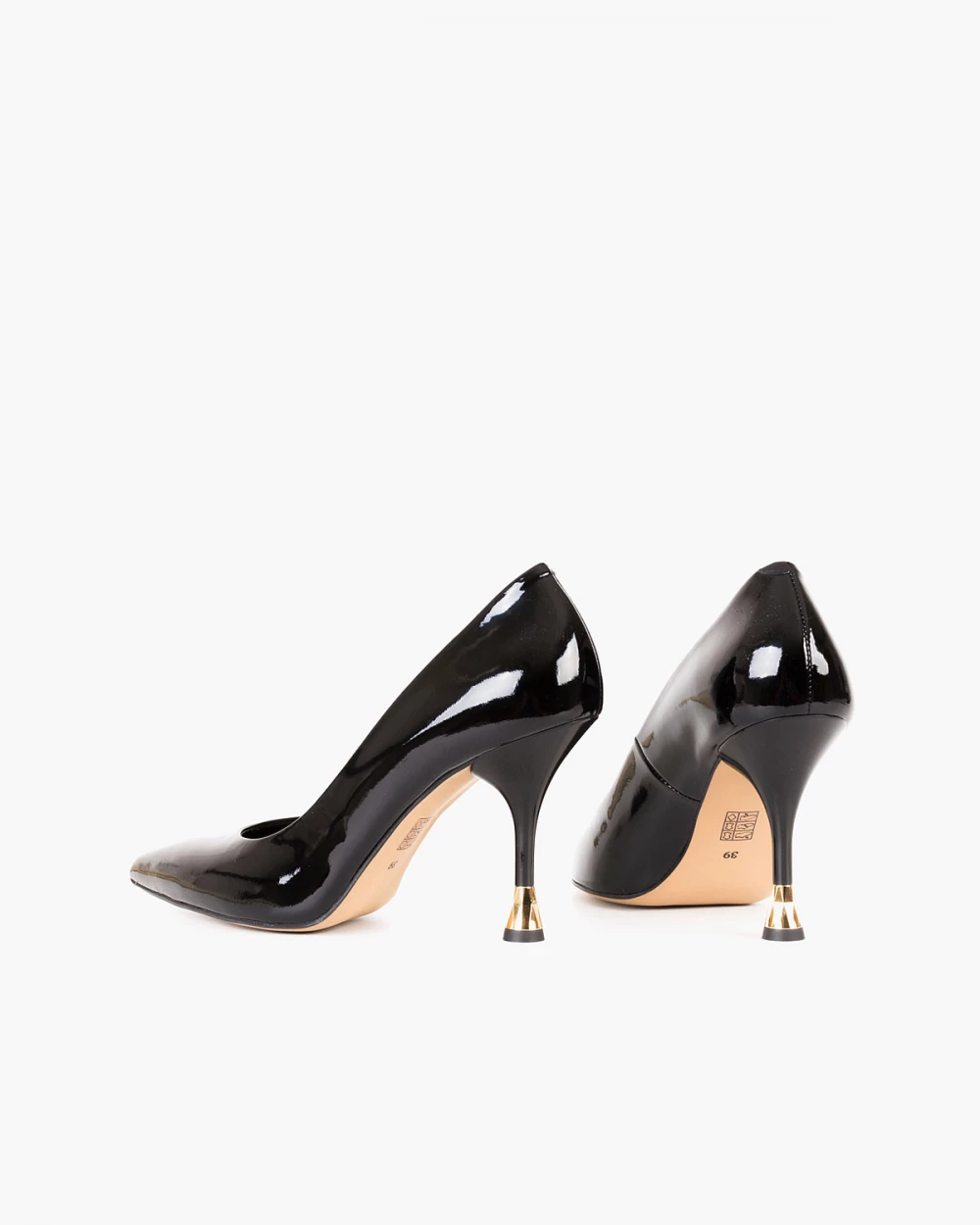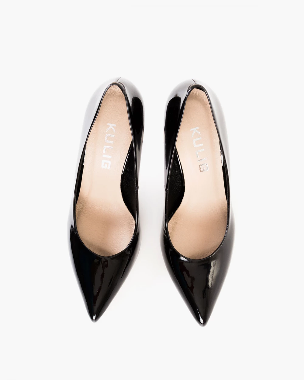 Czarne czółenka ze skóry lakierowanej na szpilce