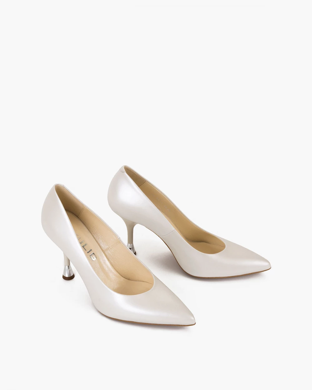 Perłowe czółenka damskie ze skóry naturalnej na szpilce
