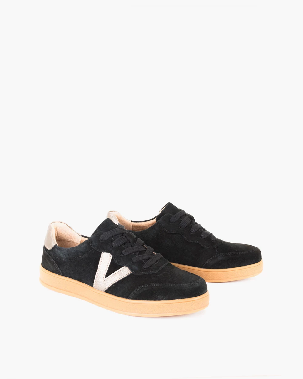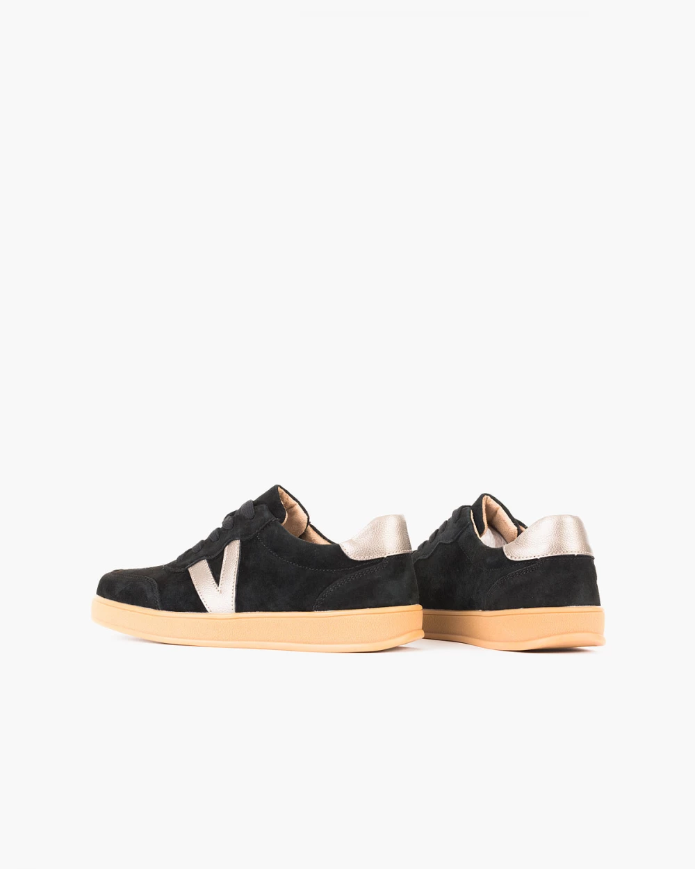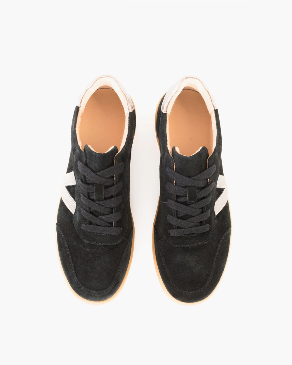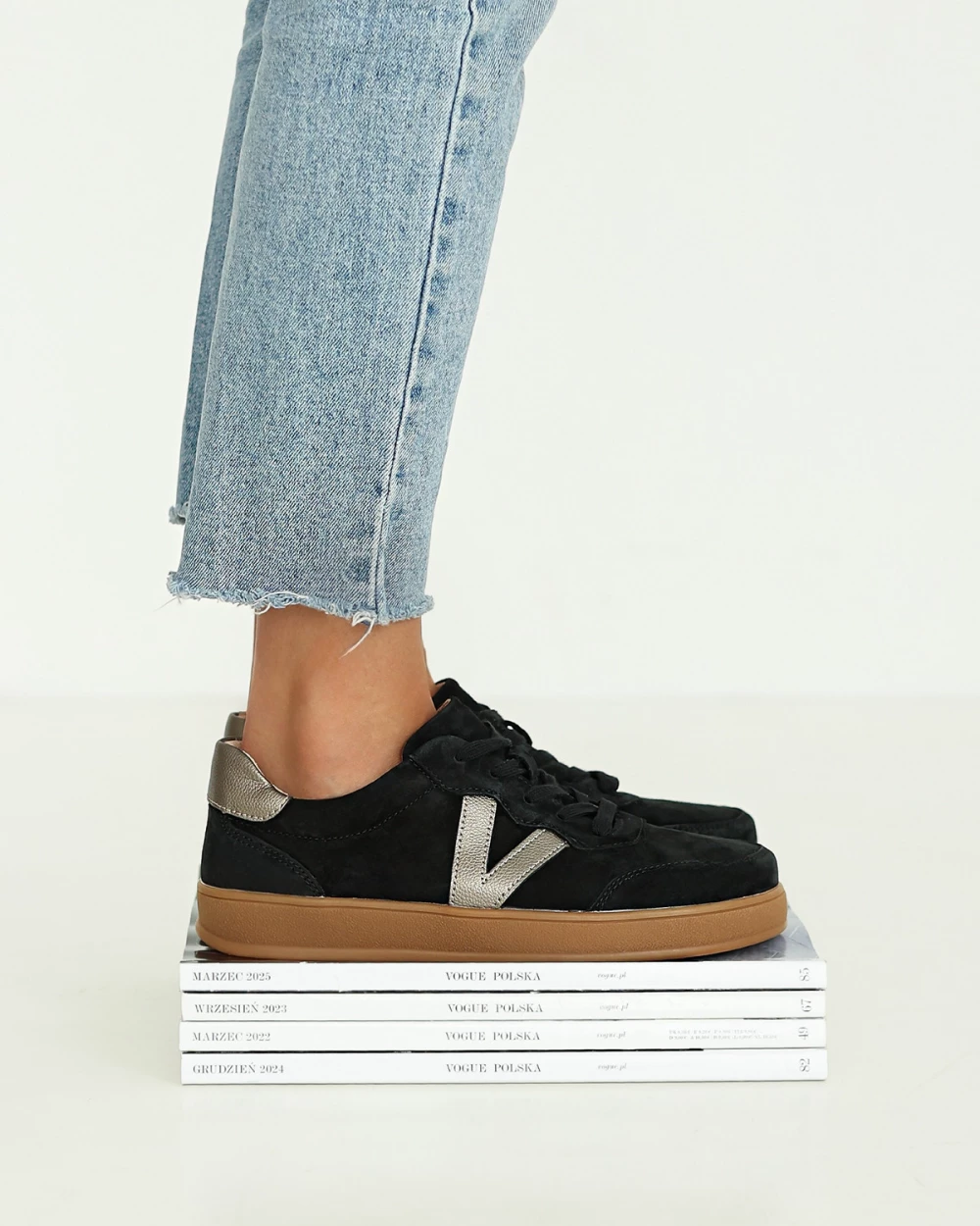Czarne trampki damskie sznurowane ze skóry zamszowej