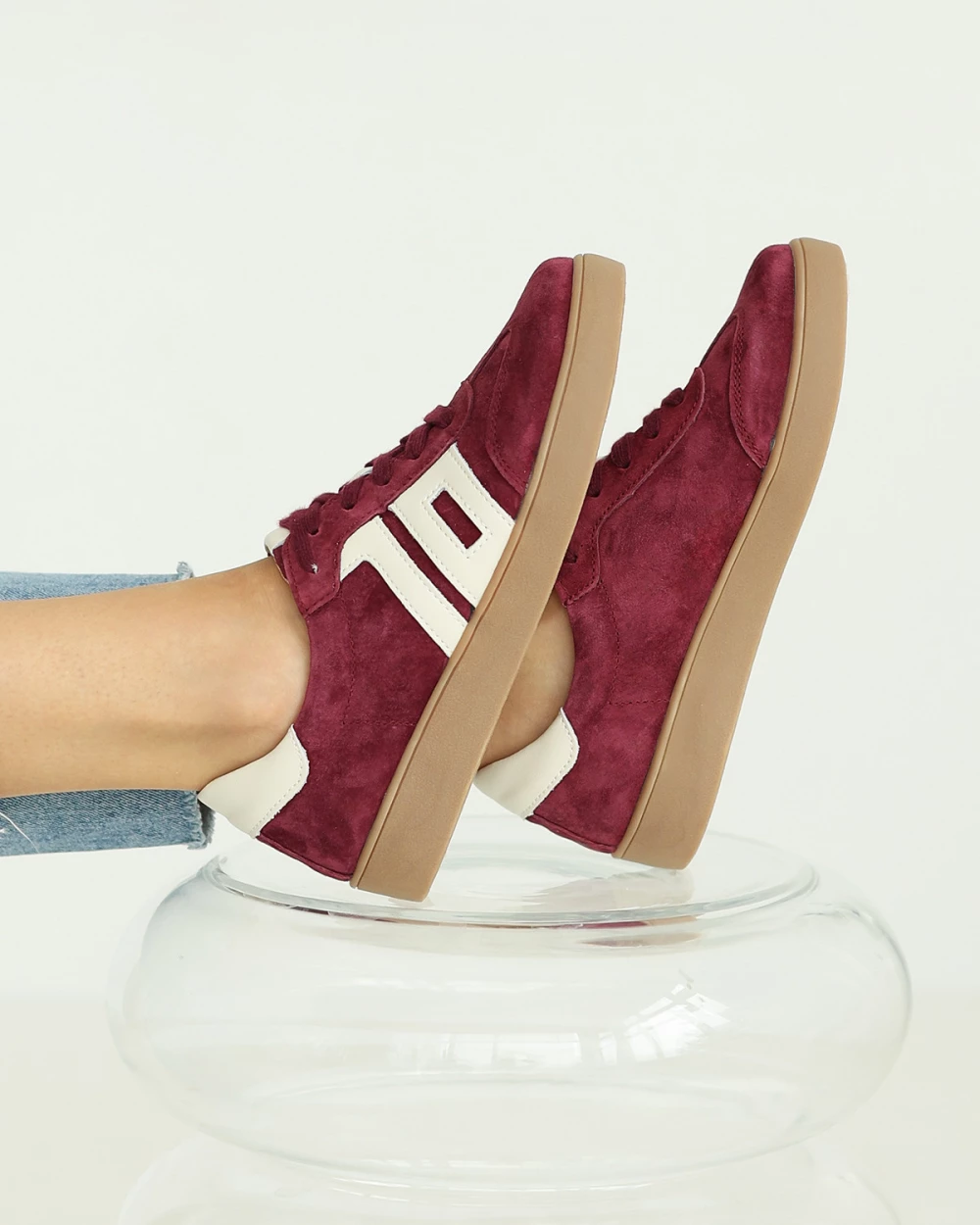 Bordowe trampki damskie z naturalnej skóry zamszowej