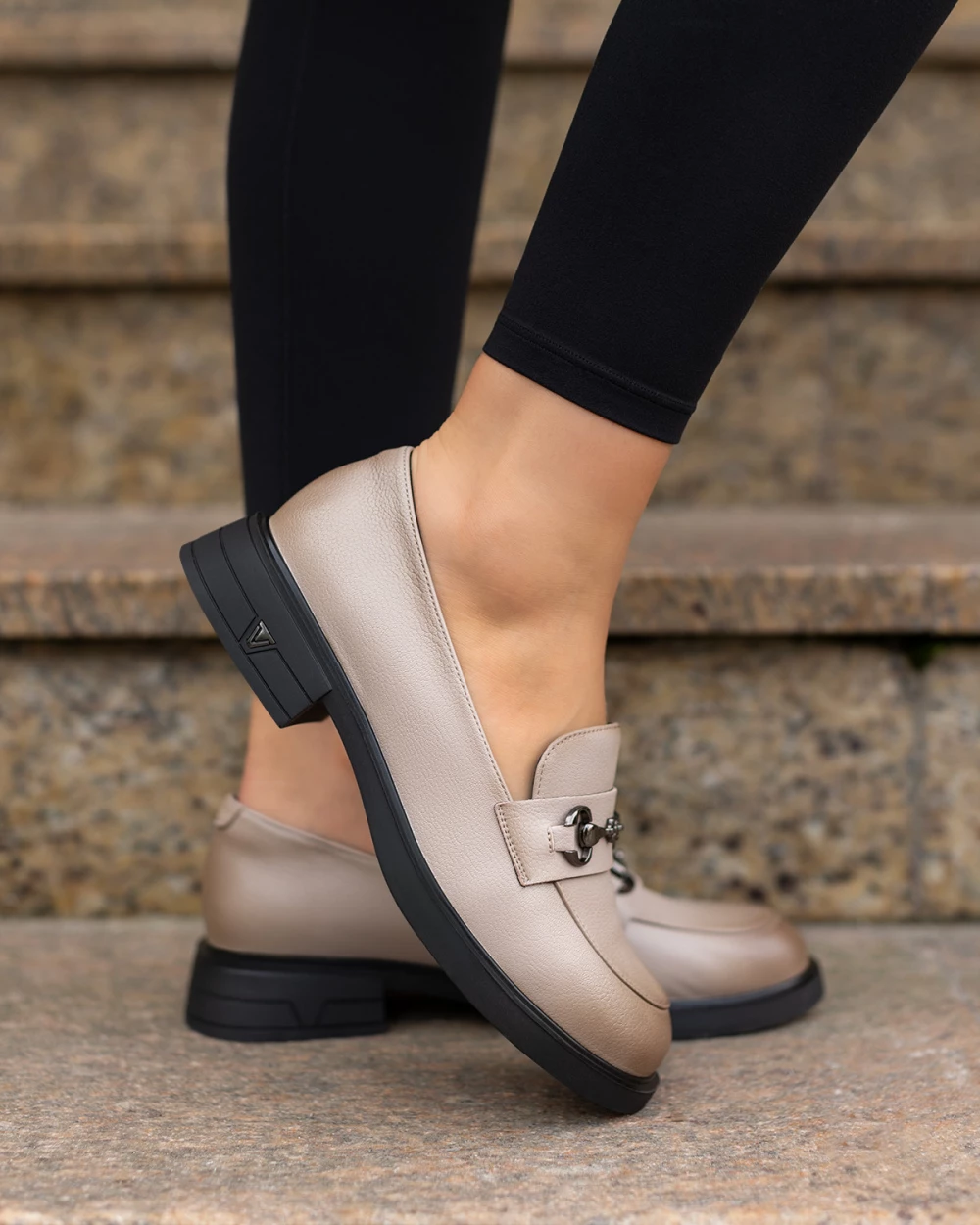 Beżowe mokasyny damskie z naturalnej skóry licowej