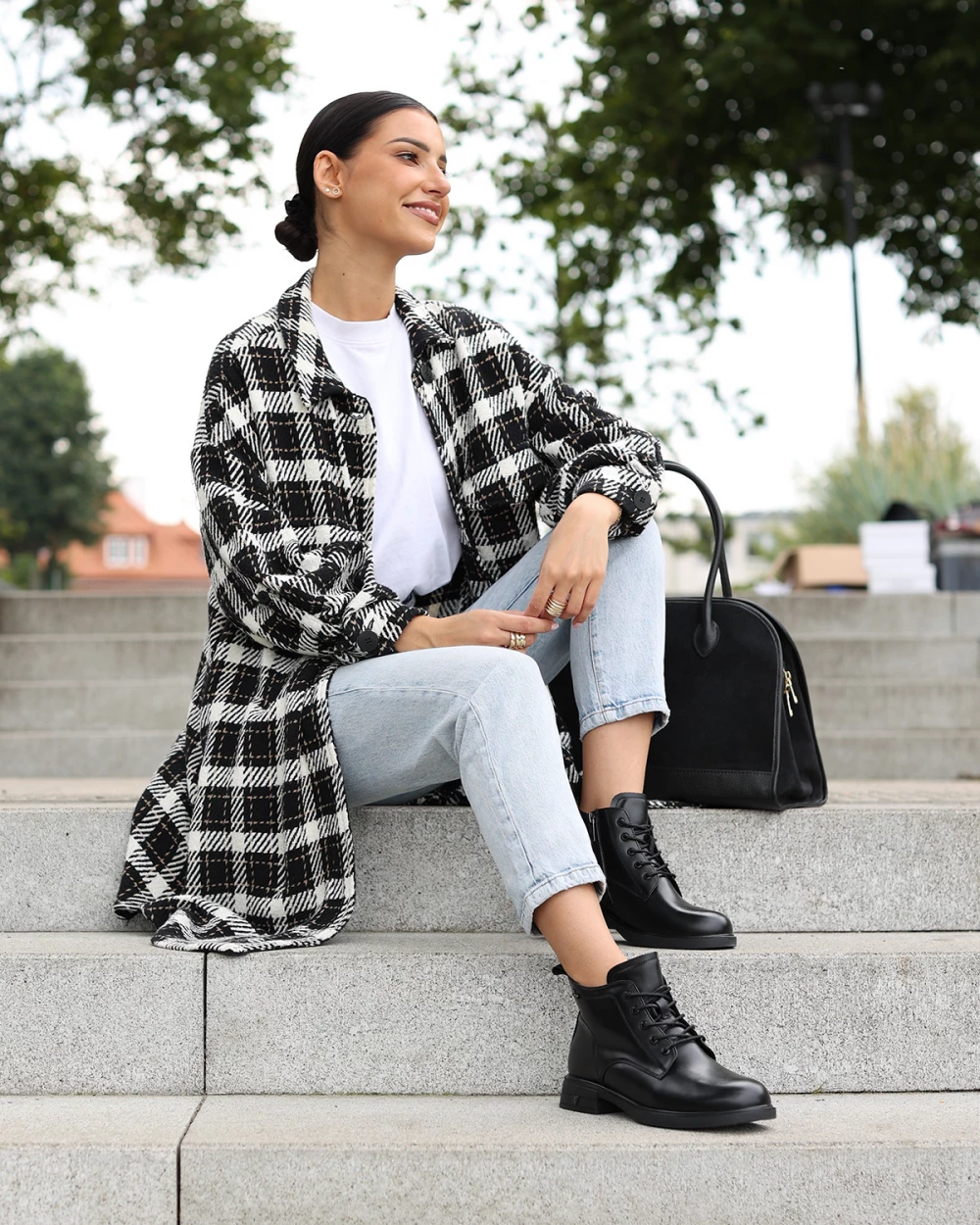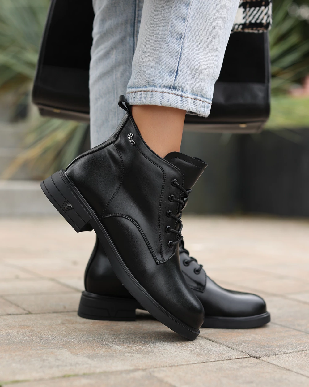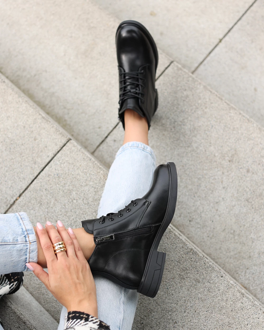 Czarne trzewiki damskie skórzane na niskim obcasie
