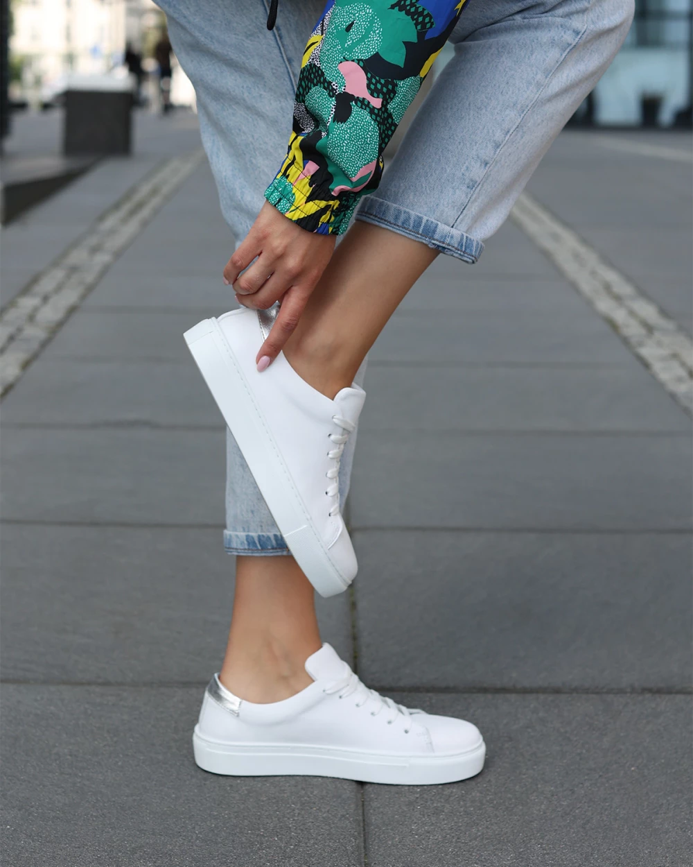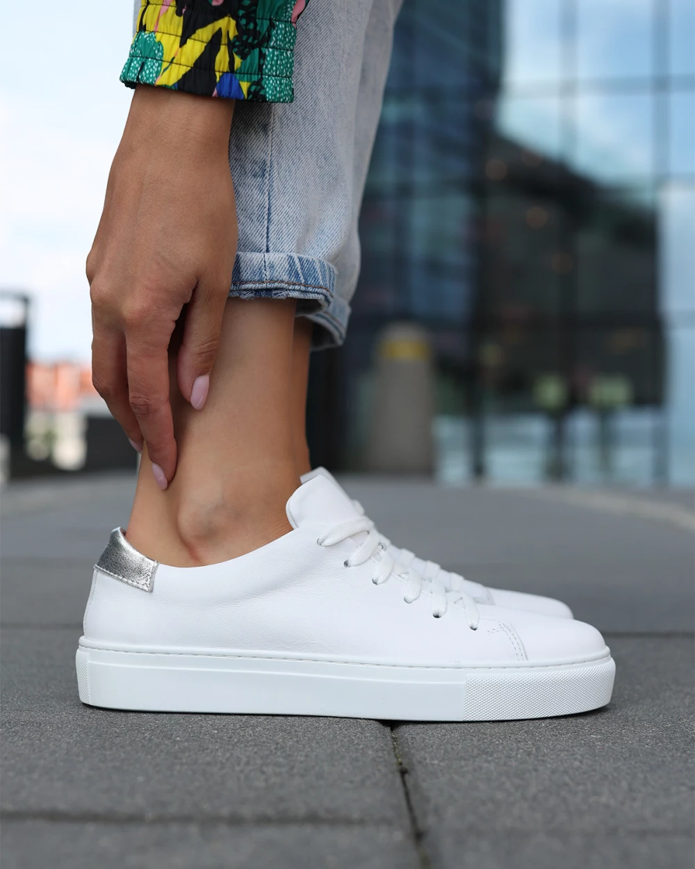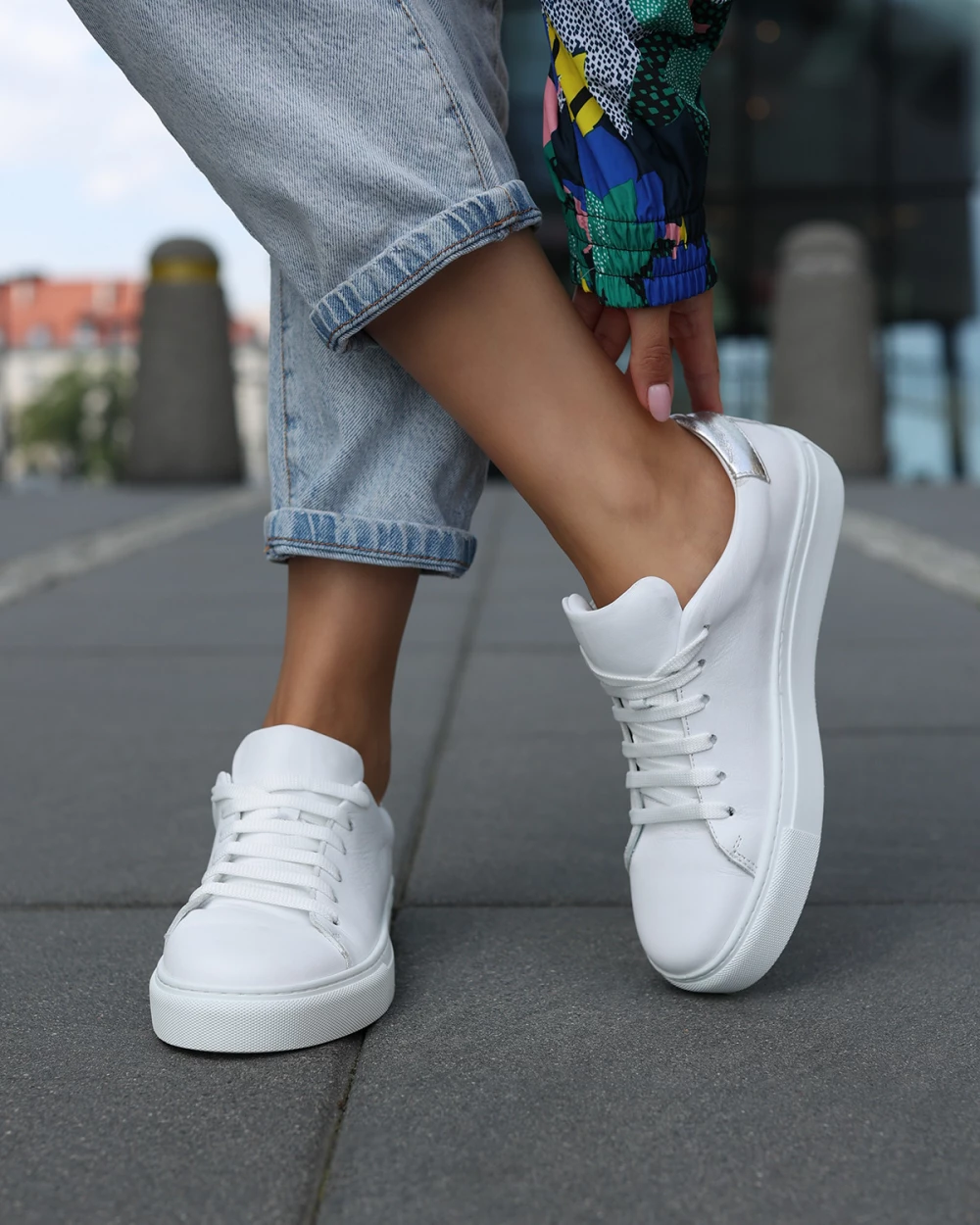 Białe adidasy damskie ze skóry licowej na platformie