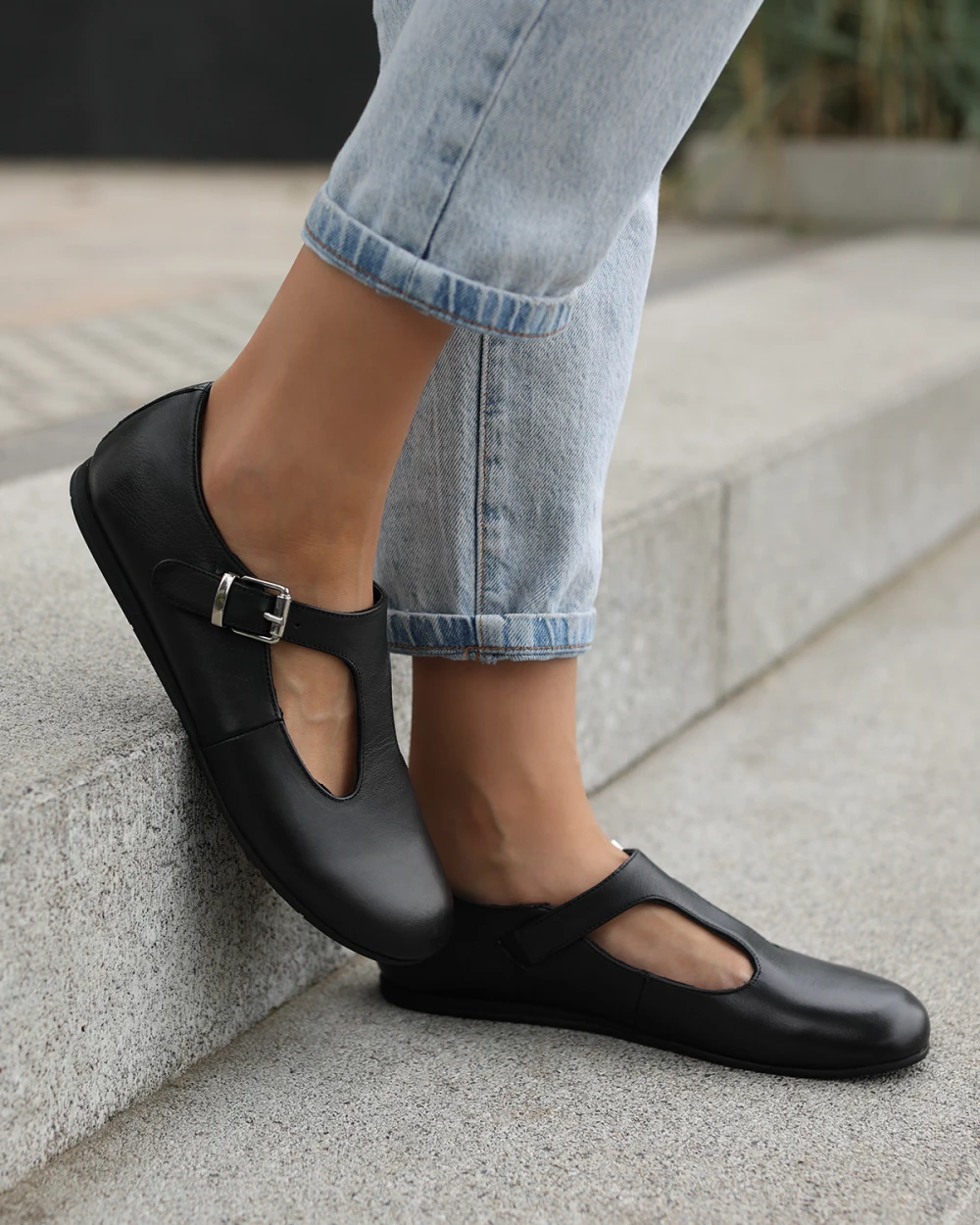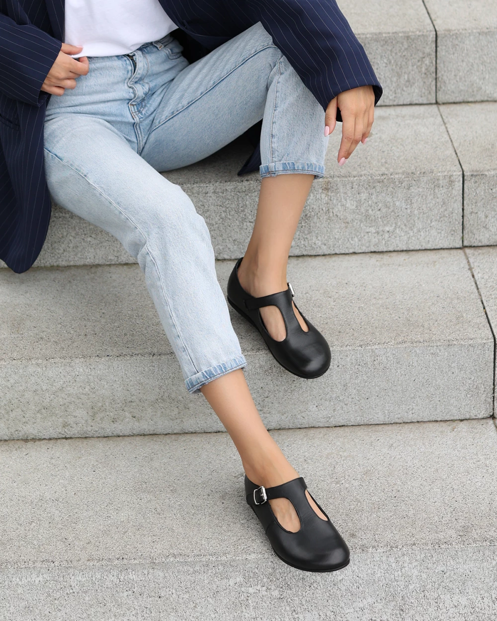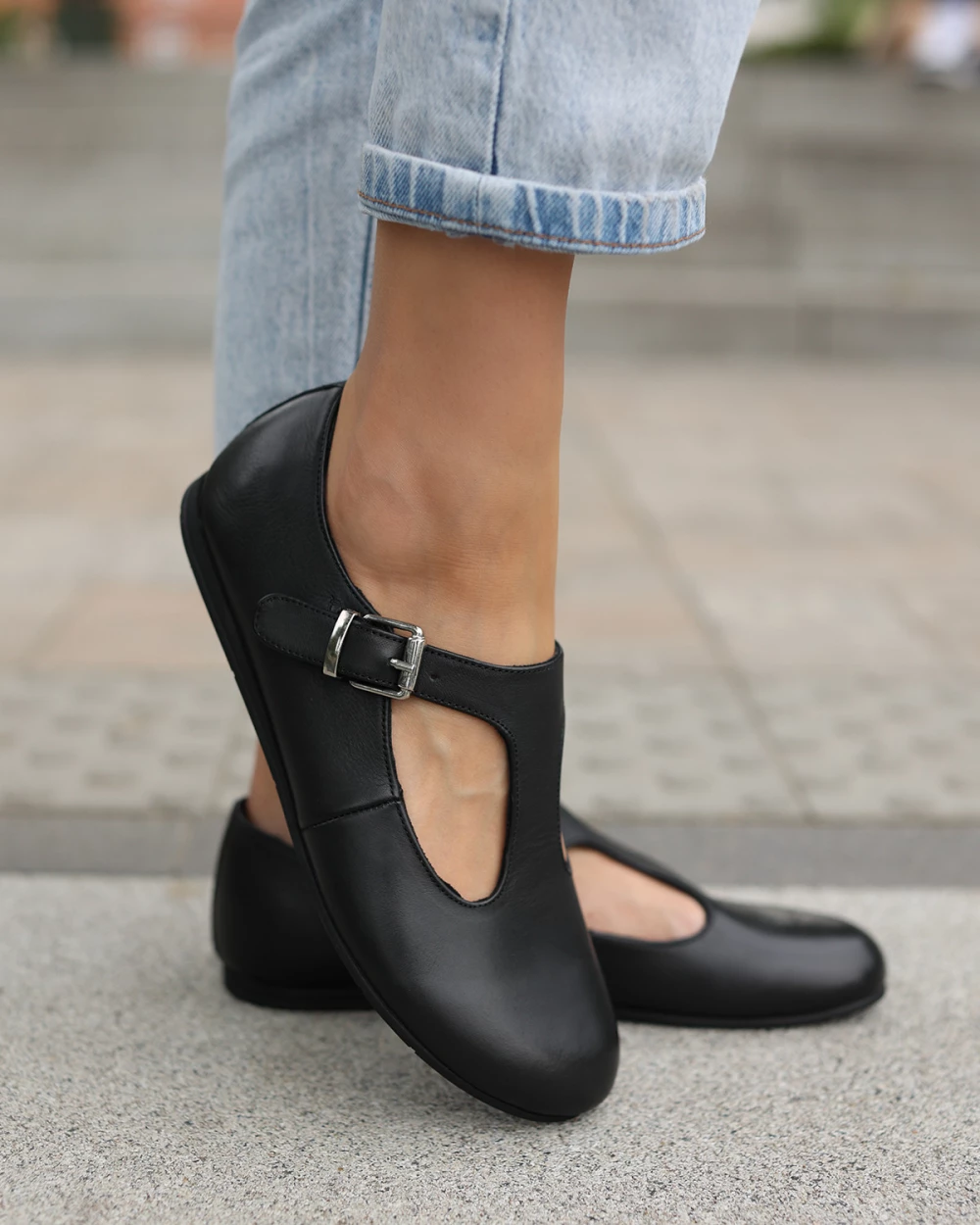 Czarne półbuty damskie skórzane zapinane na sprzączkę