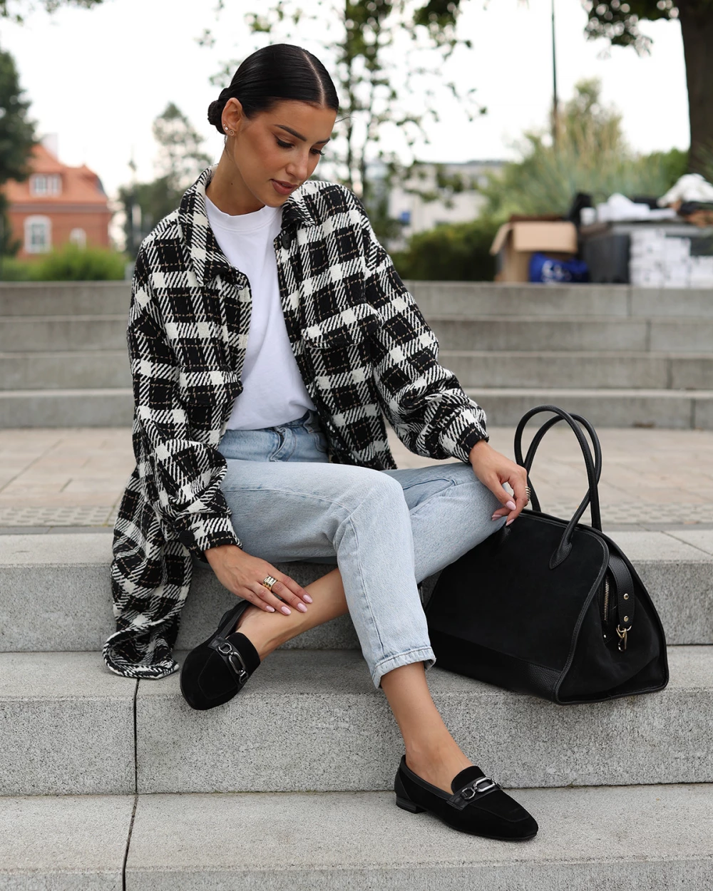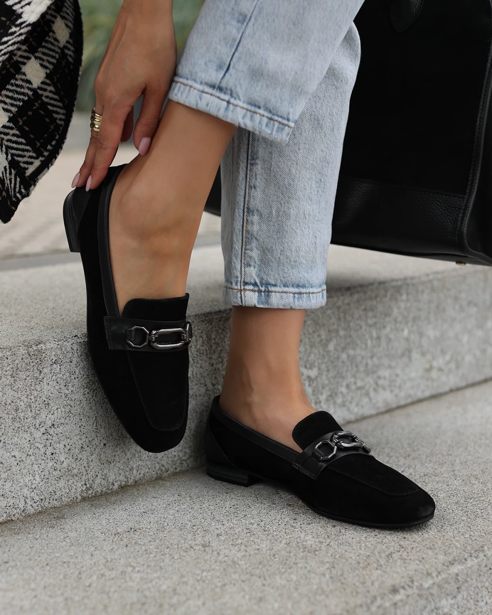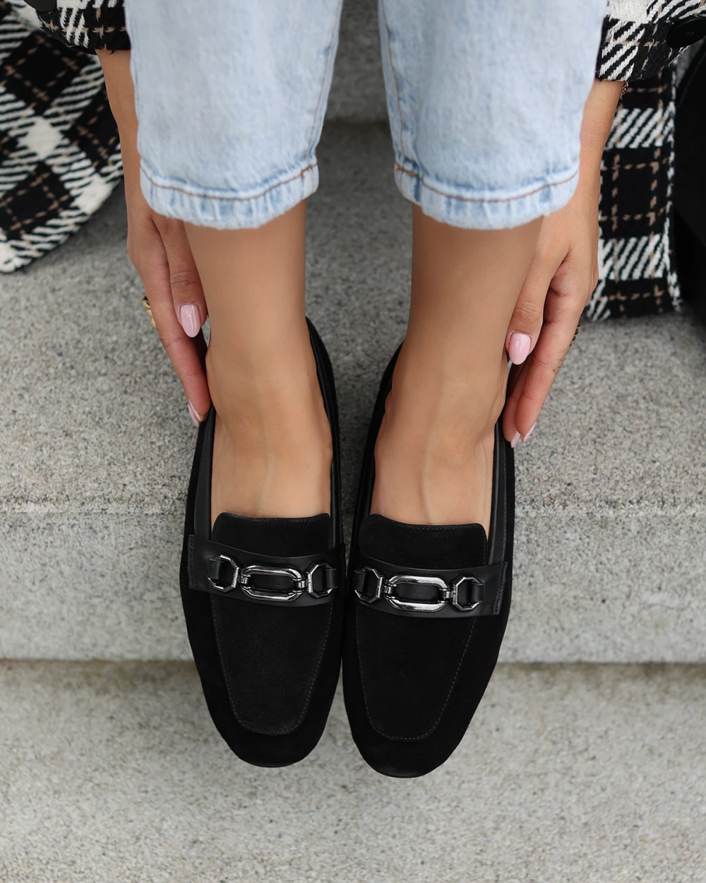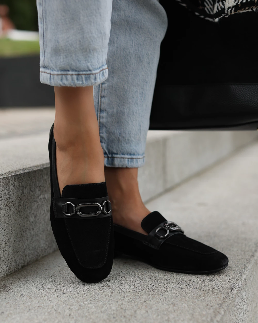 Czarne mokasyny damskie zamszowe na niskim obcasie
