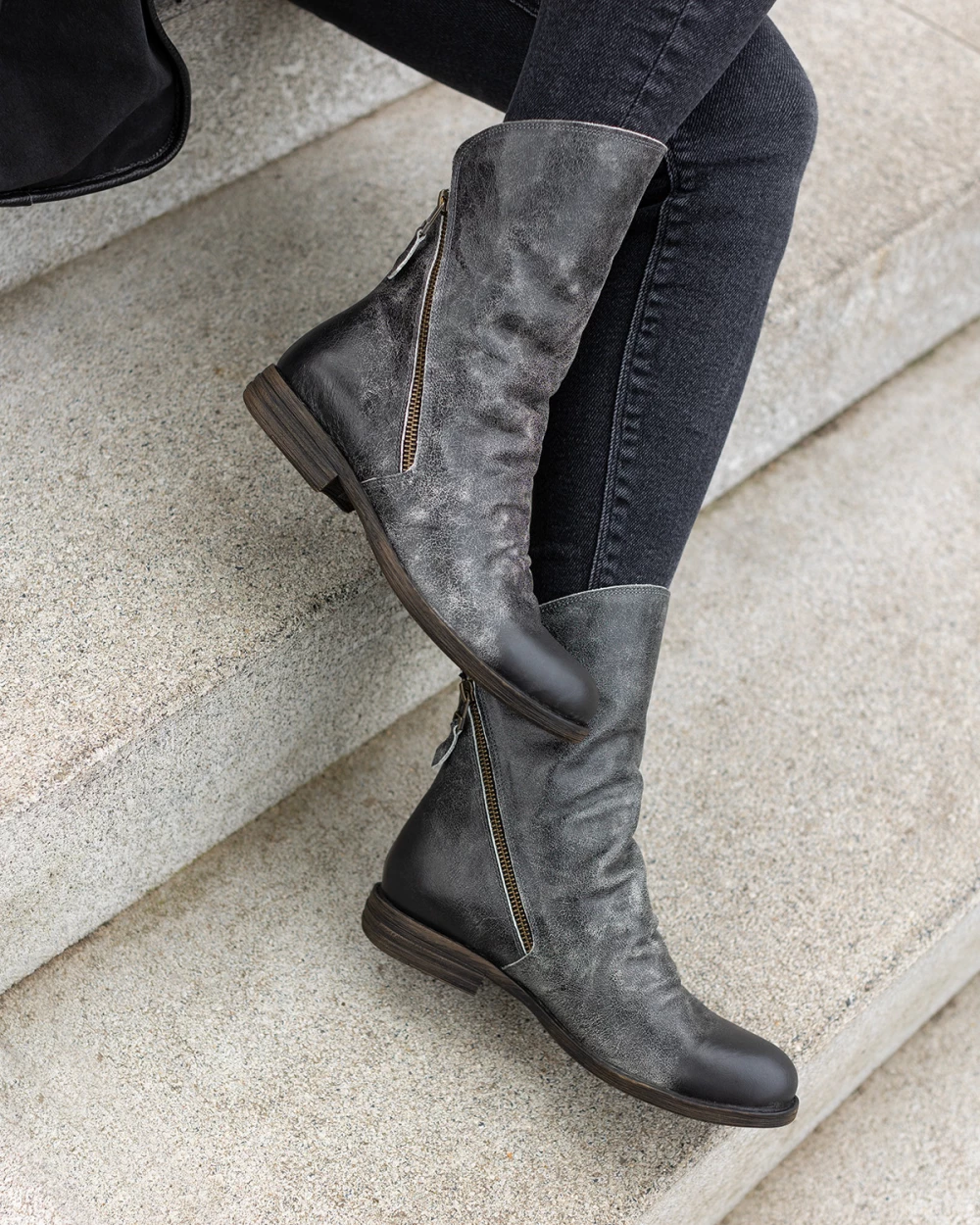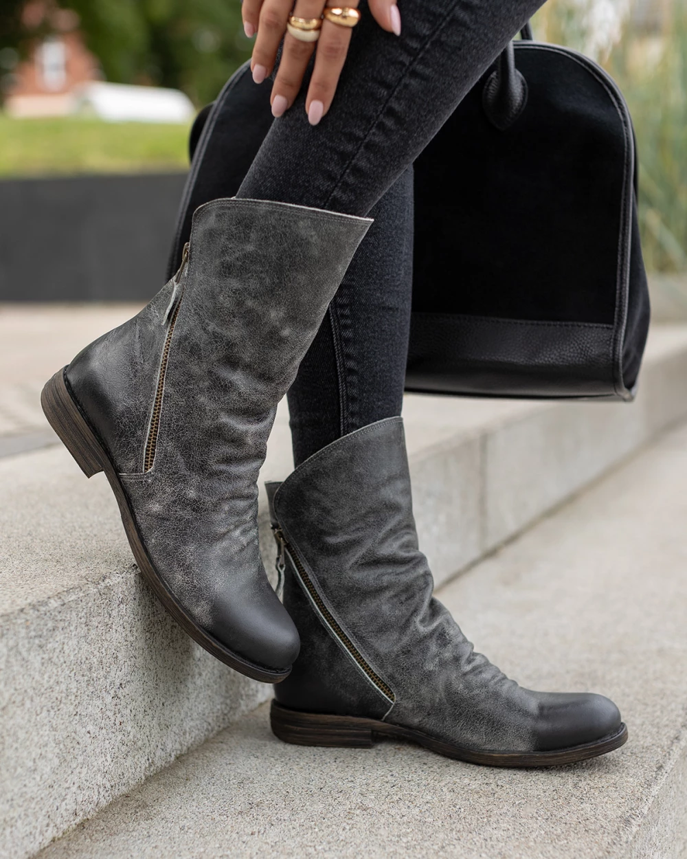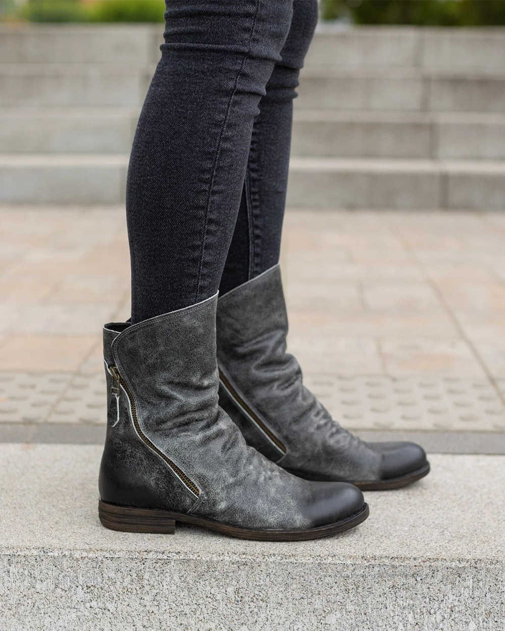 Szare botki damskie ze skóry naturalnej z zamkiem