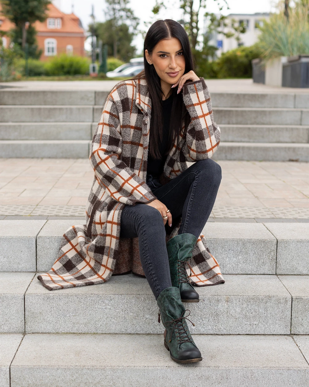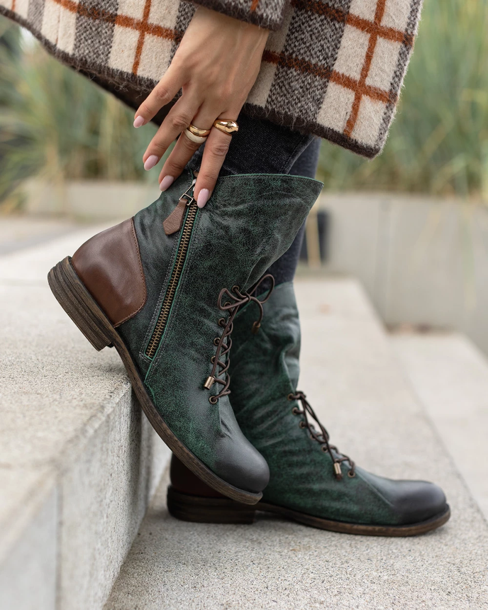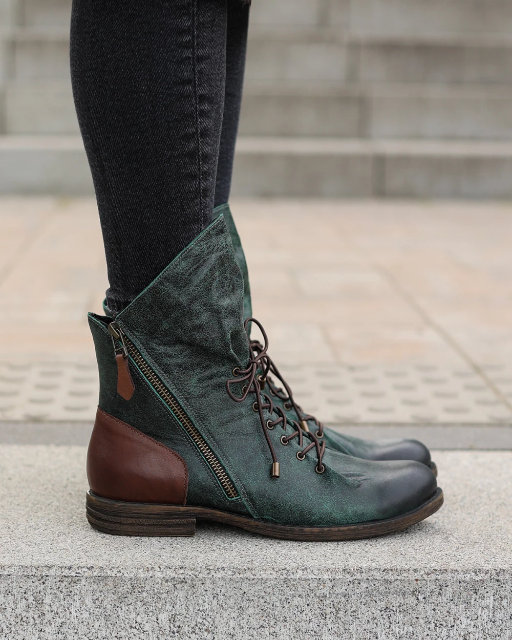 Ciemnozielone trzewiki damskie ze skóry naturalnej