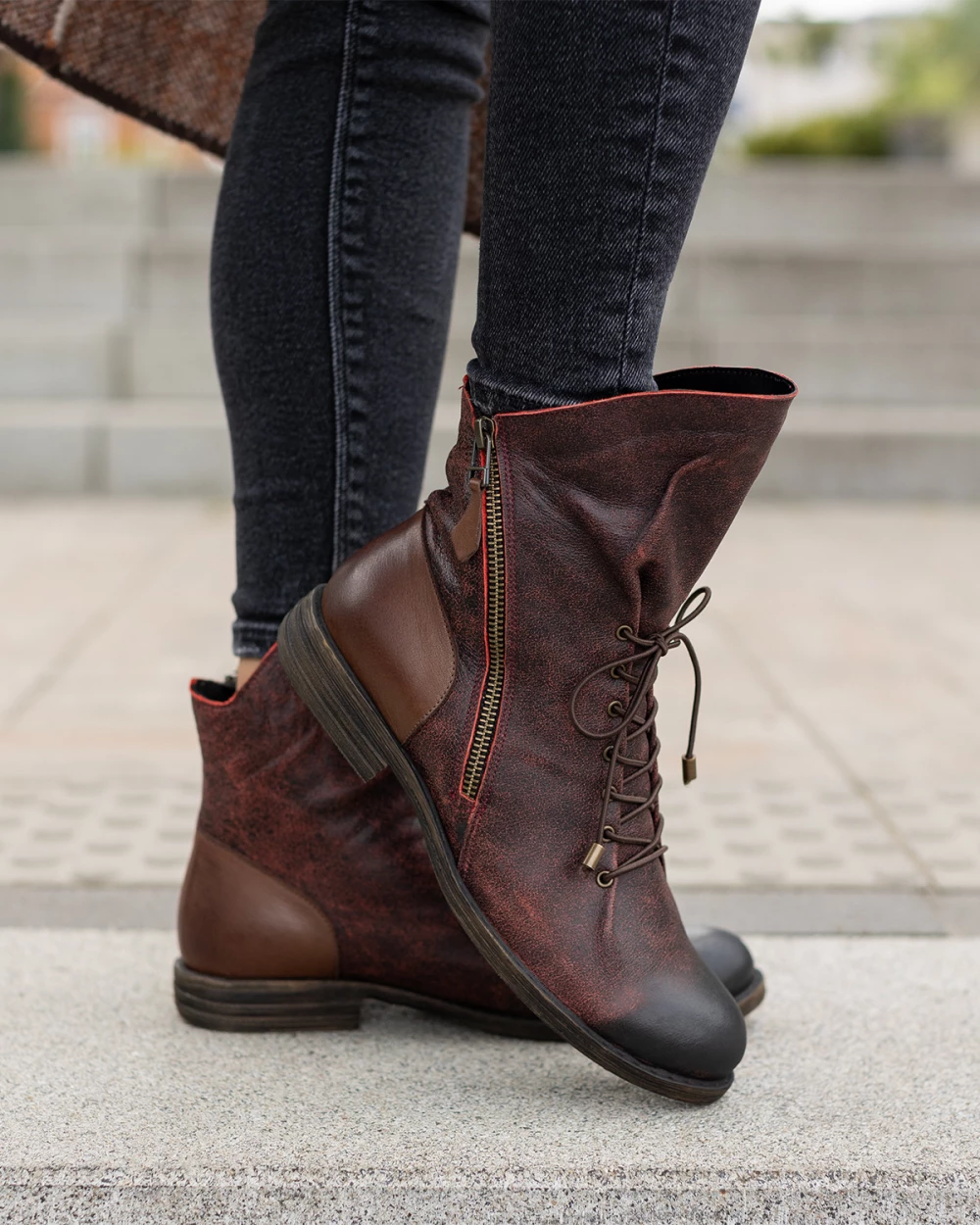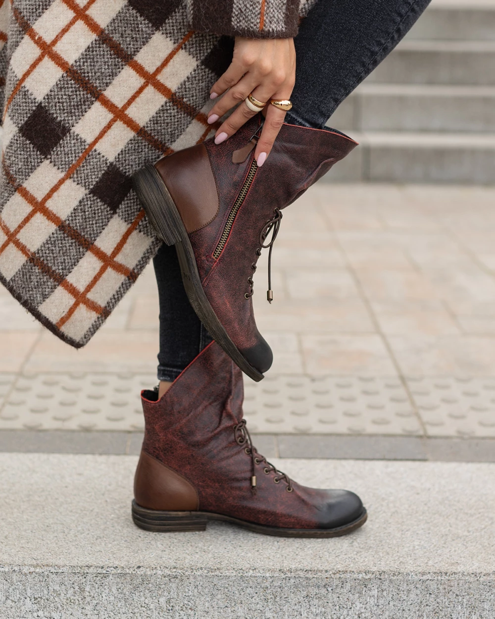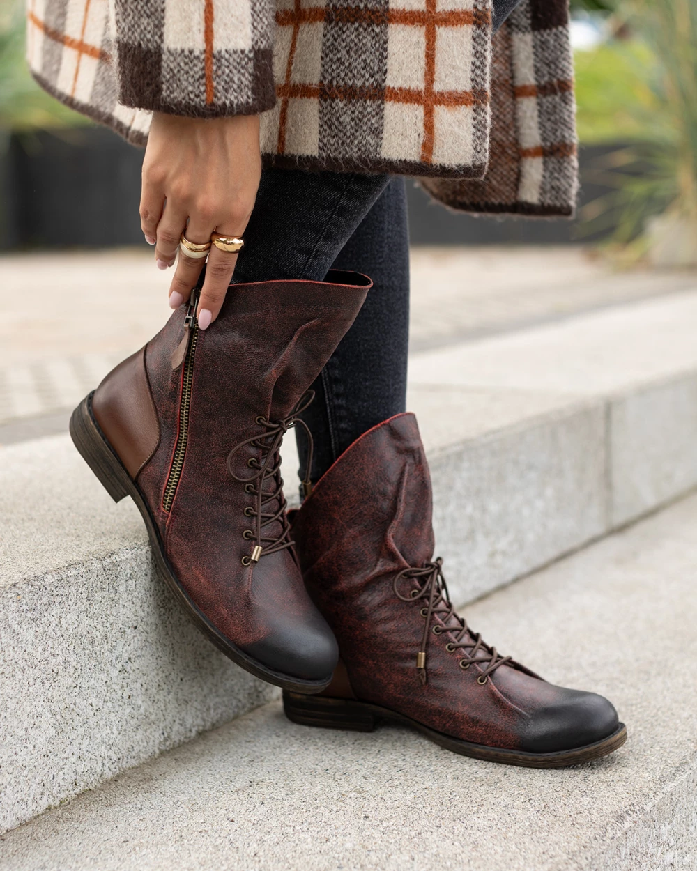 Bordowe trzewiki damskie ze skóry naturalnej z zamkiem