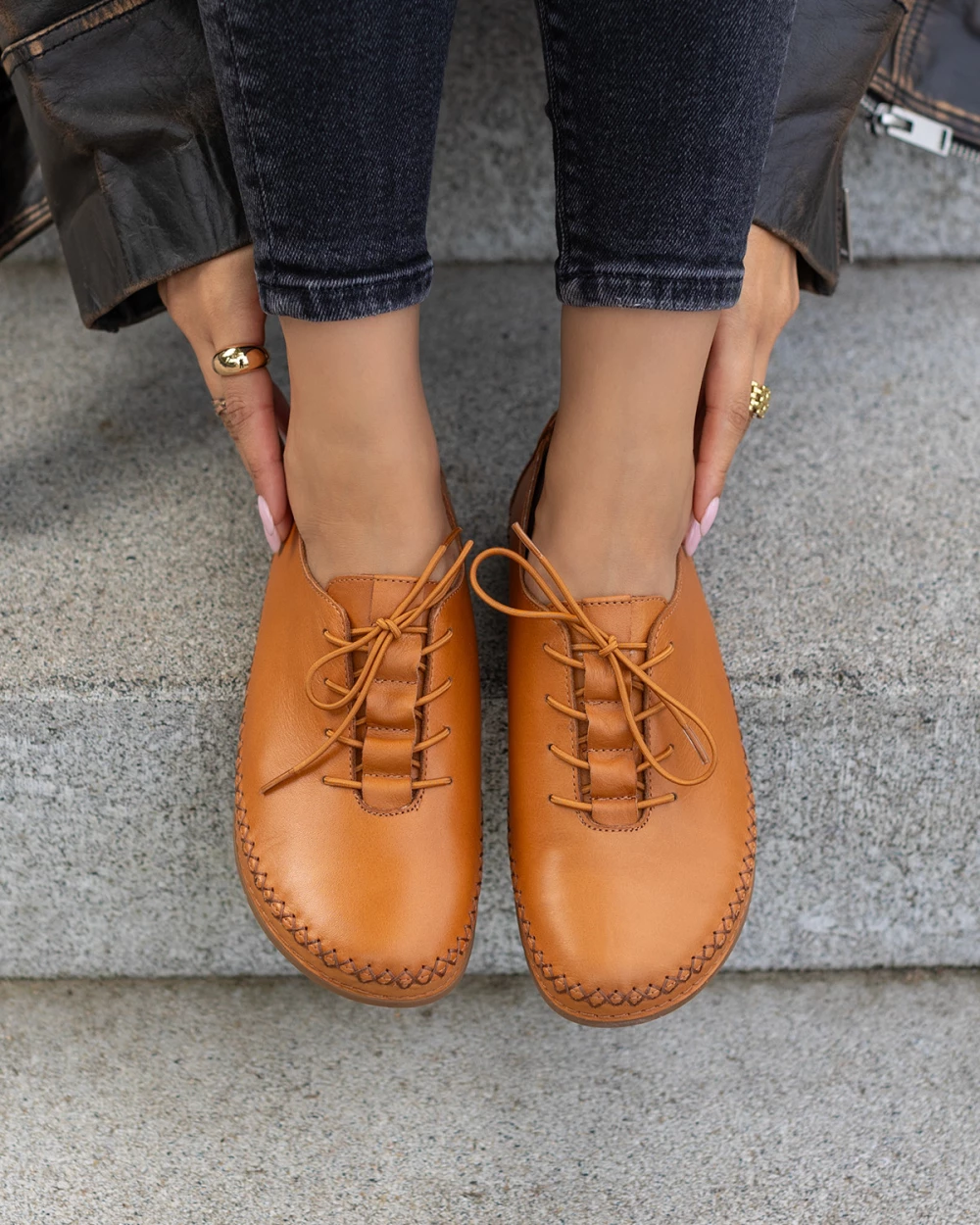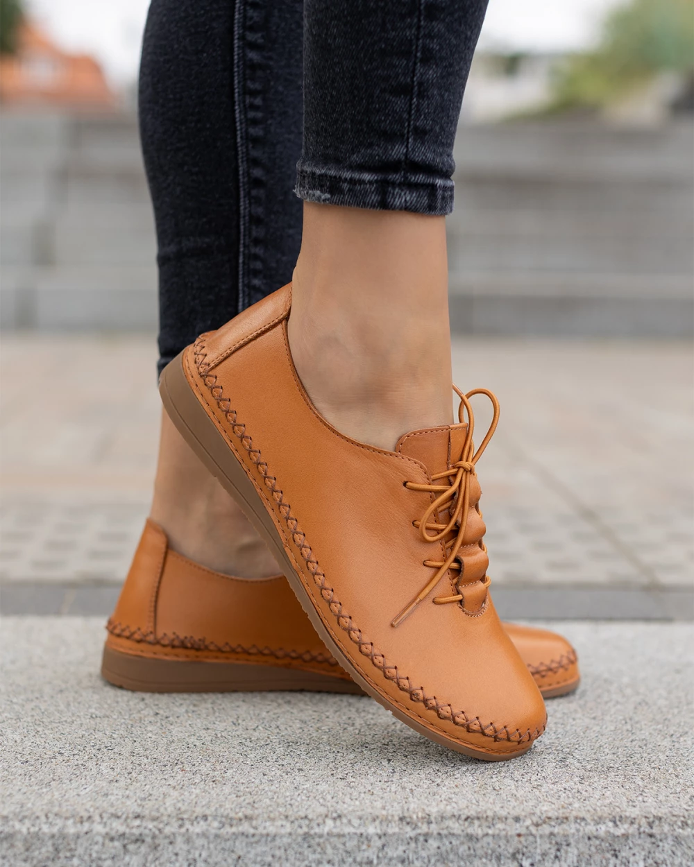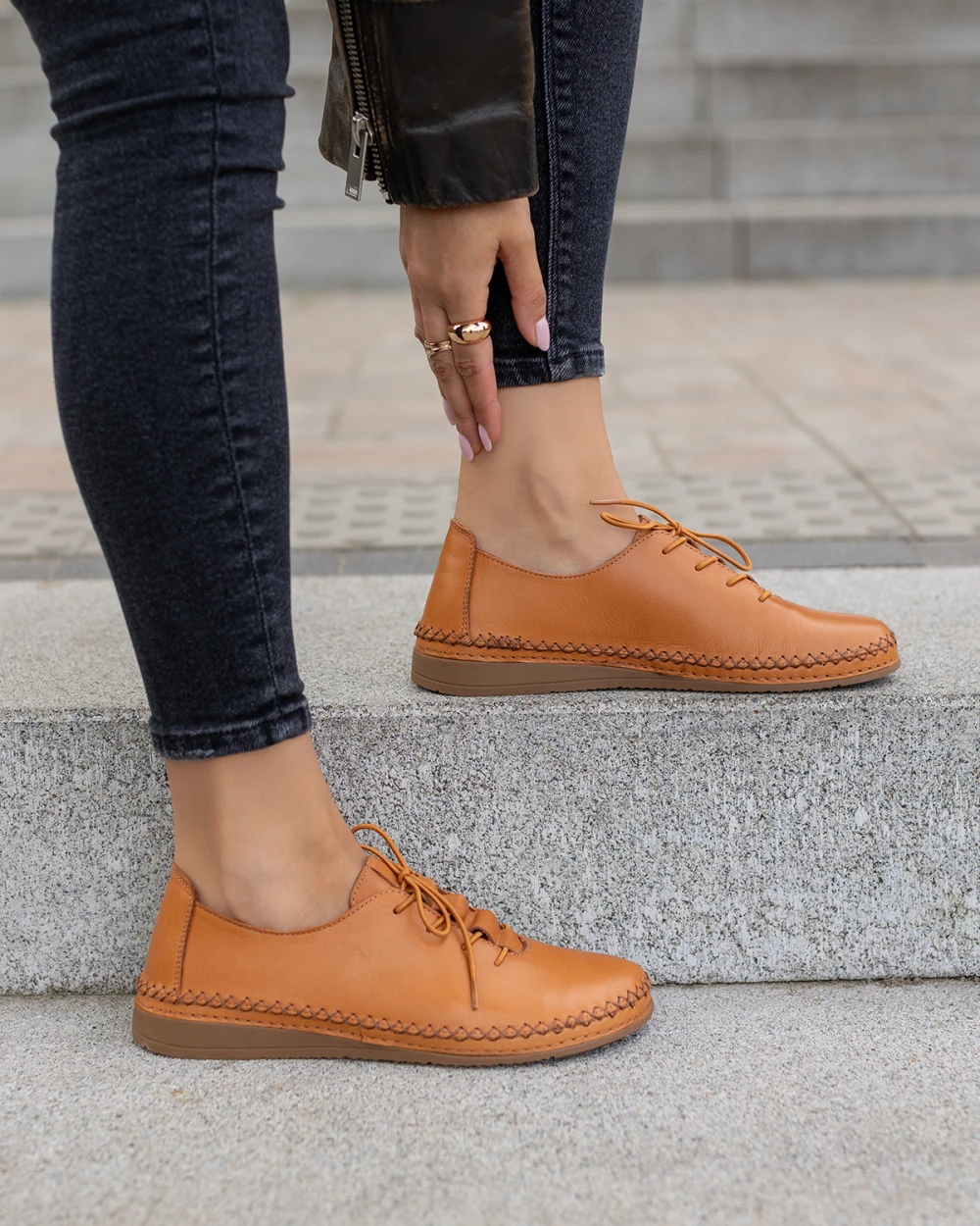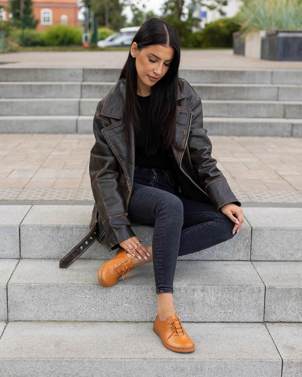 Rude półbuty damskie sznurowane z naturalnej skóry licowej