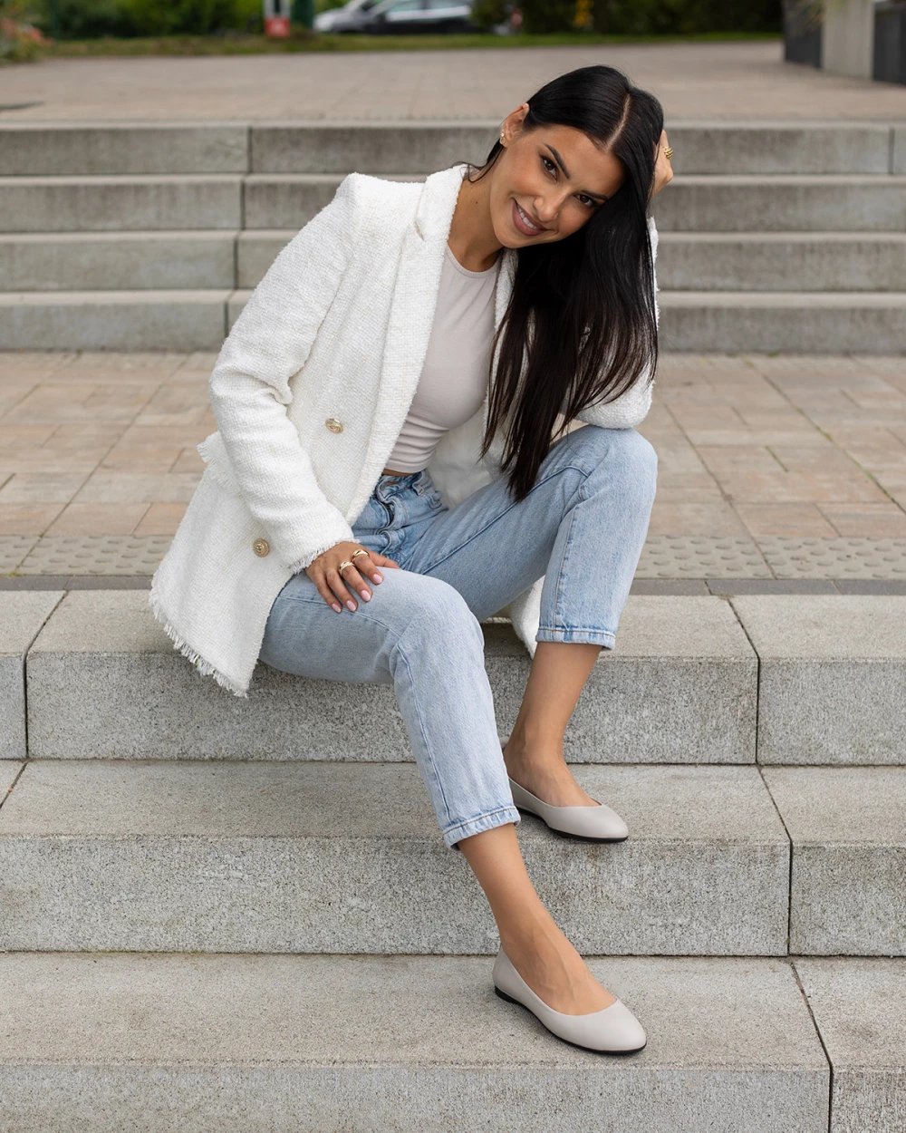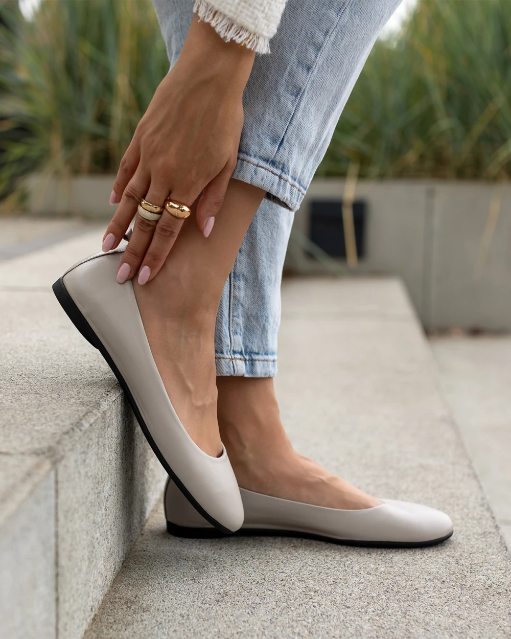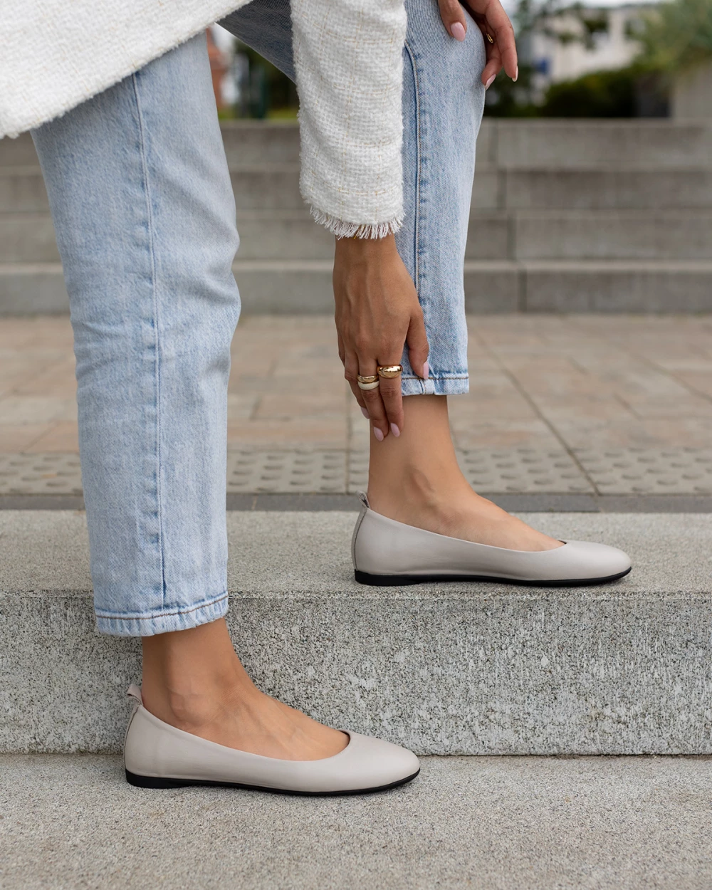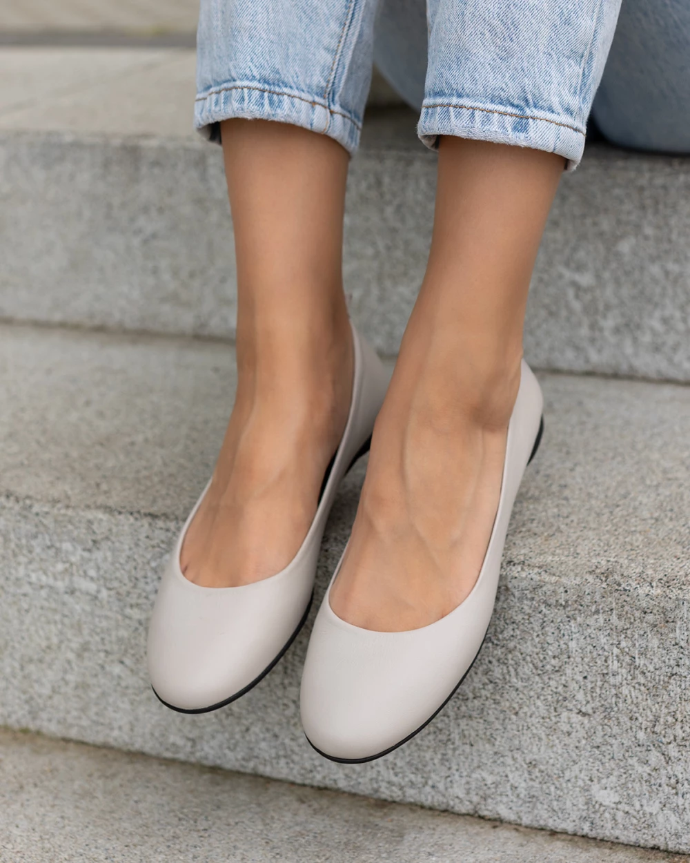 Szare baleriny damskie z naturalnej skóry licowej