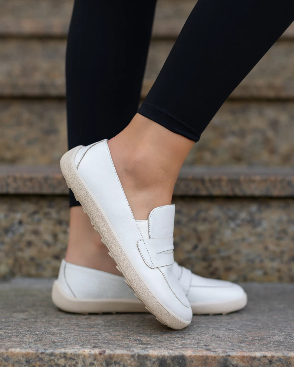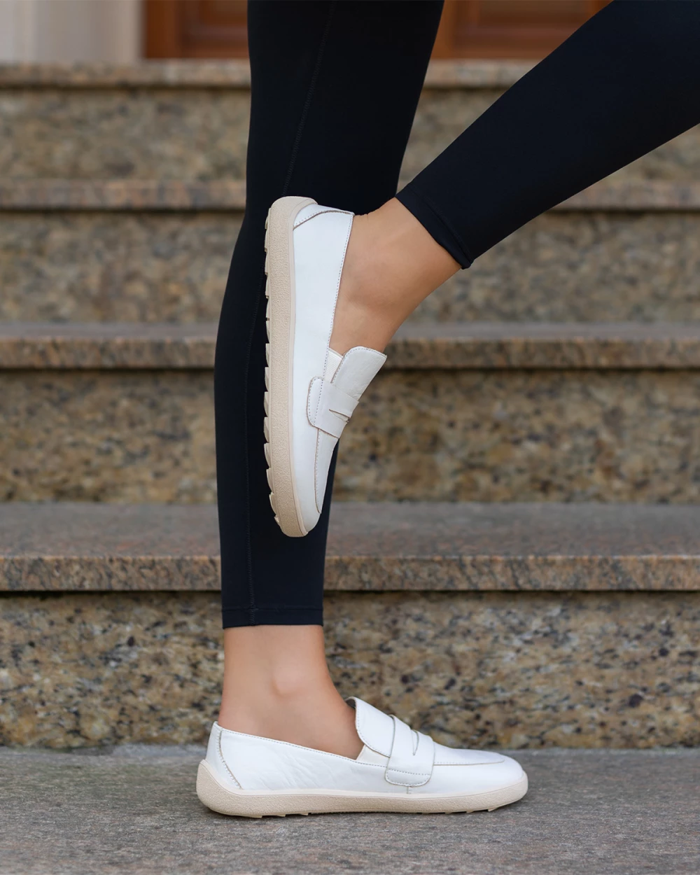 Białe mokasyny damskie z naturalnej skóry licowej barefoot