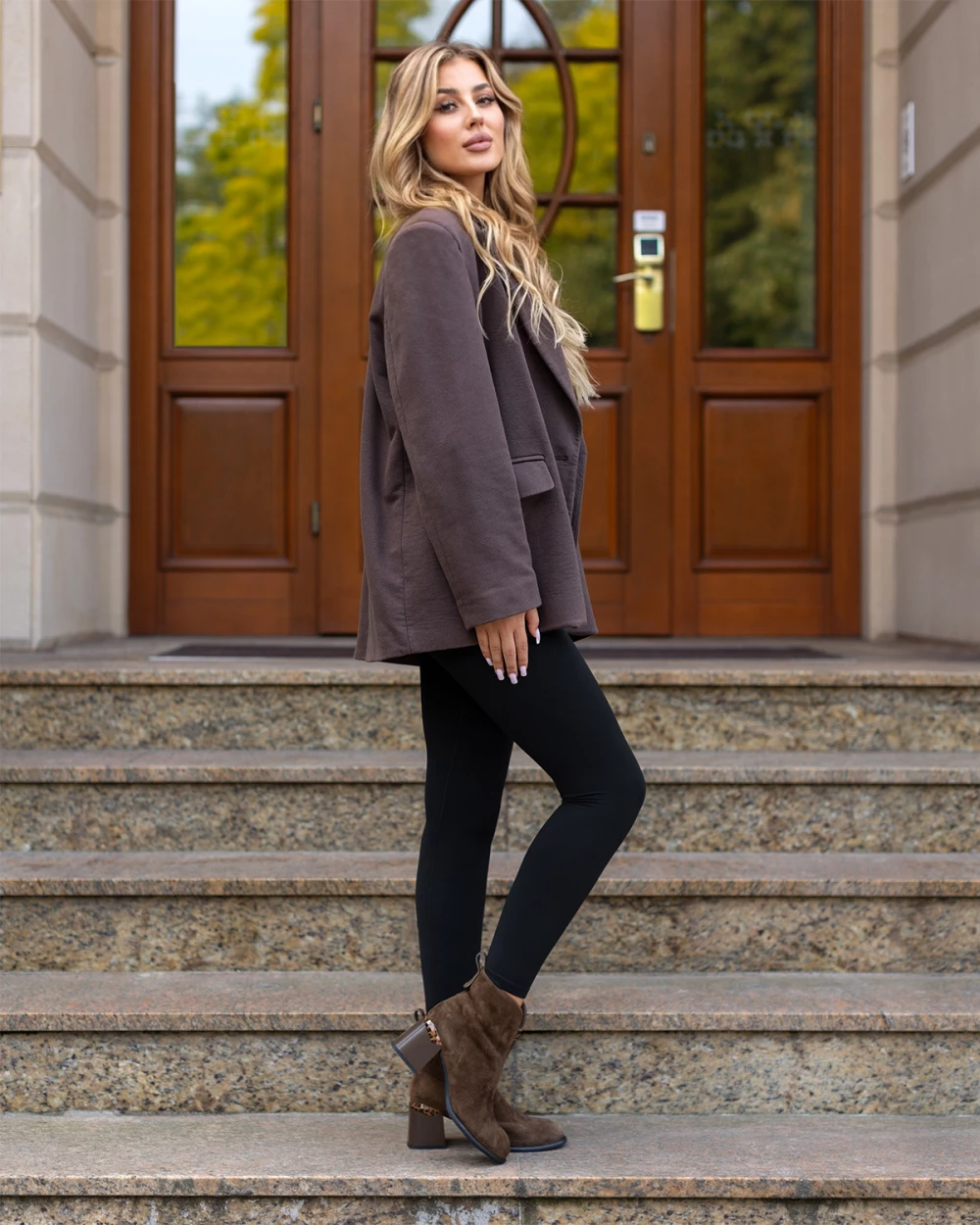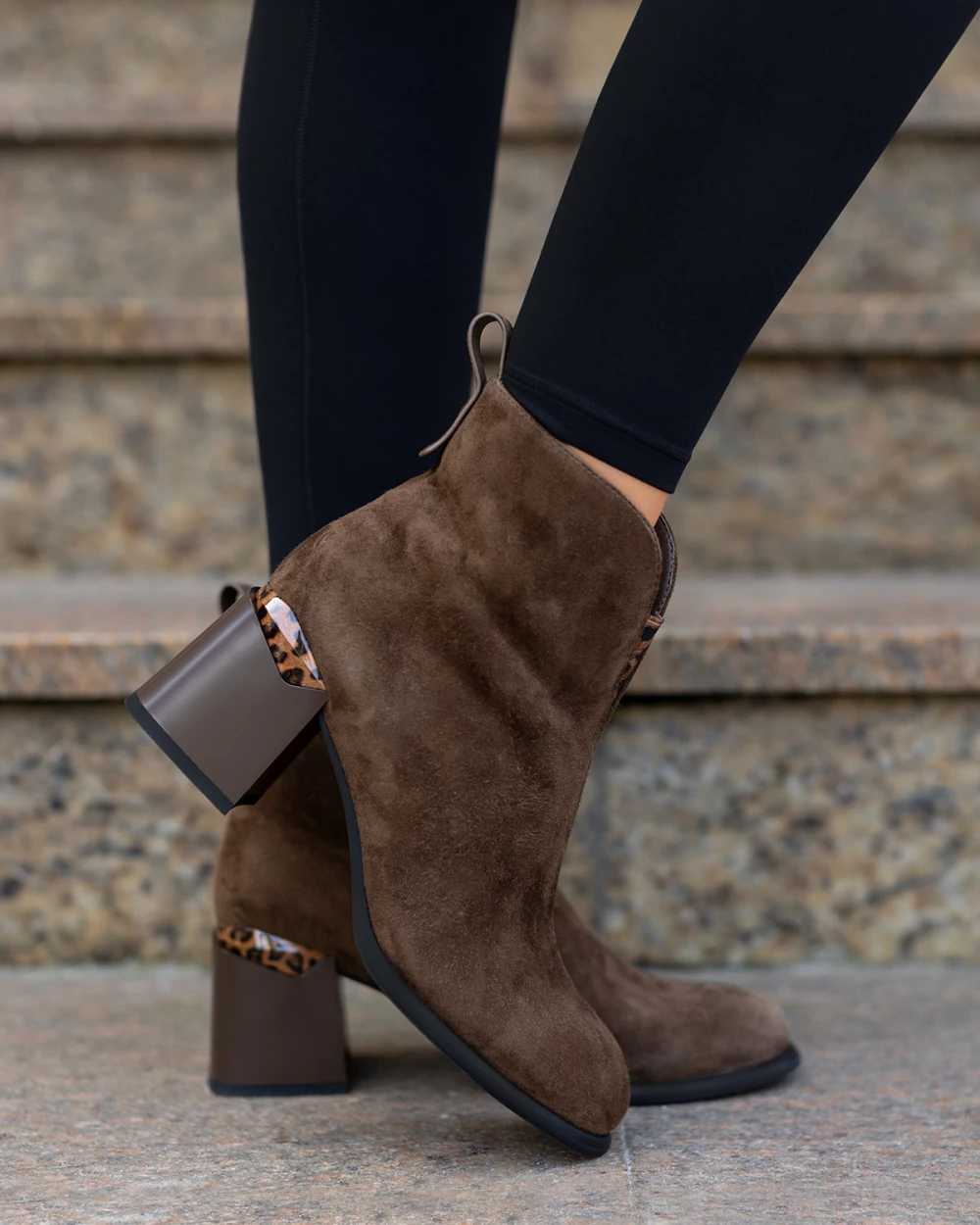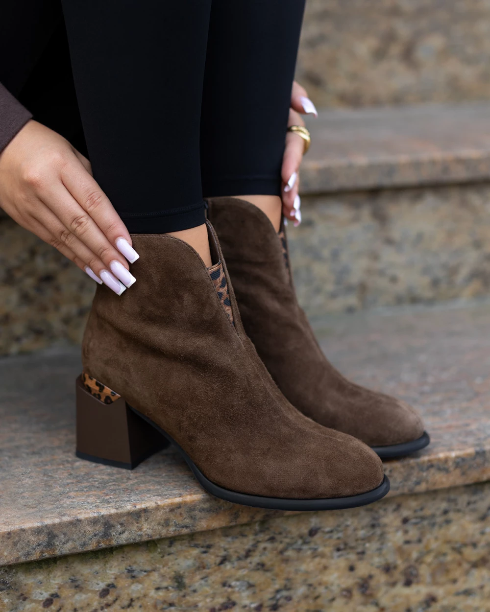 Brązowe botki damskie ze skóry zamszowej na zamek
