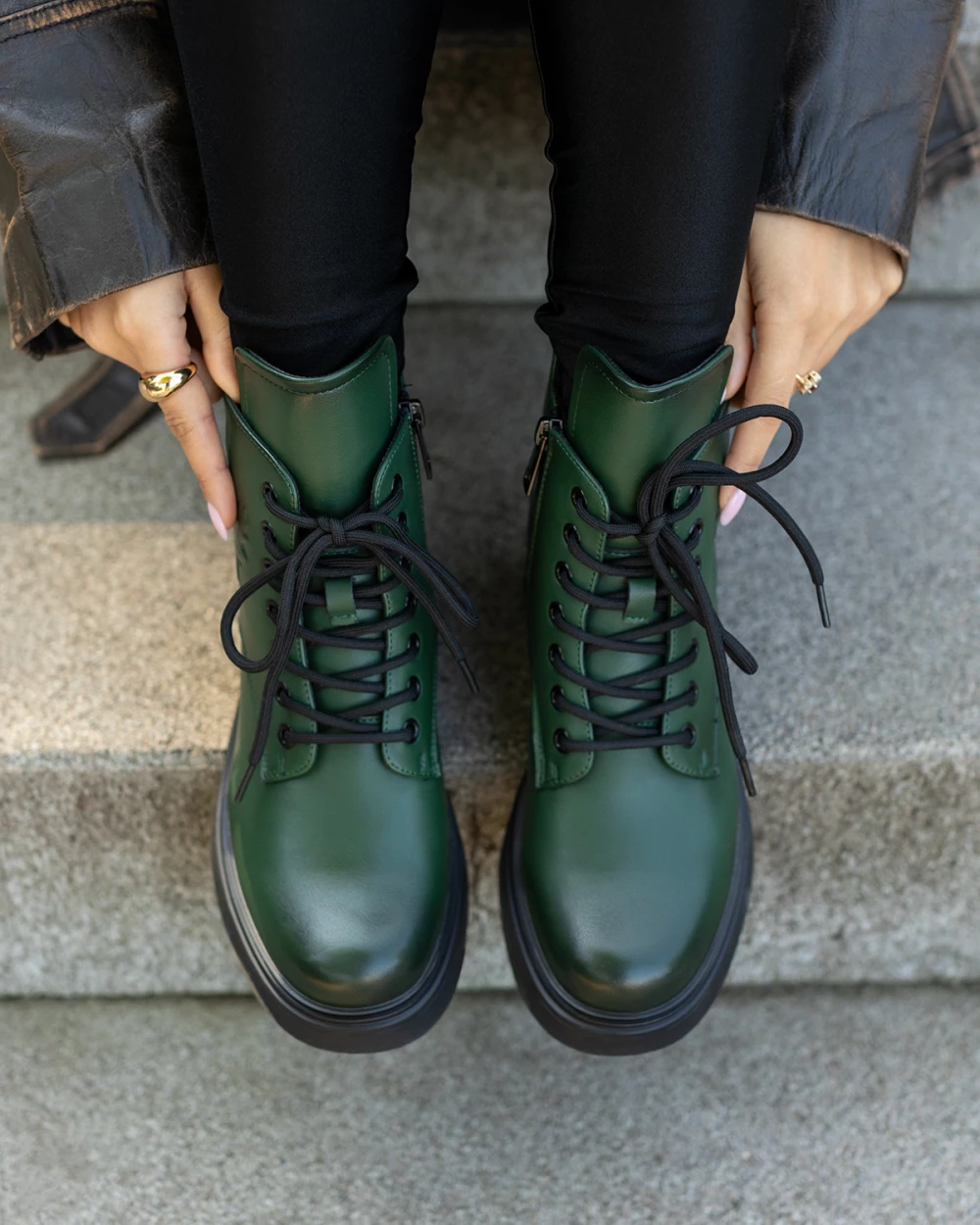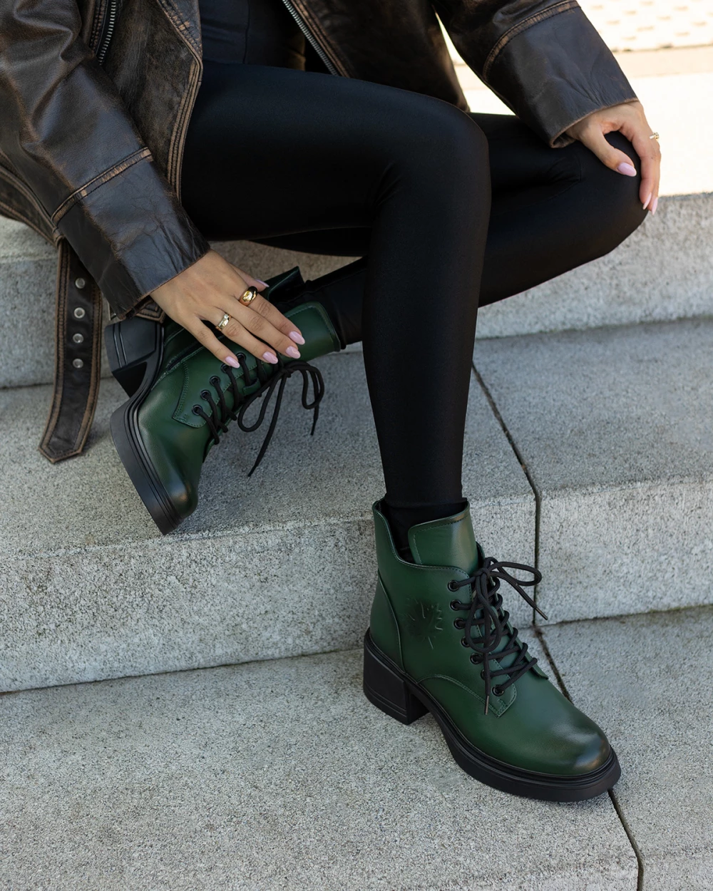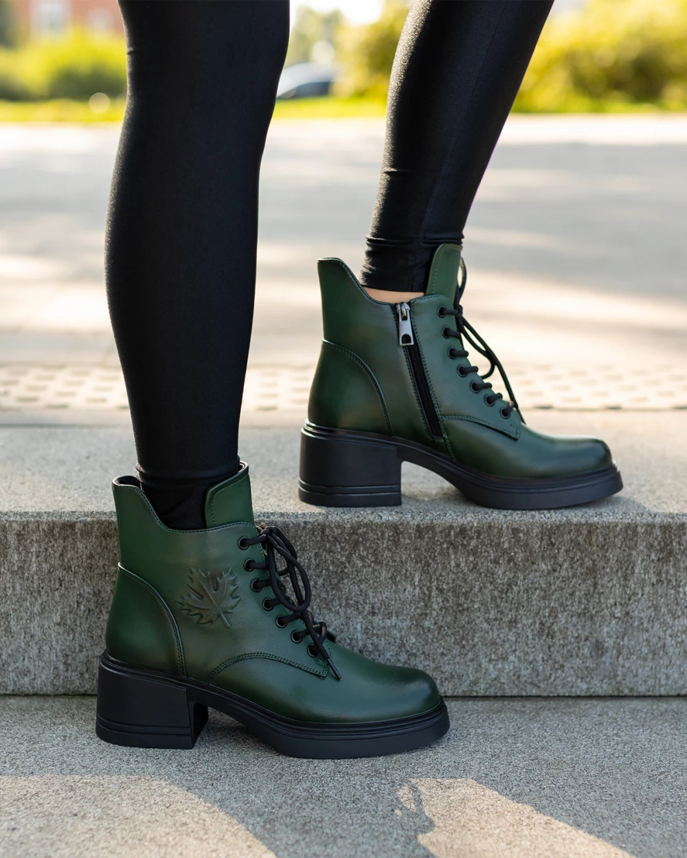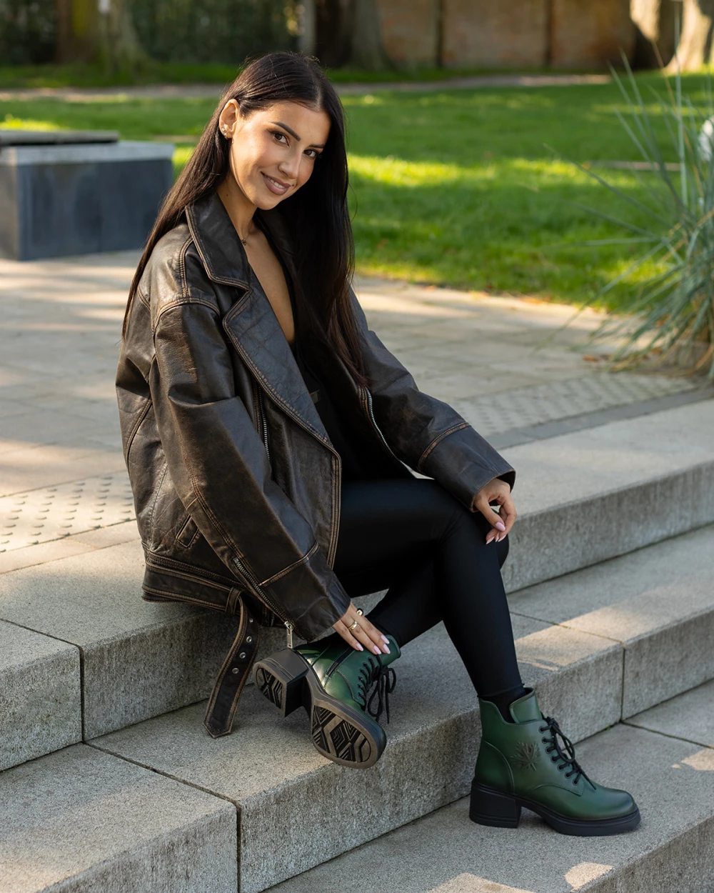 Zielone trzewiki damskie ze skóry licowej na klocku
