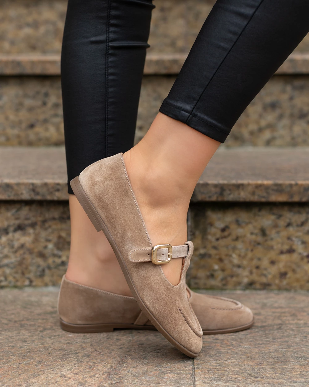 Beżowe półbuty damskie zamszowe z wycięciami