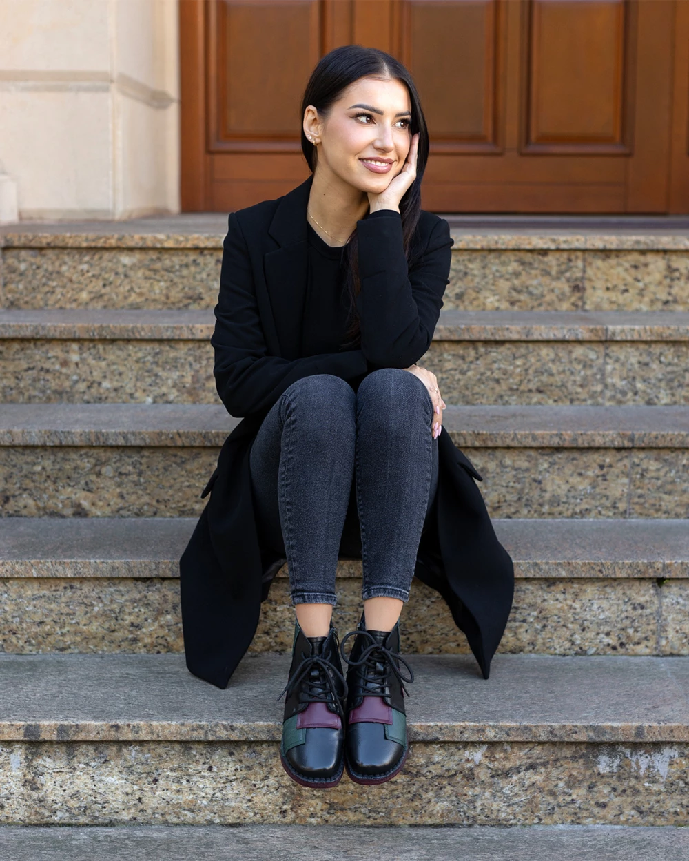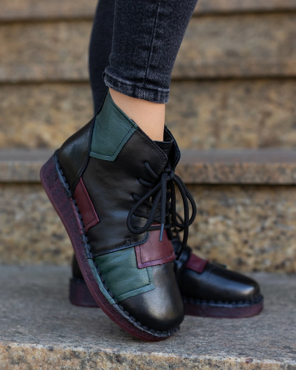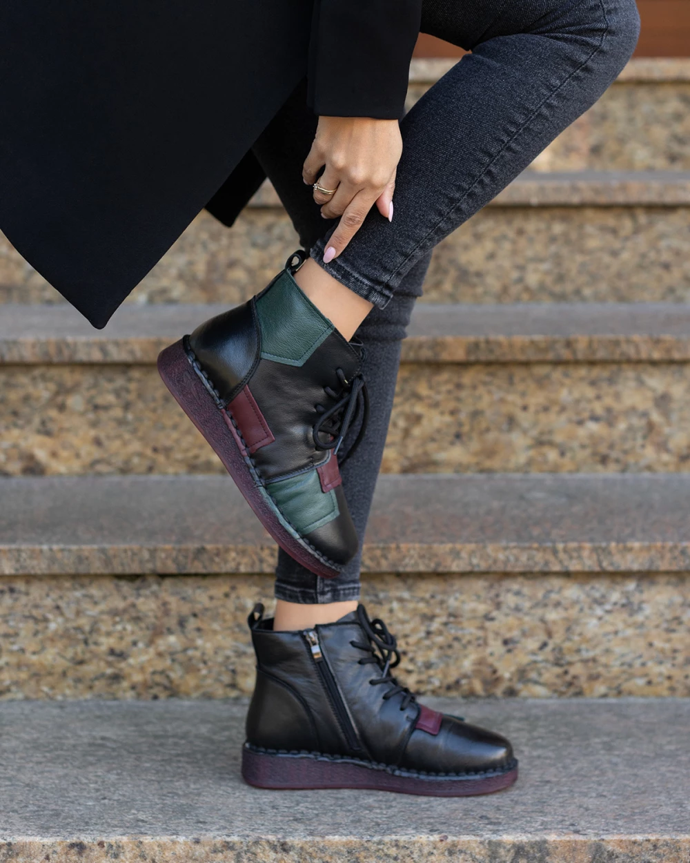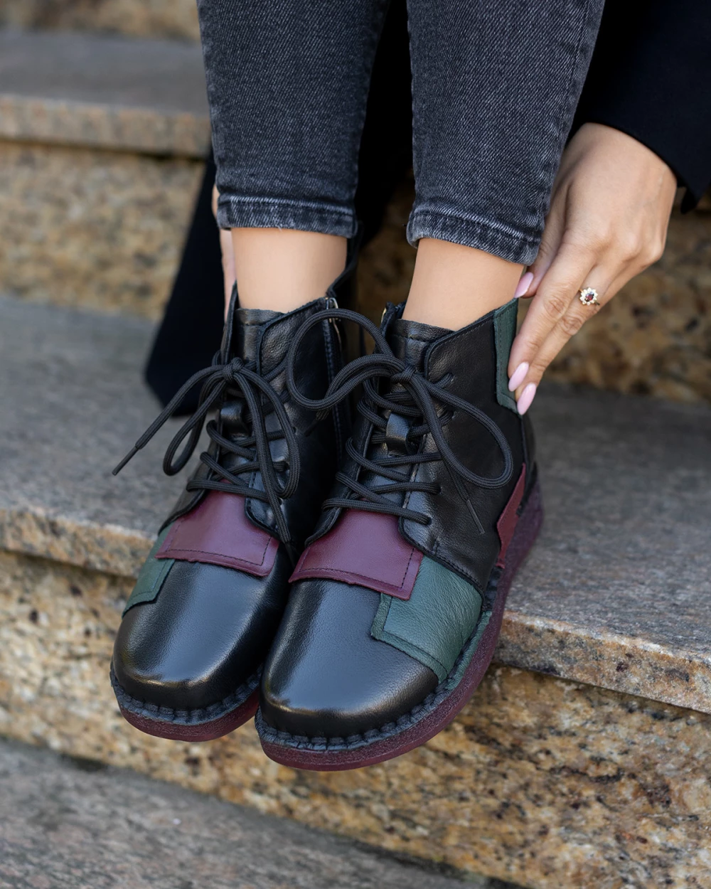 Czarne botki damskie sznurowane ze skóry naturalnej