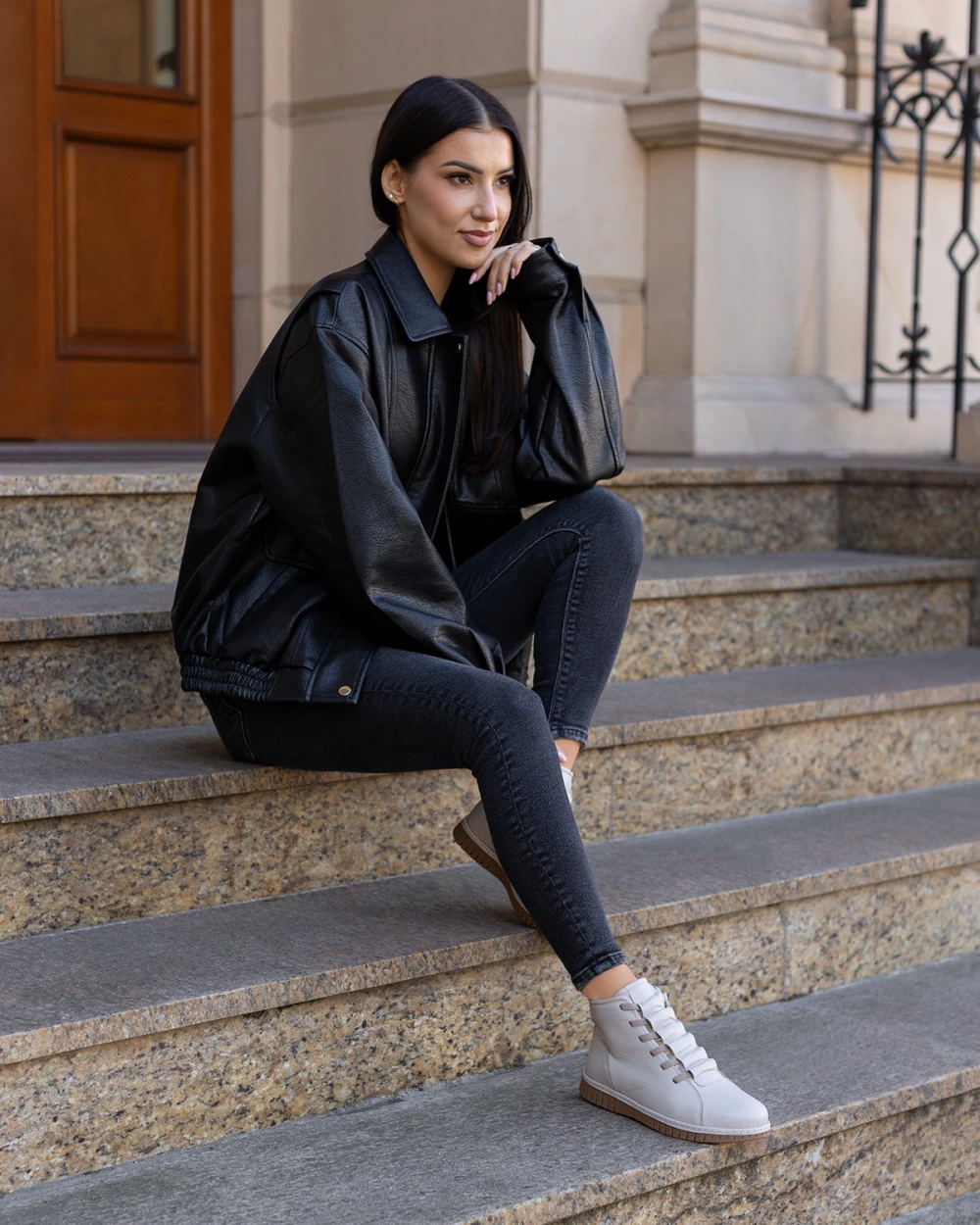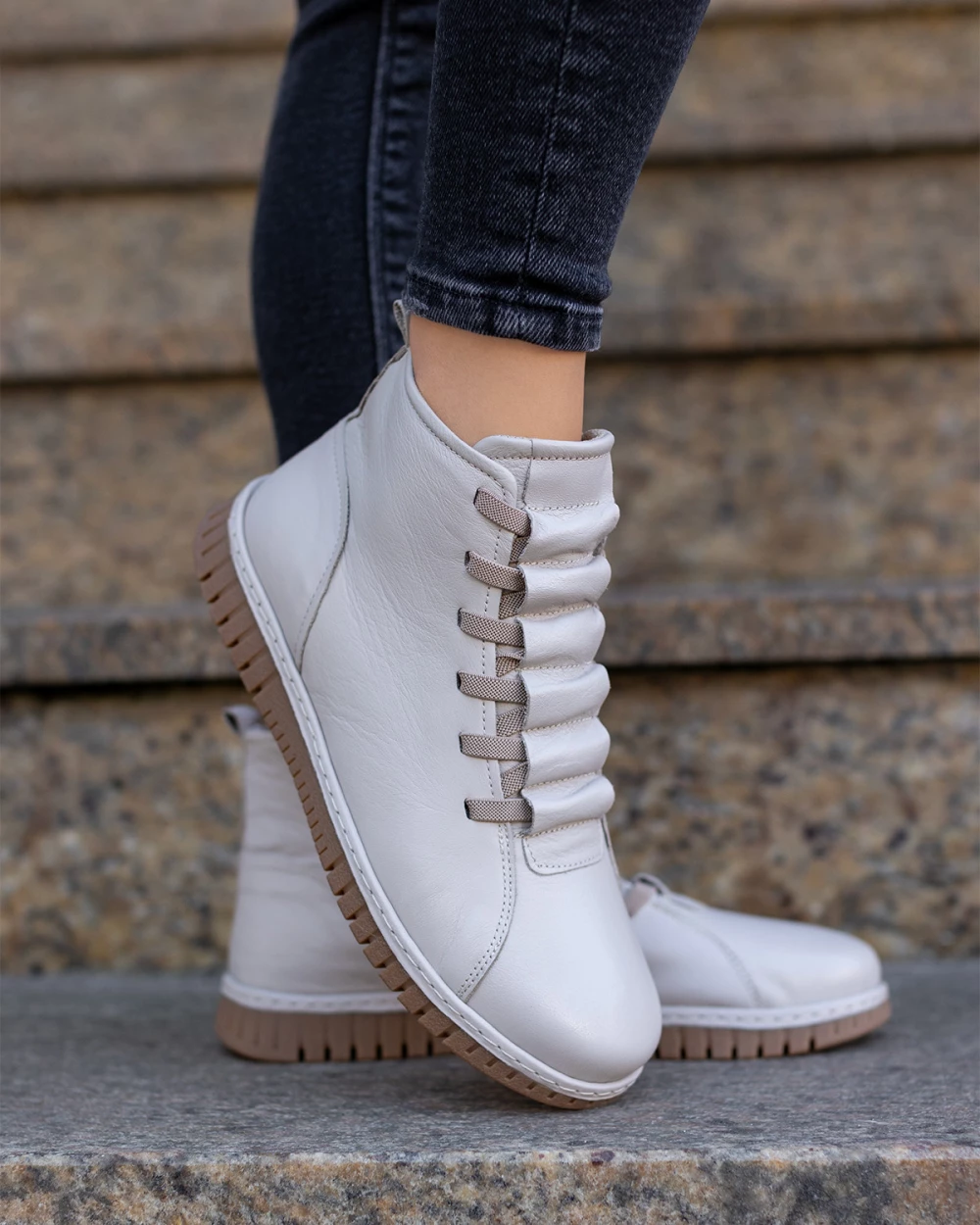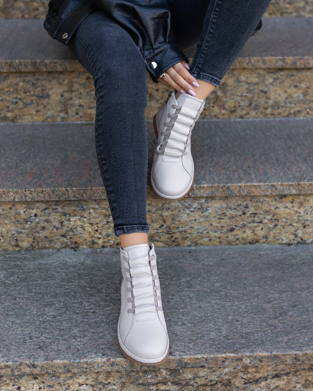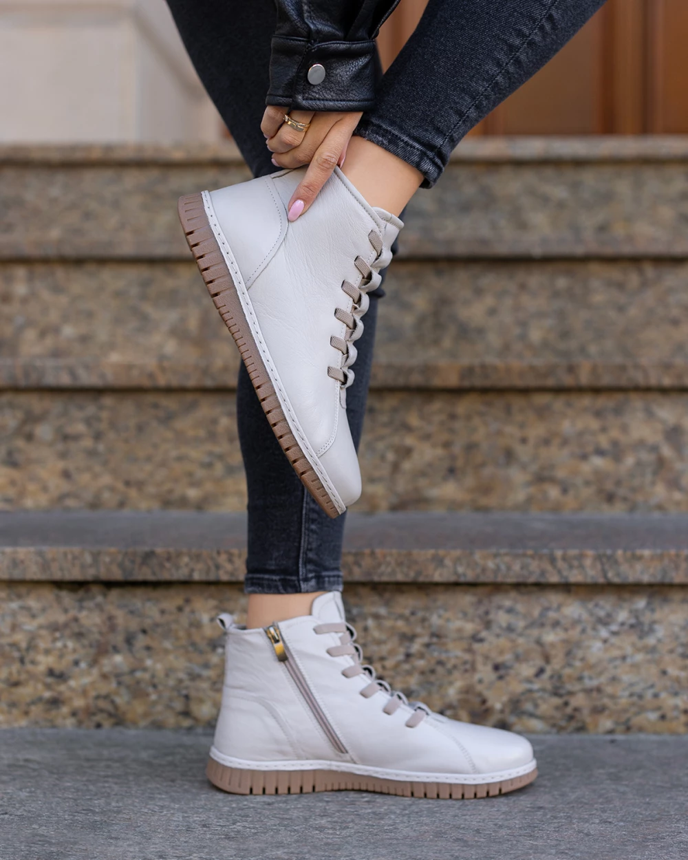Jasnobeżowe trzewiki damskie sznurowe ze skóry naturalnej