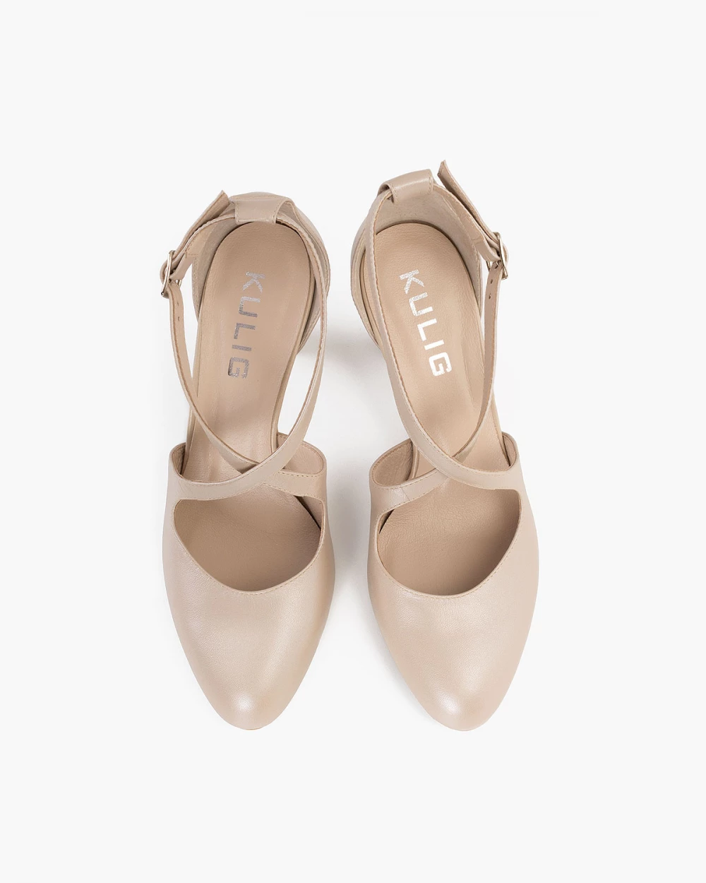 Beżowe czółenka skórzane na słupku