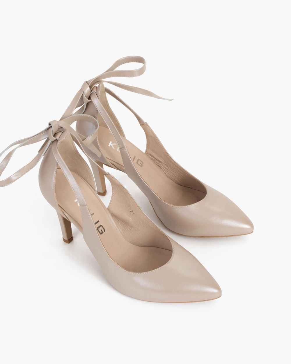 Perłowe czółenka damskie wiązane