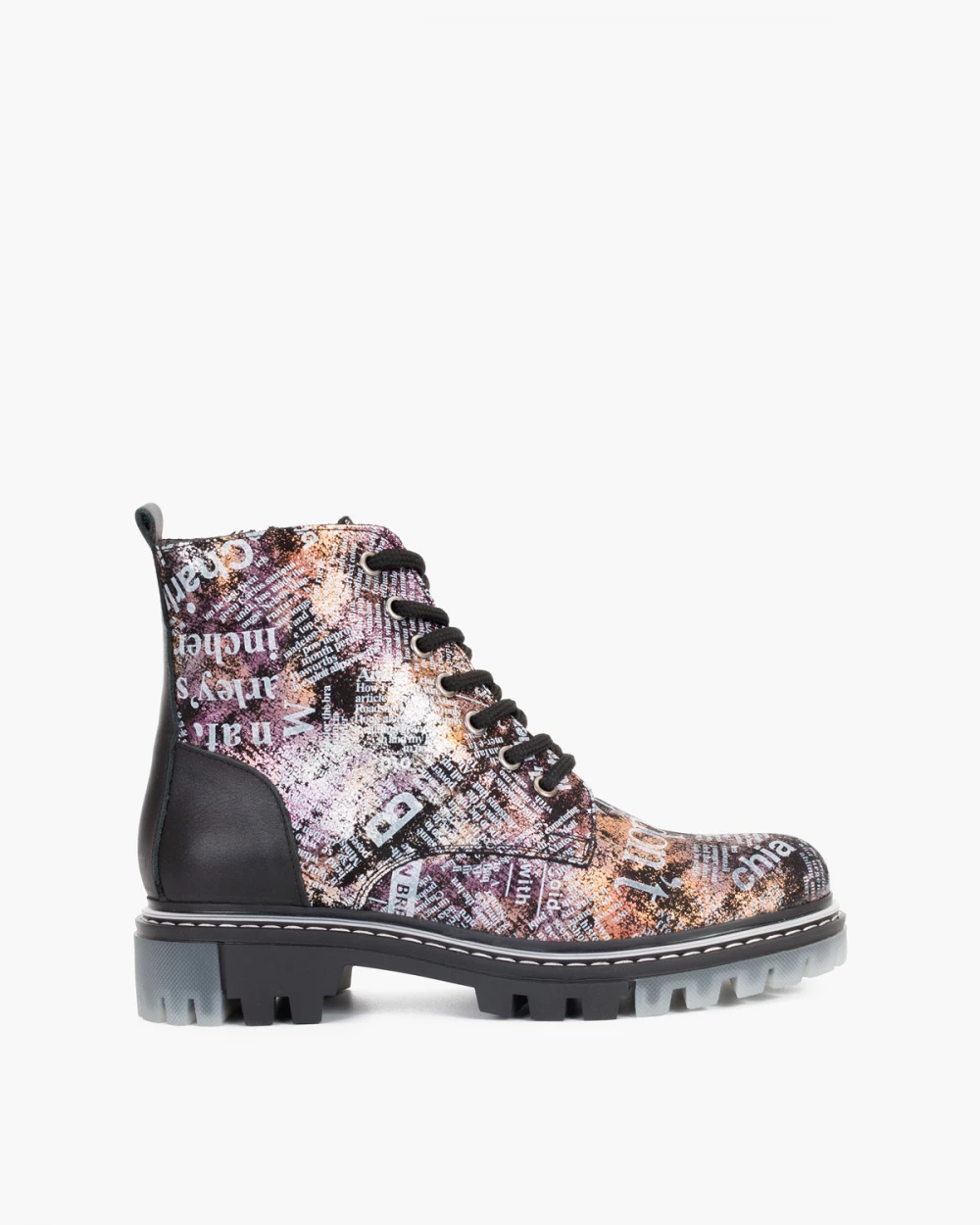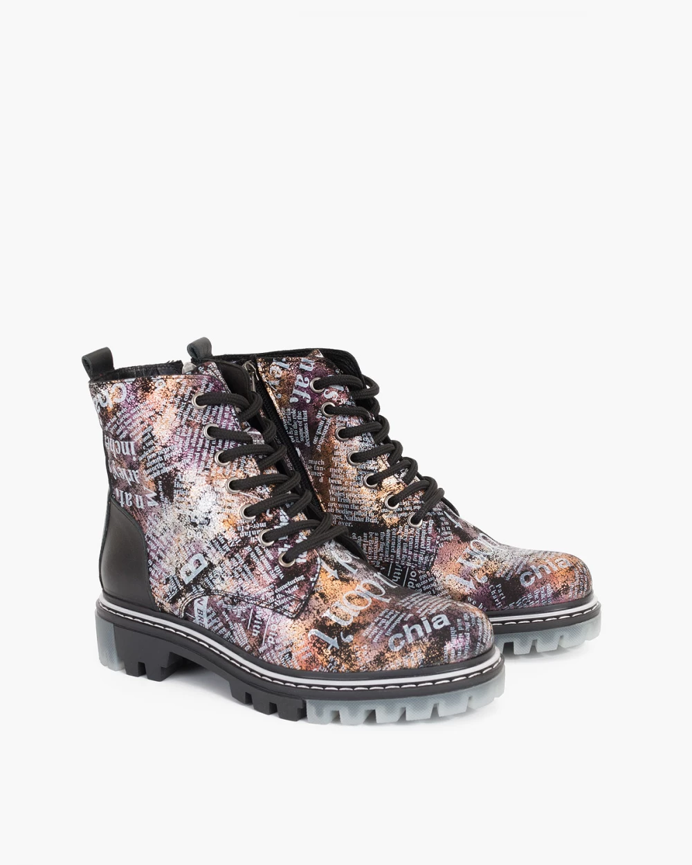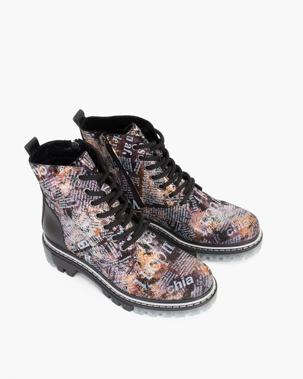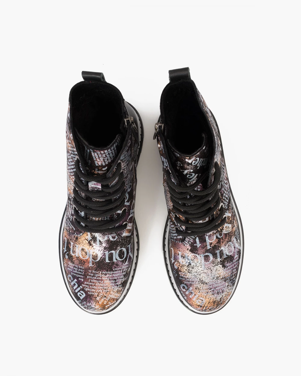 Wielokolorowe trzewiki damskie nubukowe z napisami