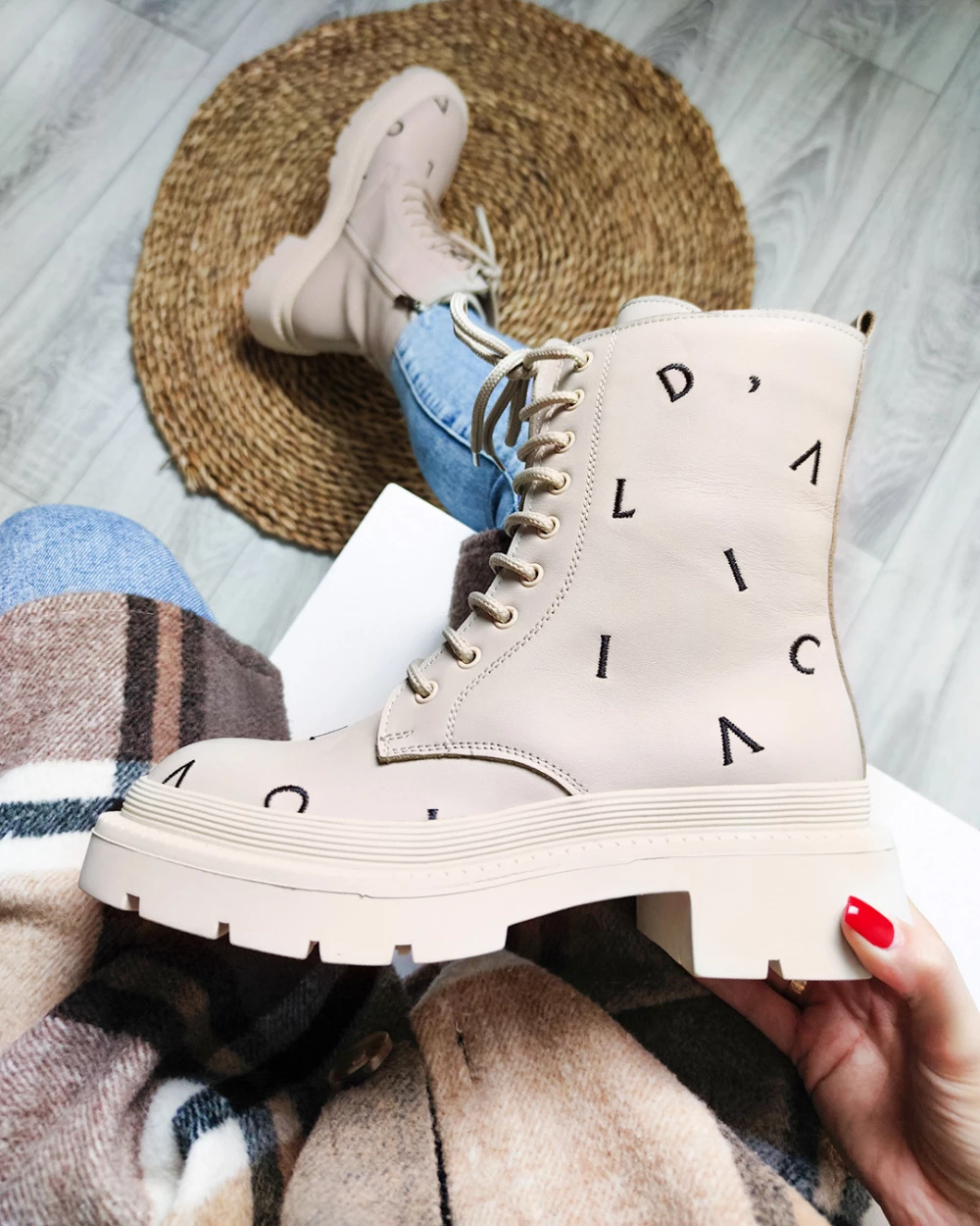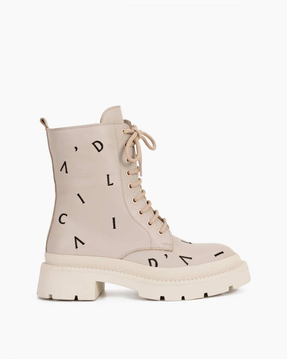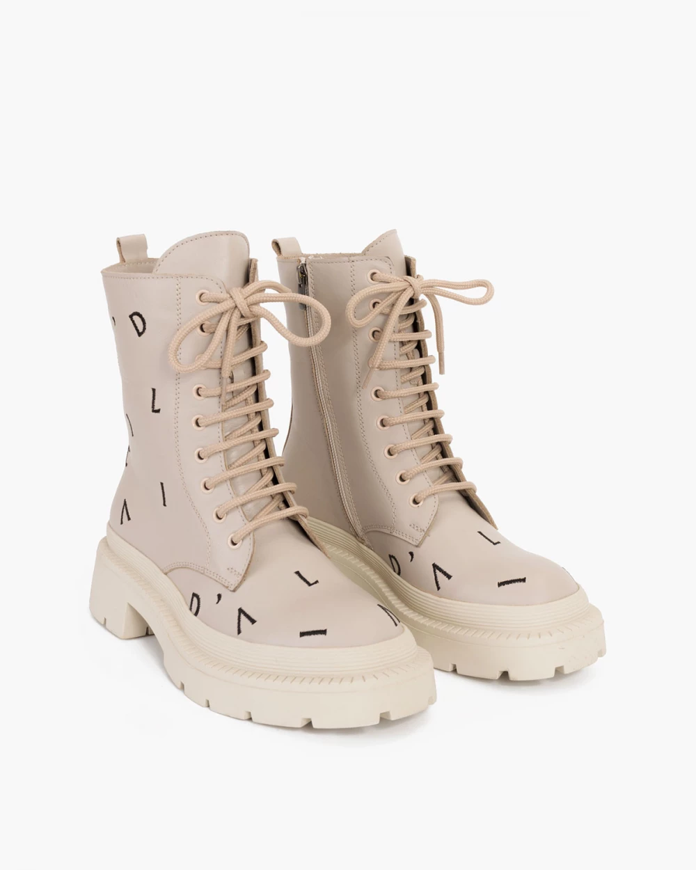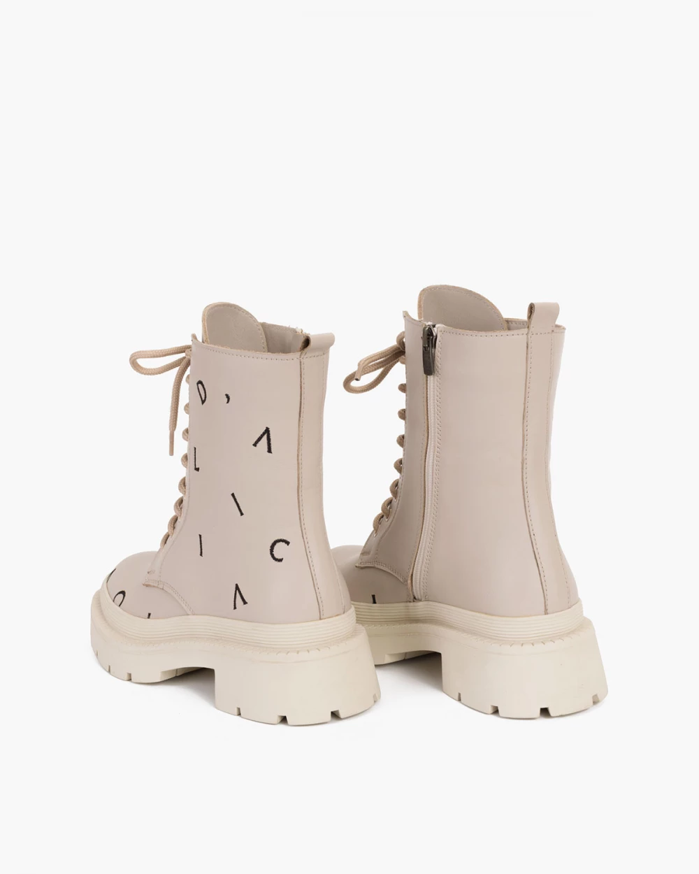Beżowe trzewiki damskie skórzane z literkami