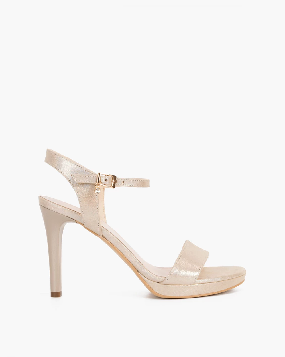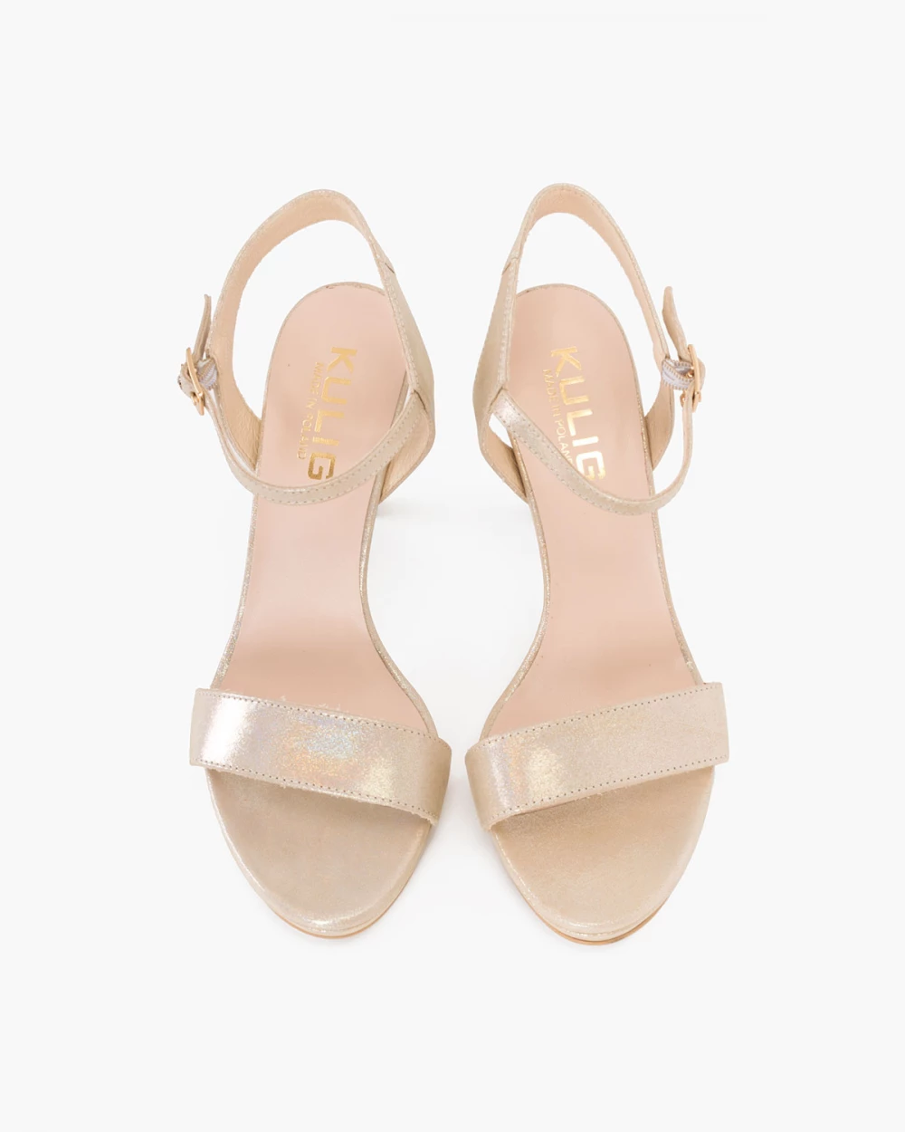 Złote sandały damskie nubukowe na szpilce