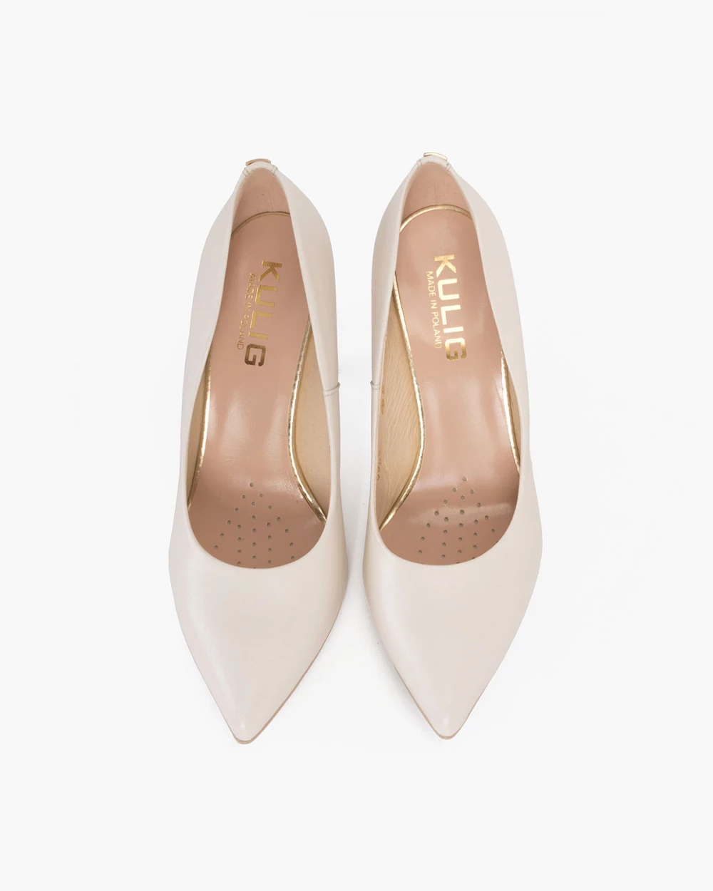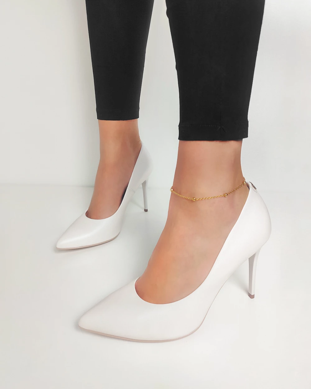 Perłowe czółenka skórzane na szpilce