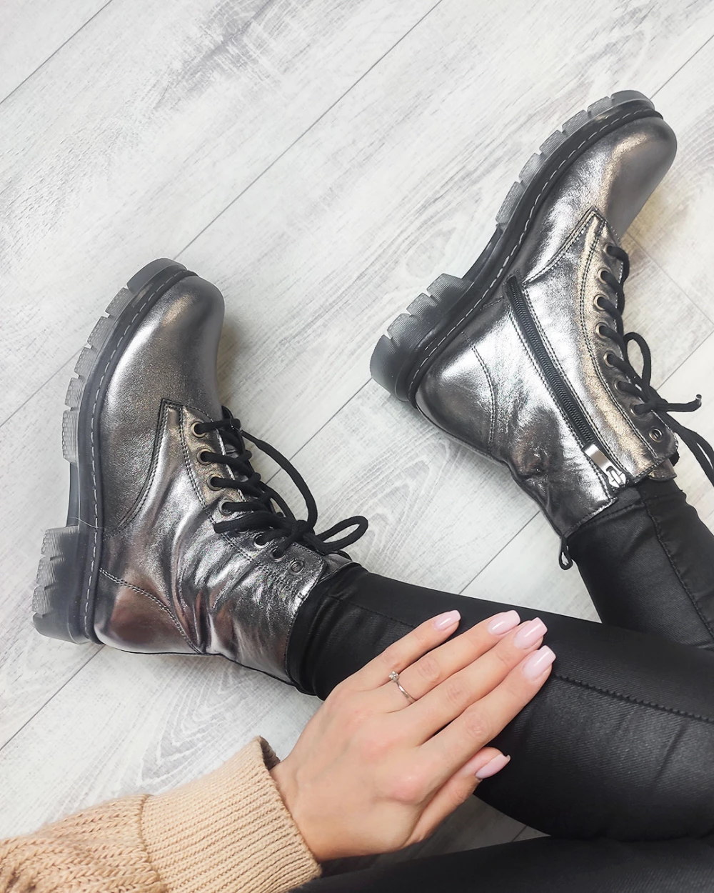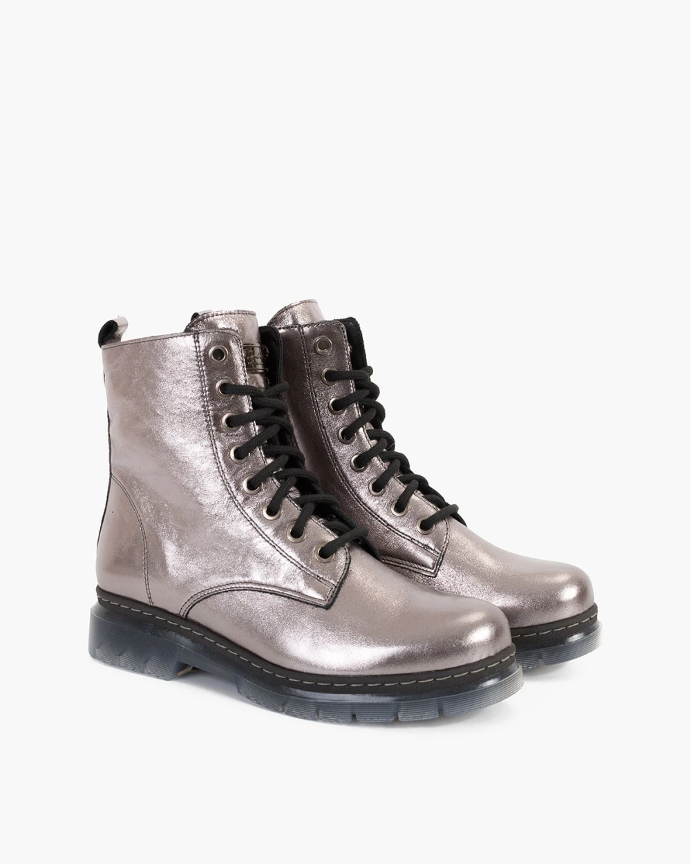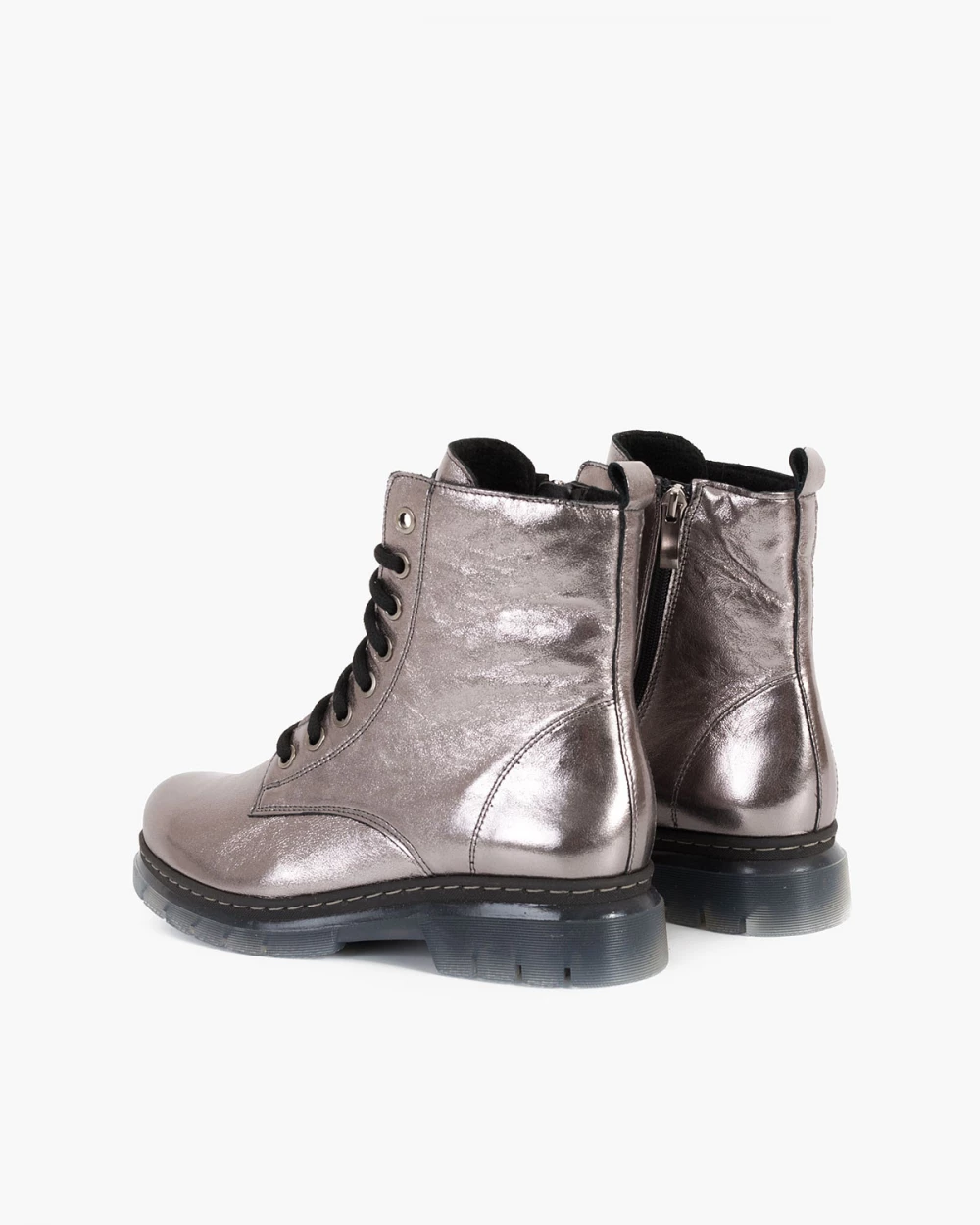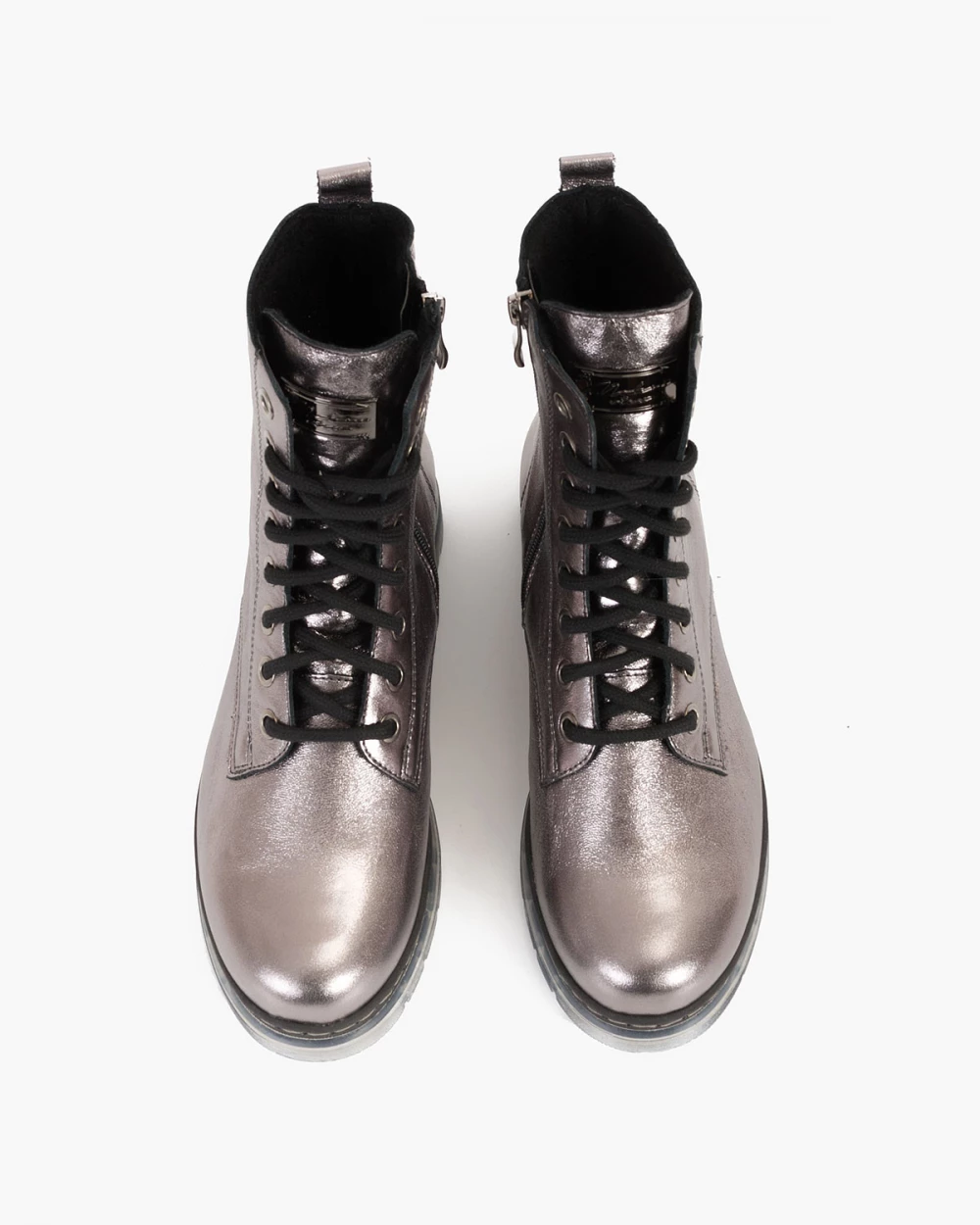 Srebrne trzewiki damskie skórzane