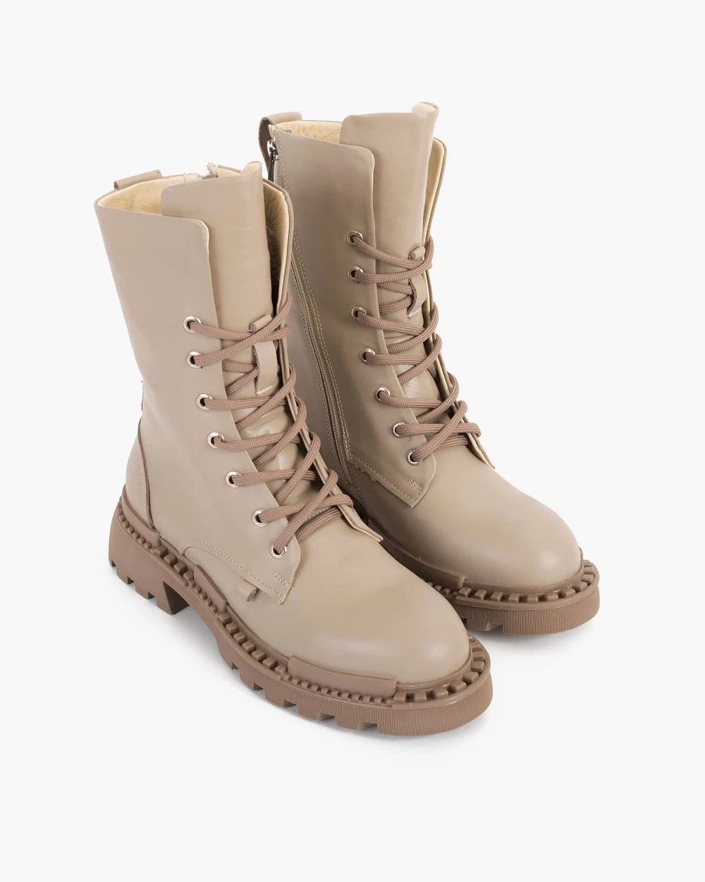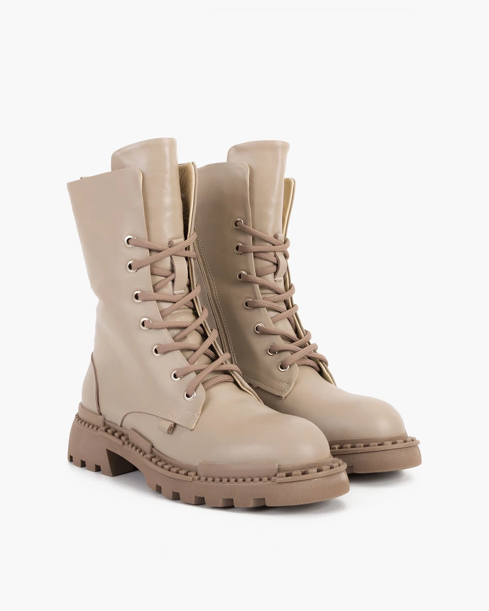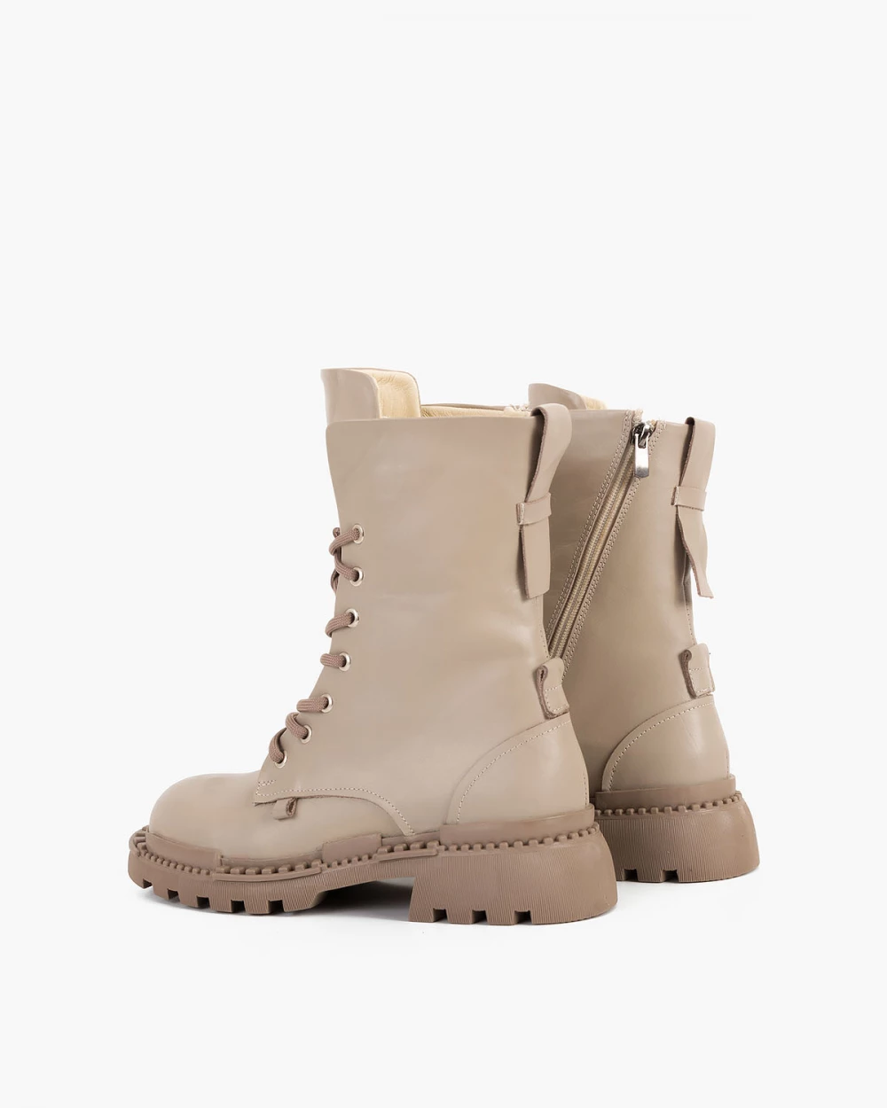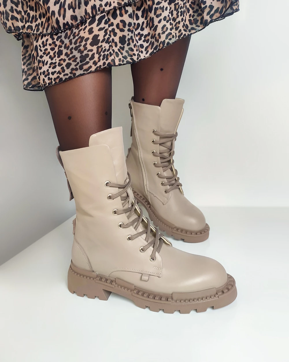 Beżowe trzewiki damskie skórzane