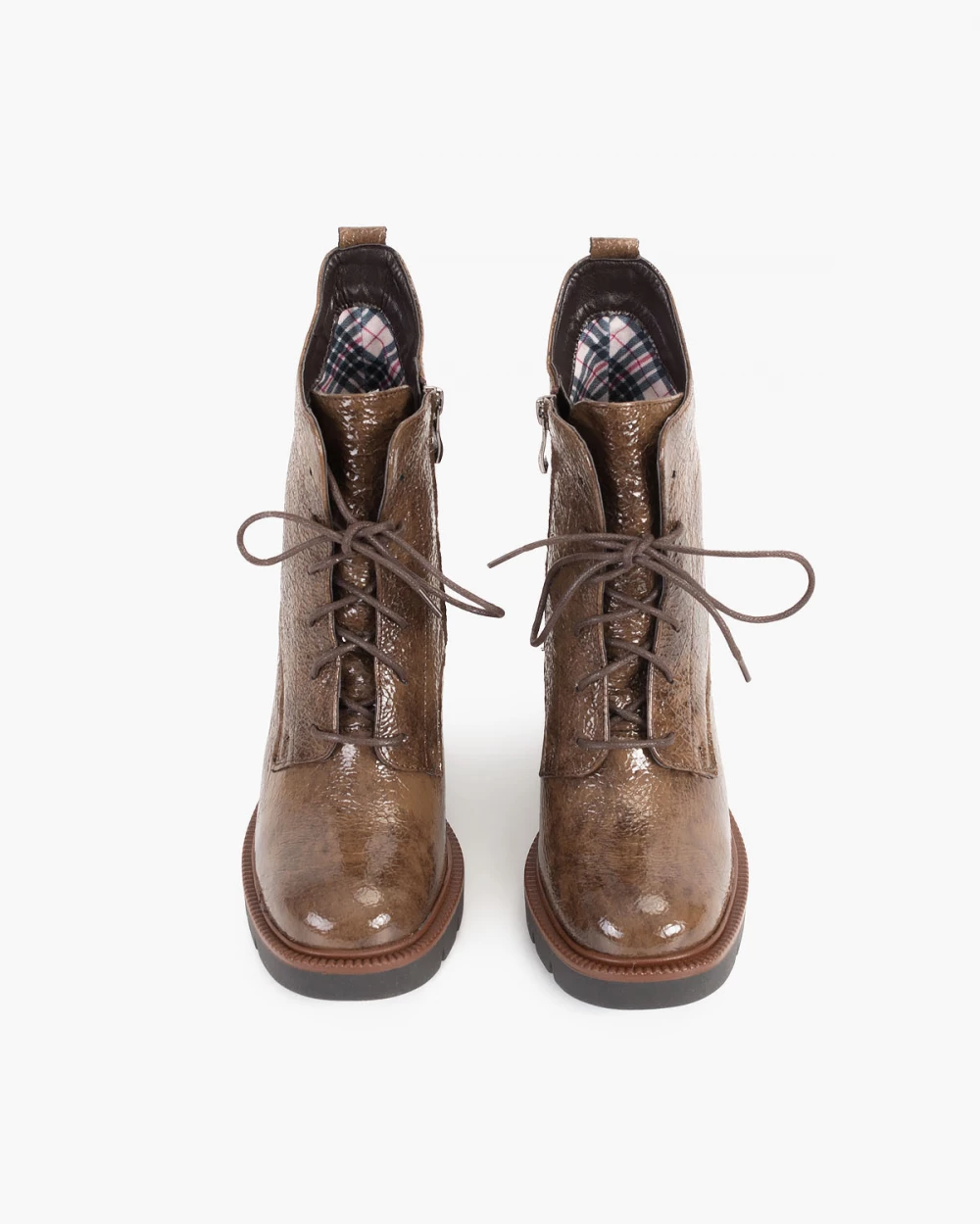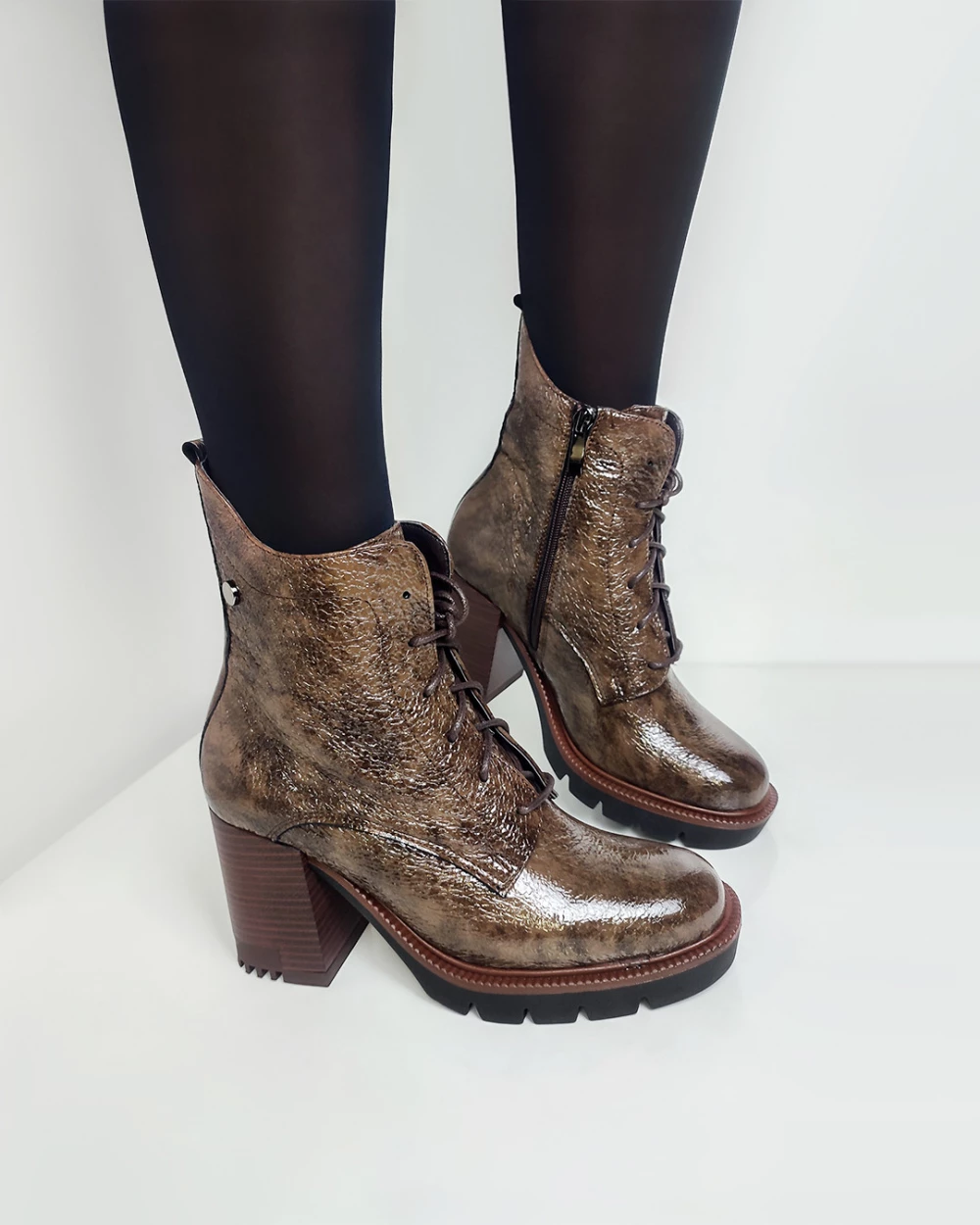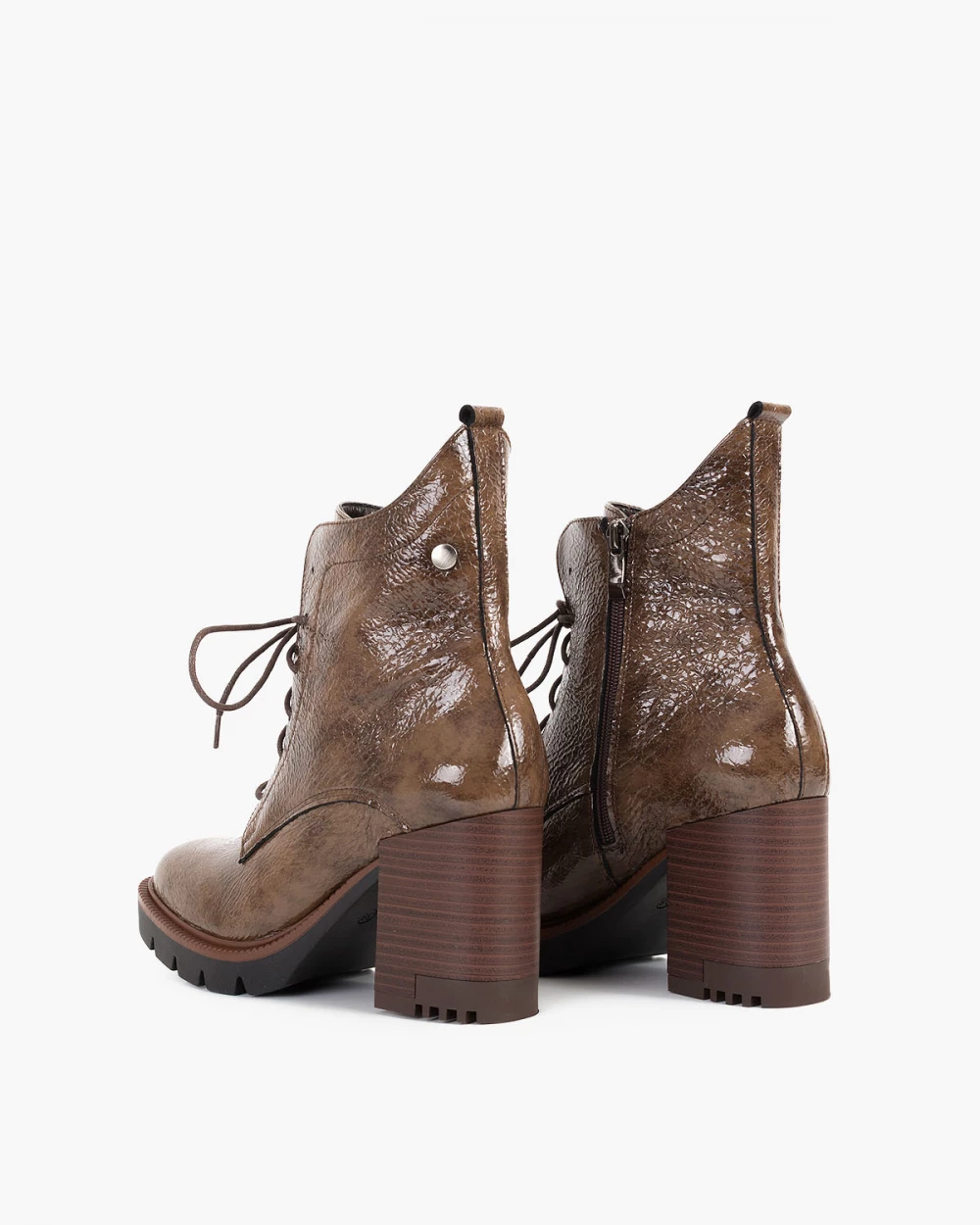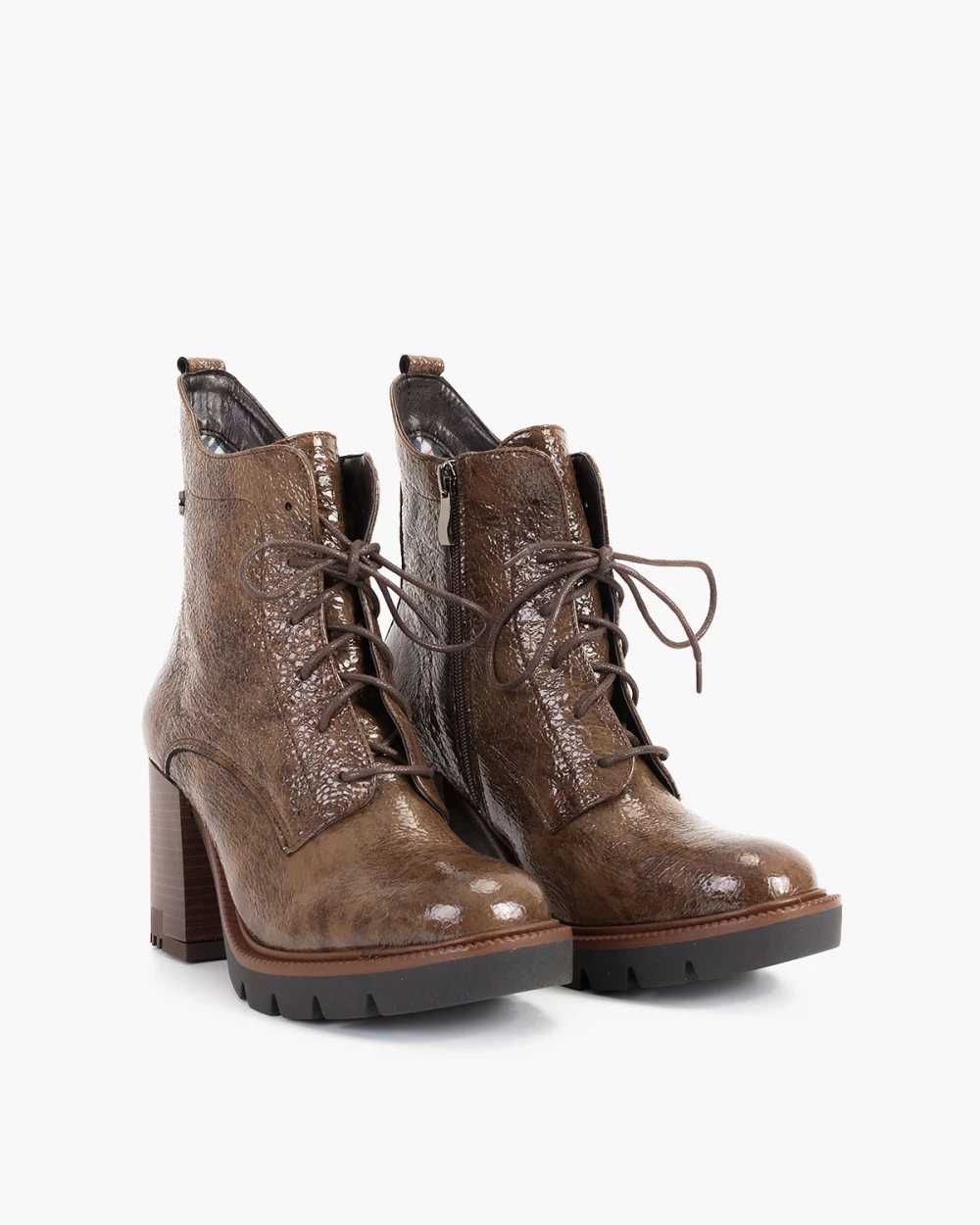 Brązowe trzewiki damskie lakierowane na słupku