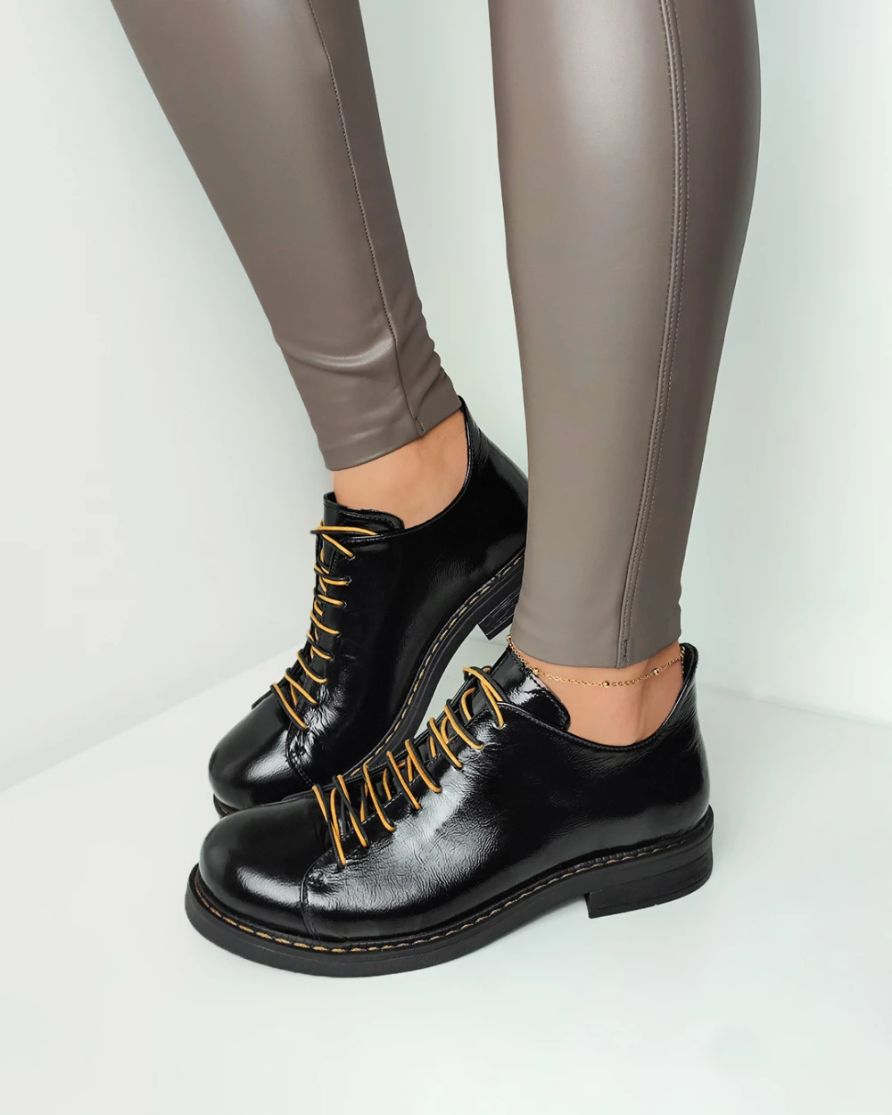 Czarne półbuty damskie lakierowane
