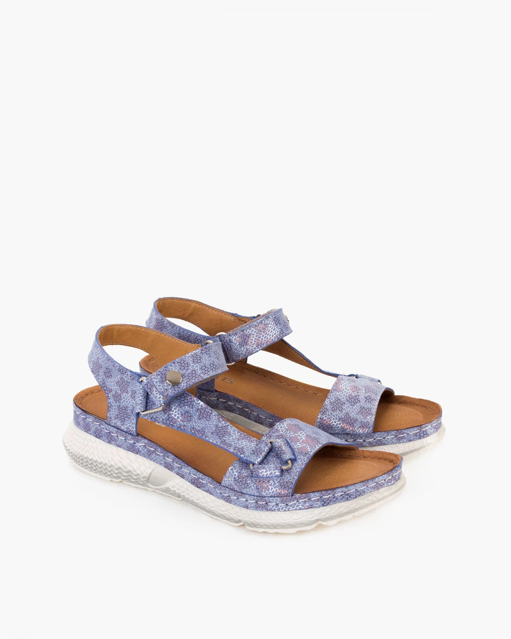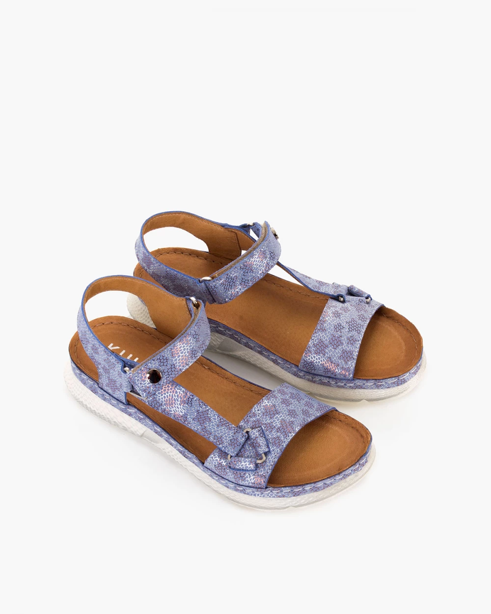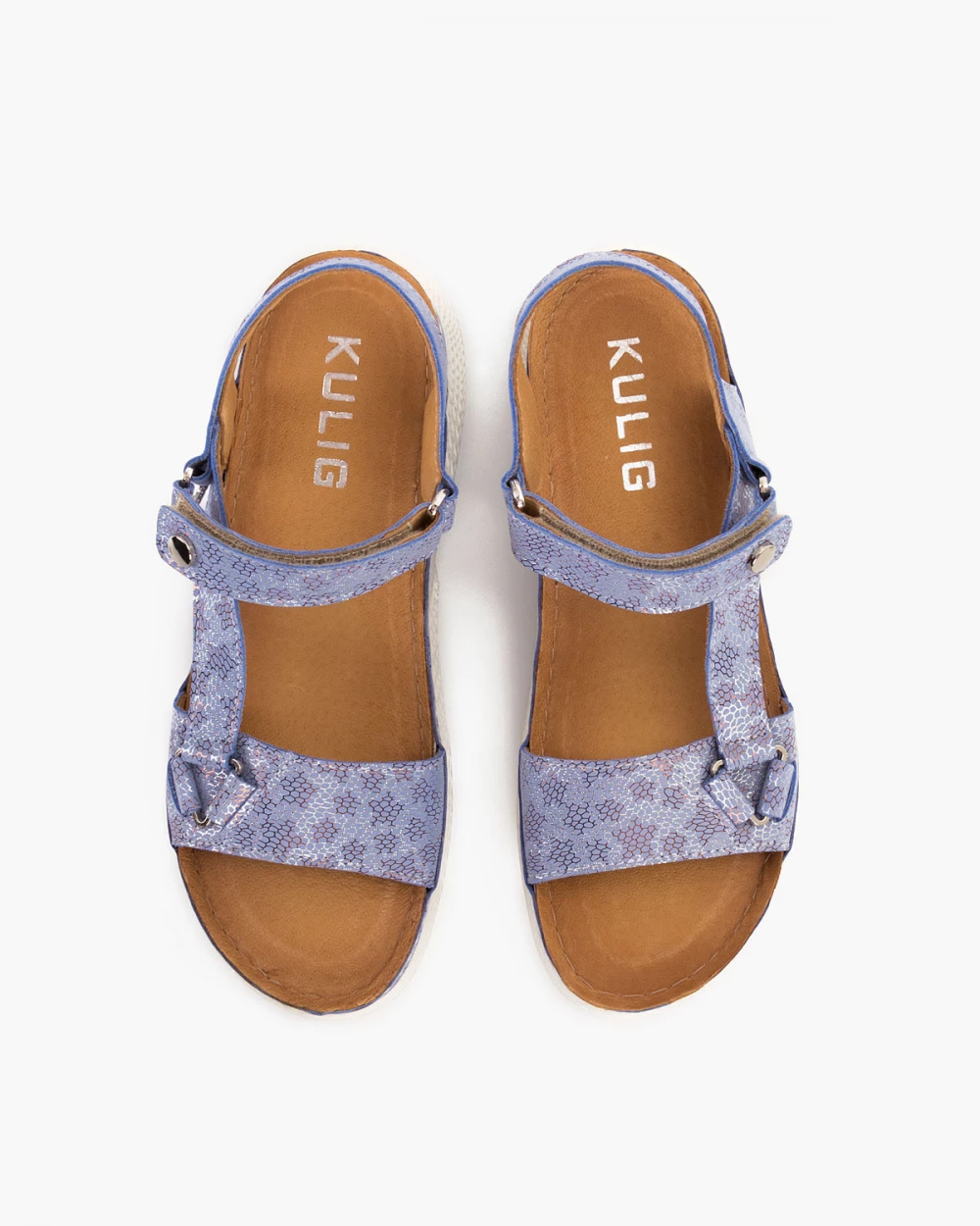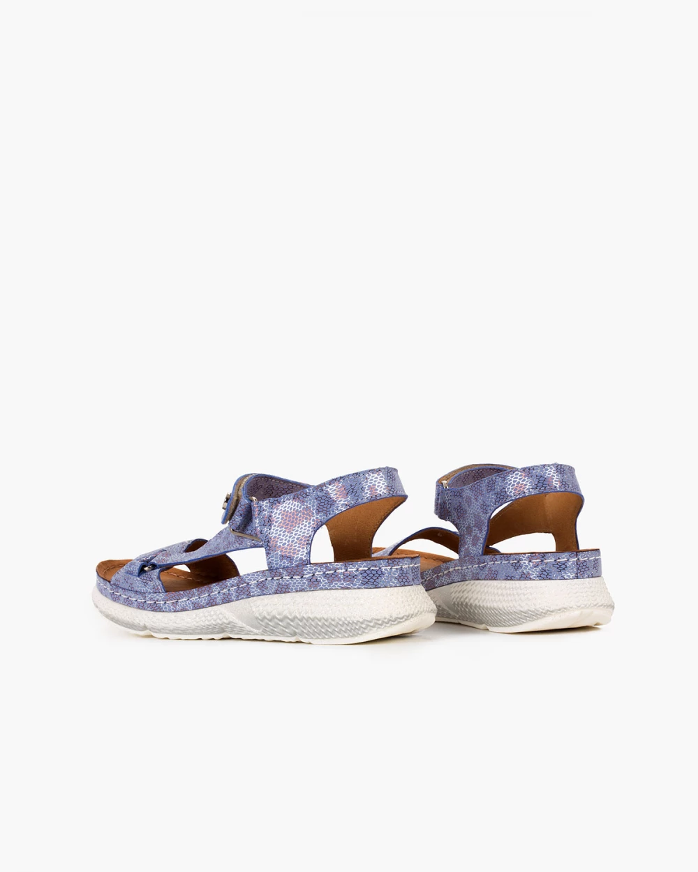 Niebieskie sandały damskie ze skóry nubukowej z motywem