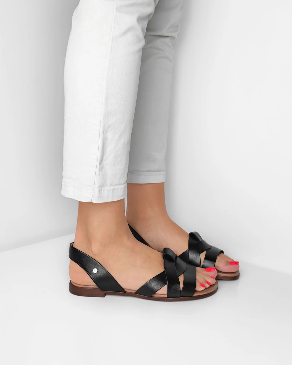 Czarne sandały damskie skórzane
