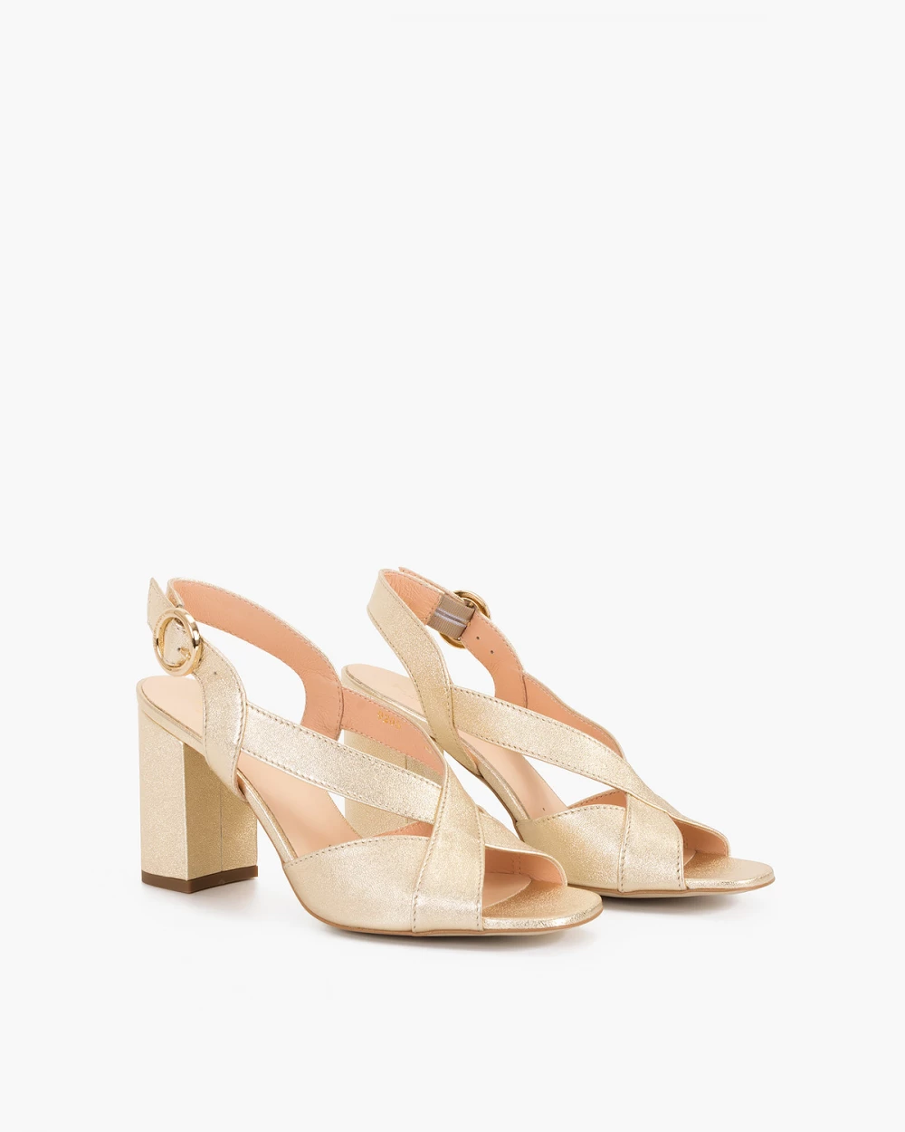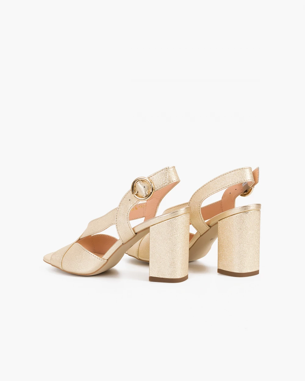 Złote sandały damskie nubukowe na słupku