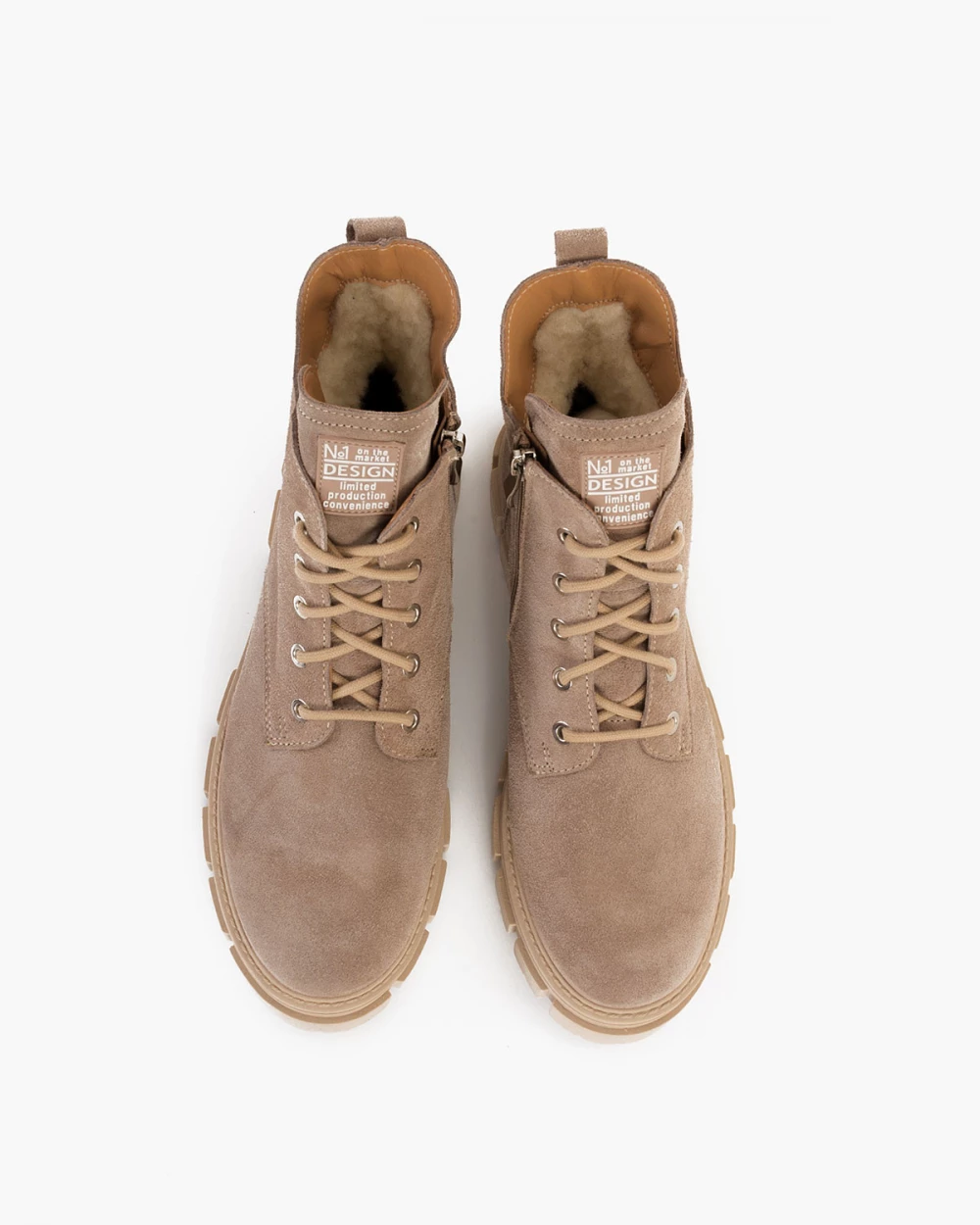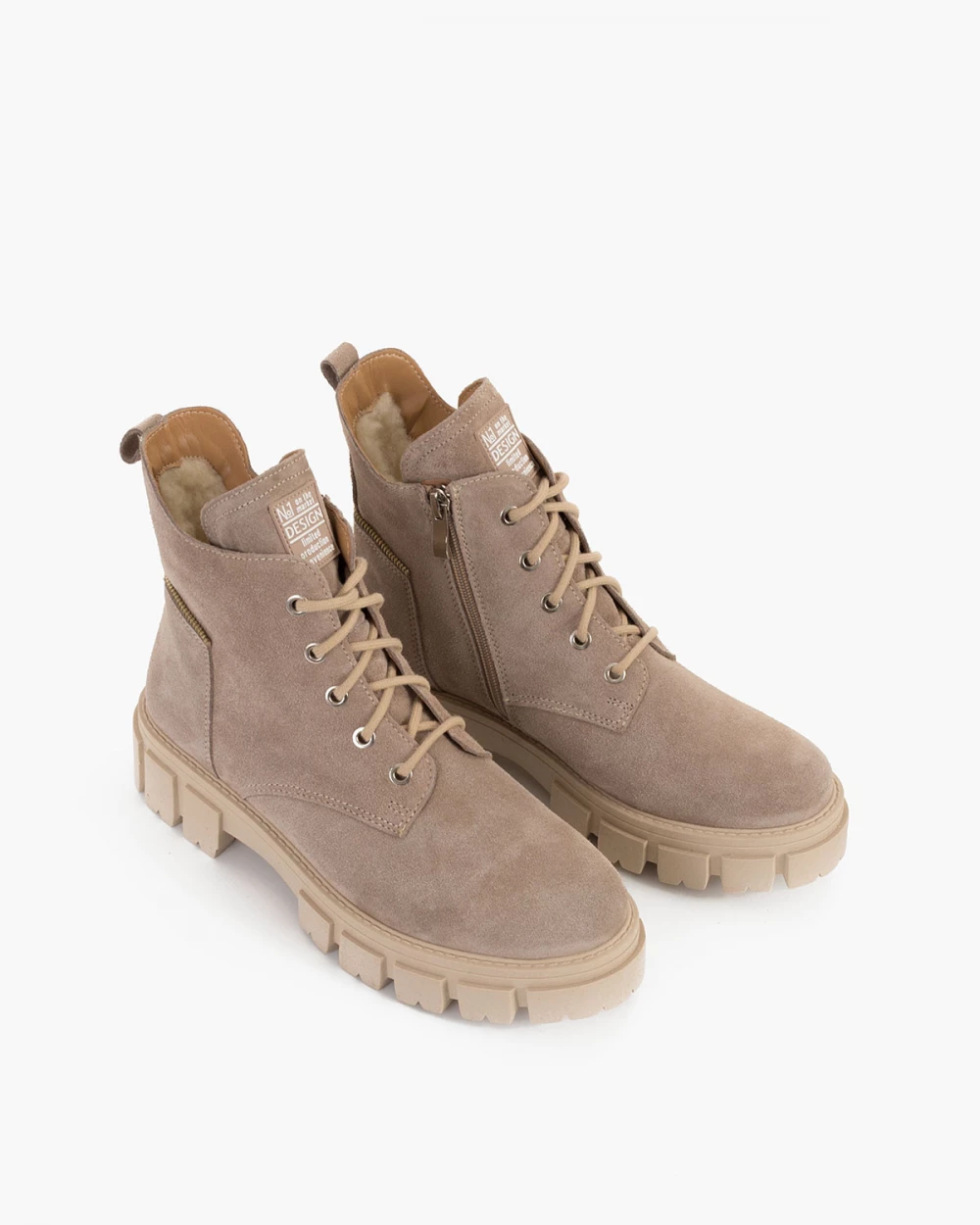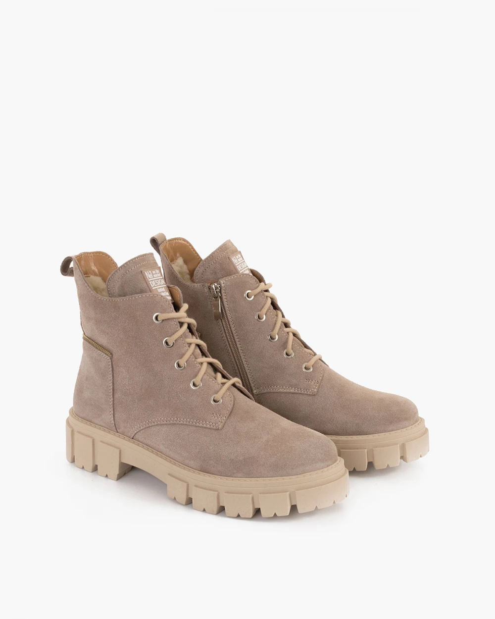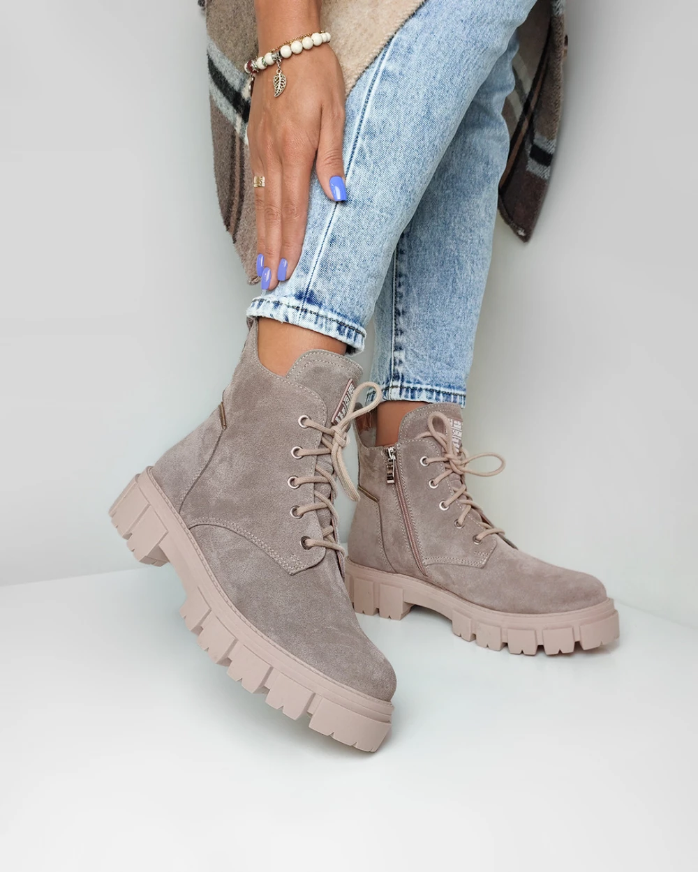 Beżowe trzewiki damskie welurowe