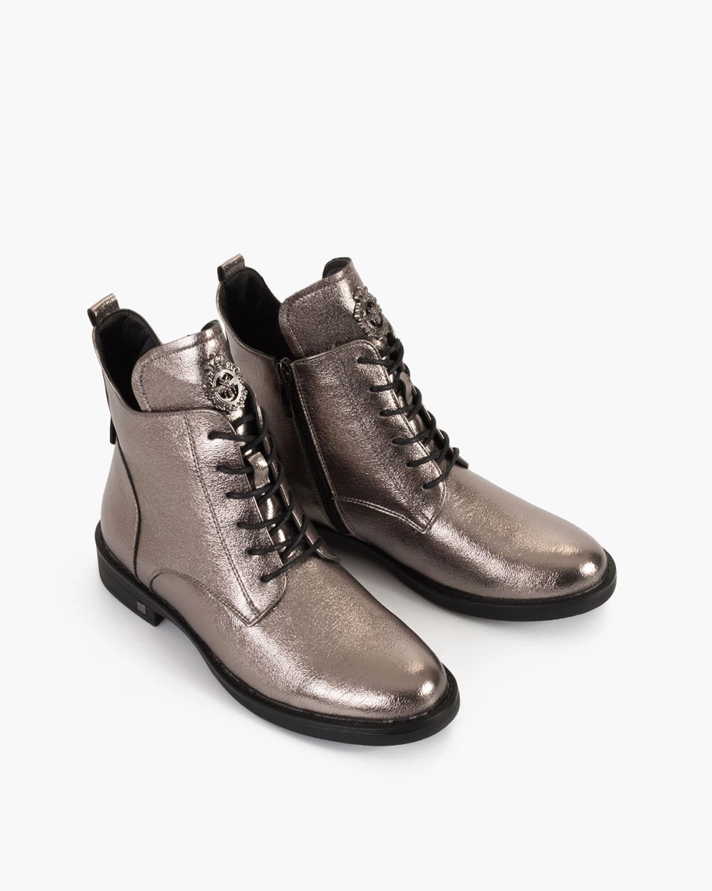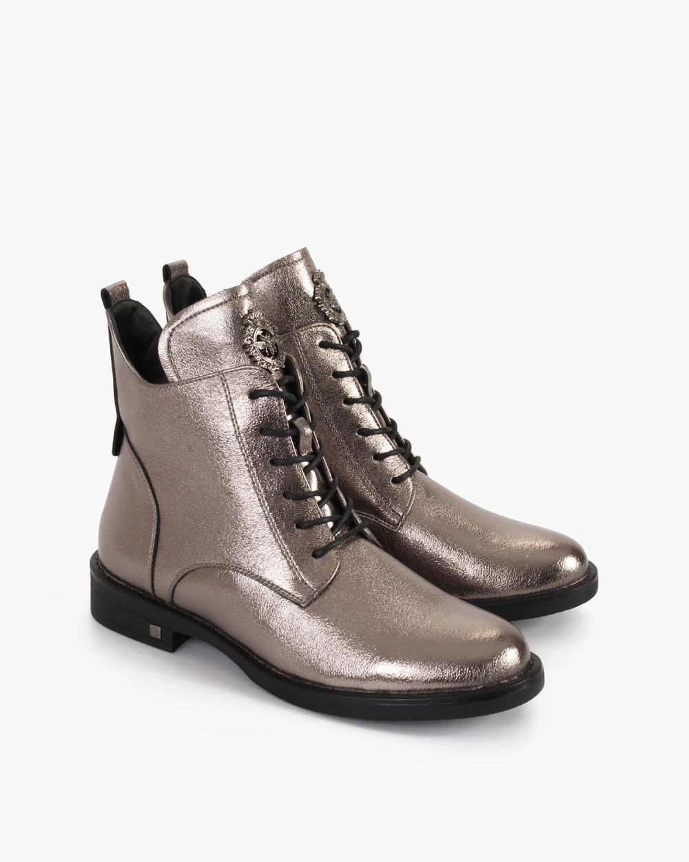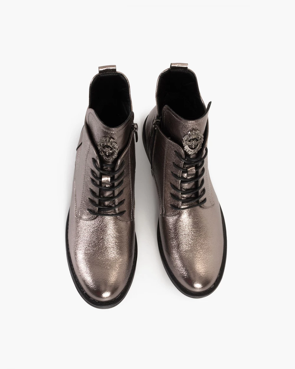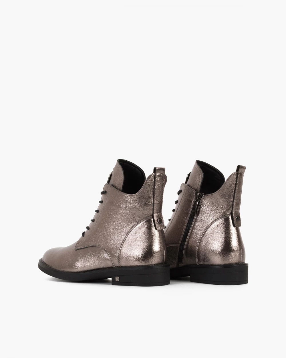 Srebrne trzewiki damskie ze skóry ekologicznej