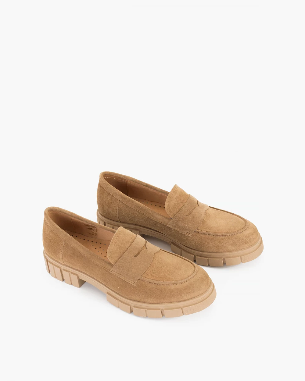 Beżowe mokasyny damskie welurowe