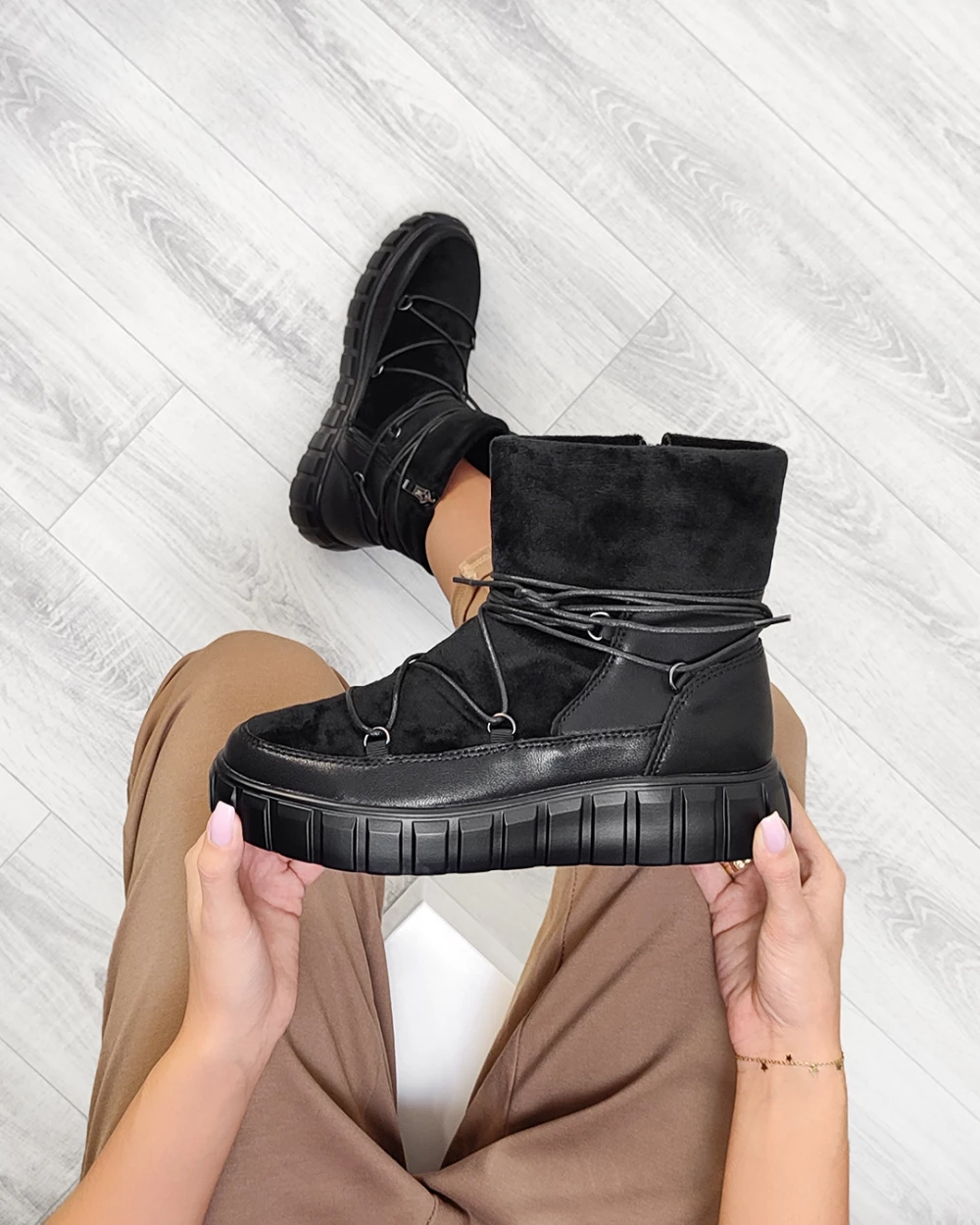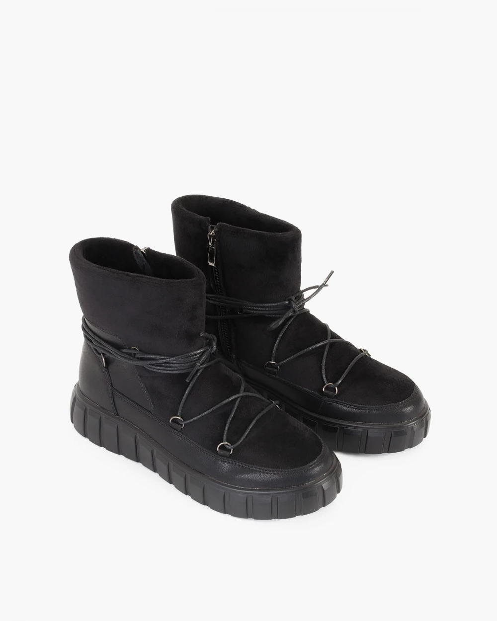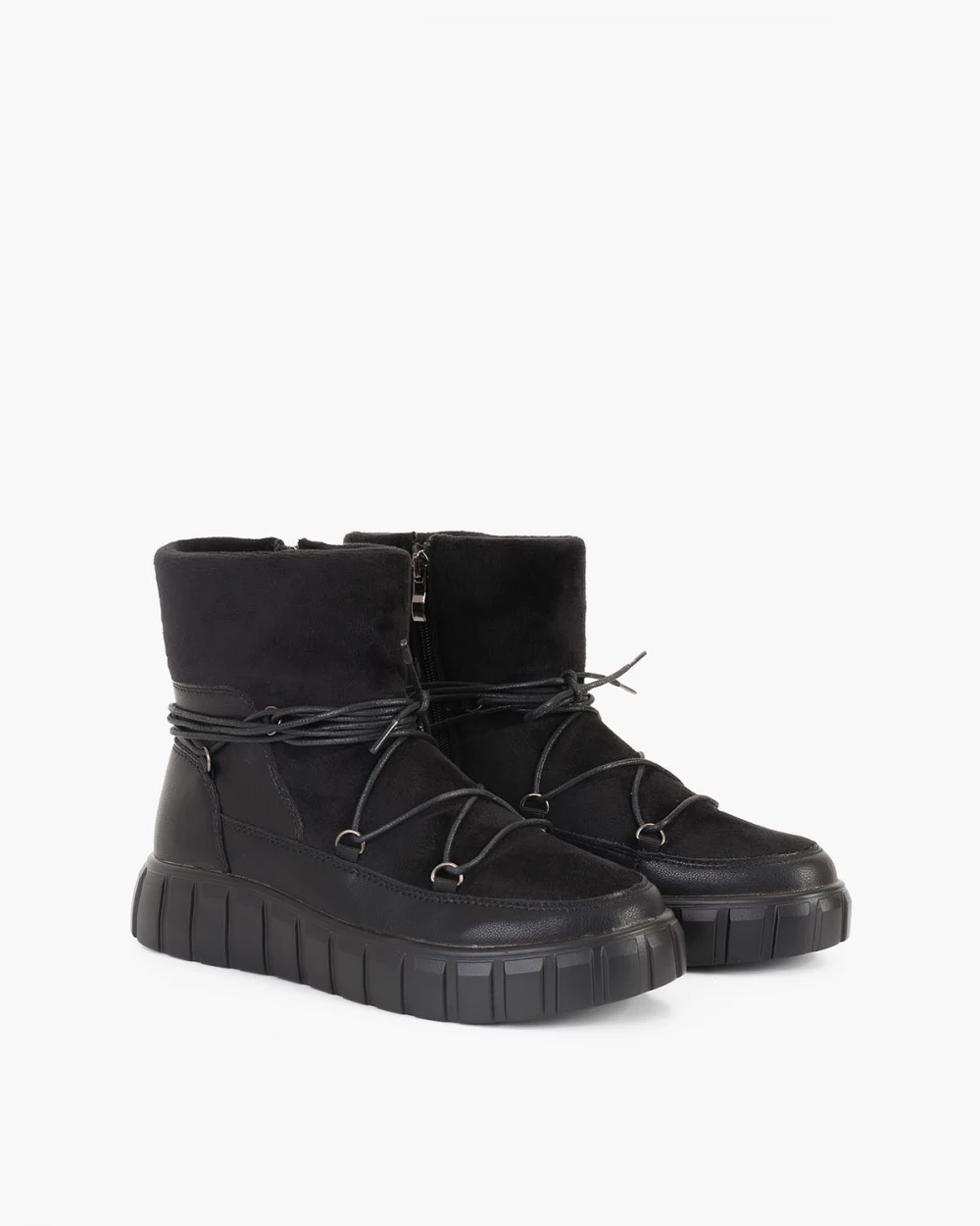 Czarne śniegowce damskie z eko-zamszu