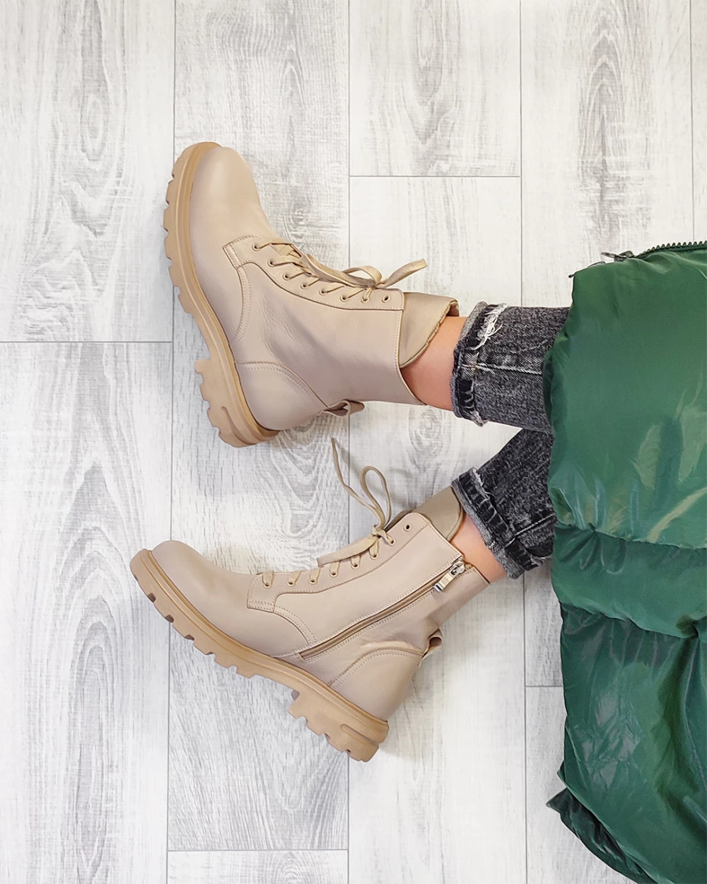 Beżowe trzewiki damskie skórzane