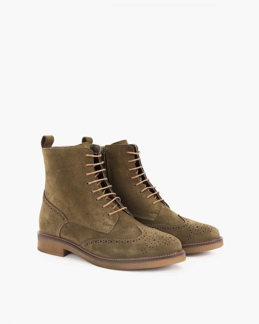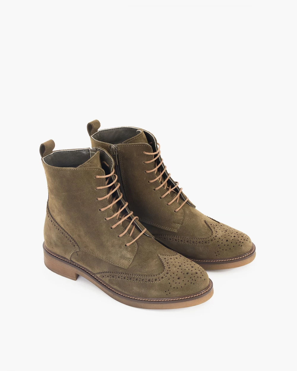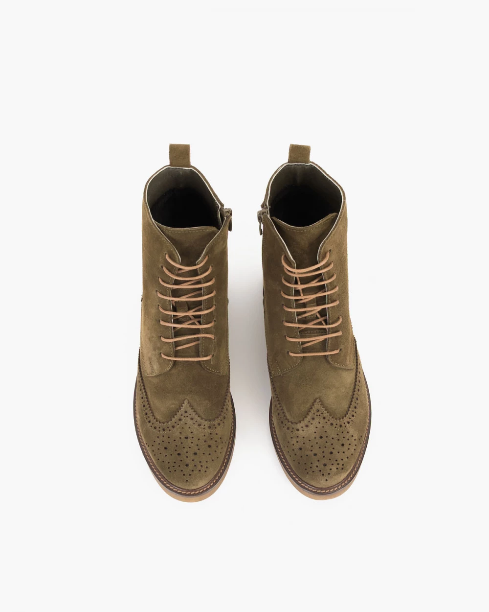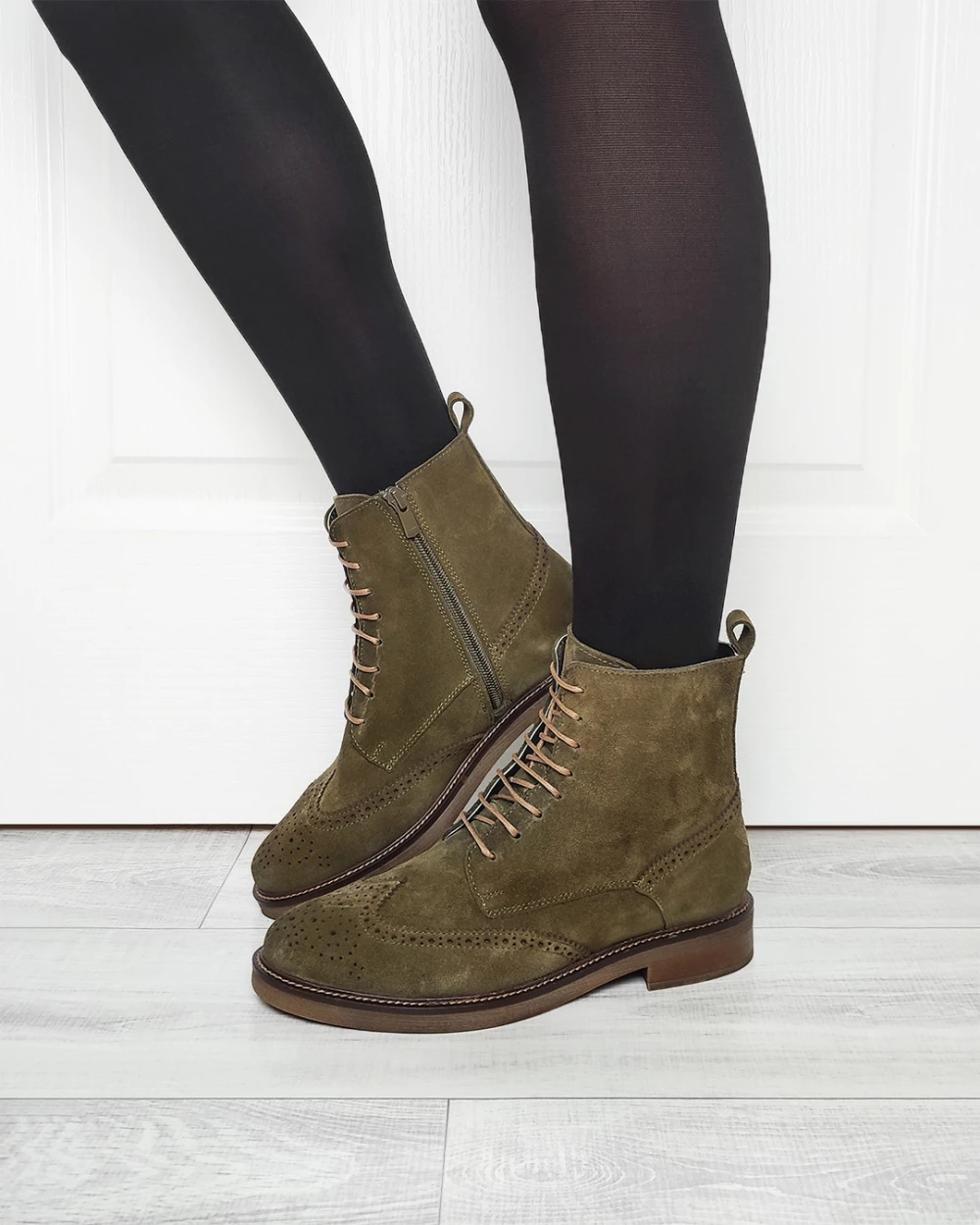 Oliwkowe trzewiki damskie welurowe
