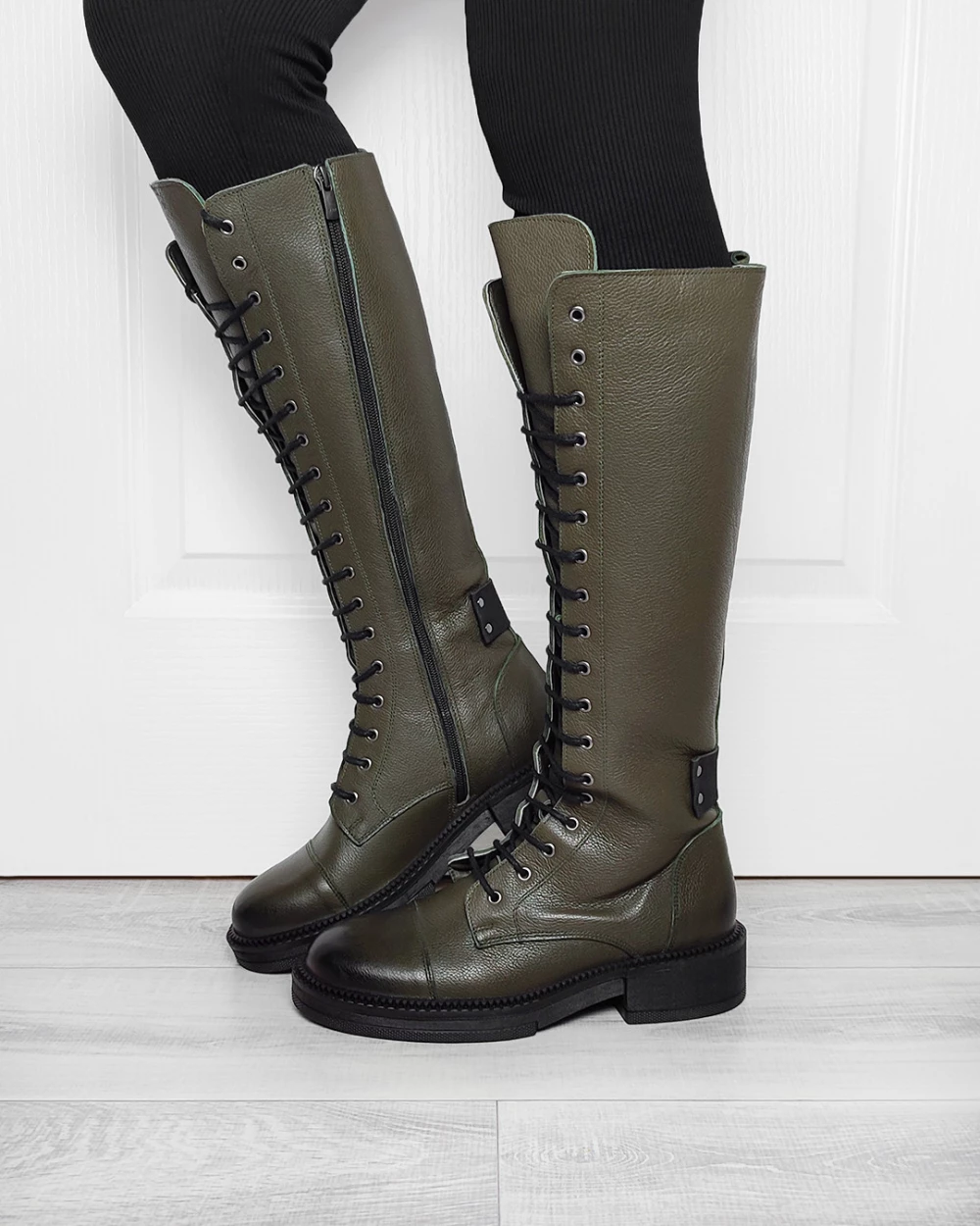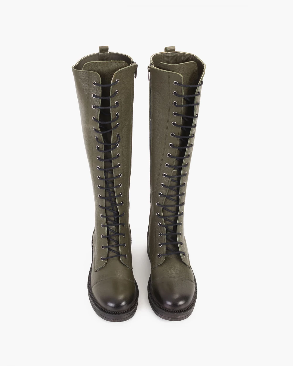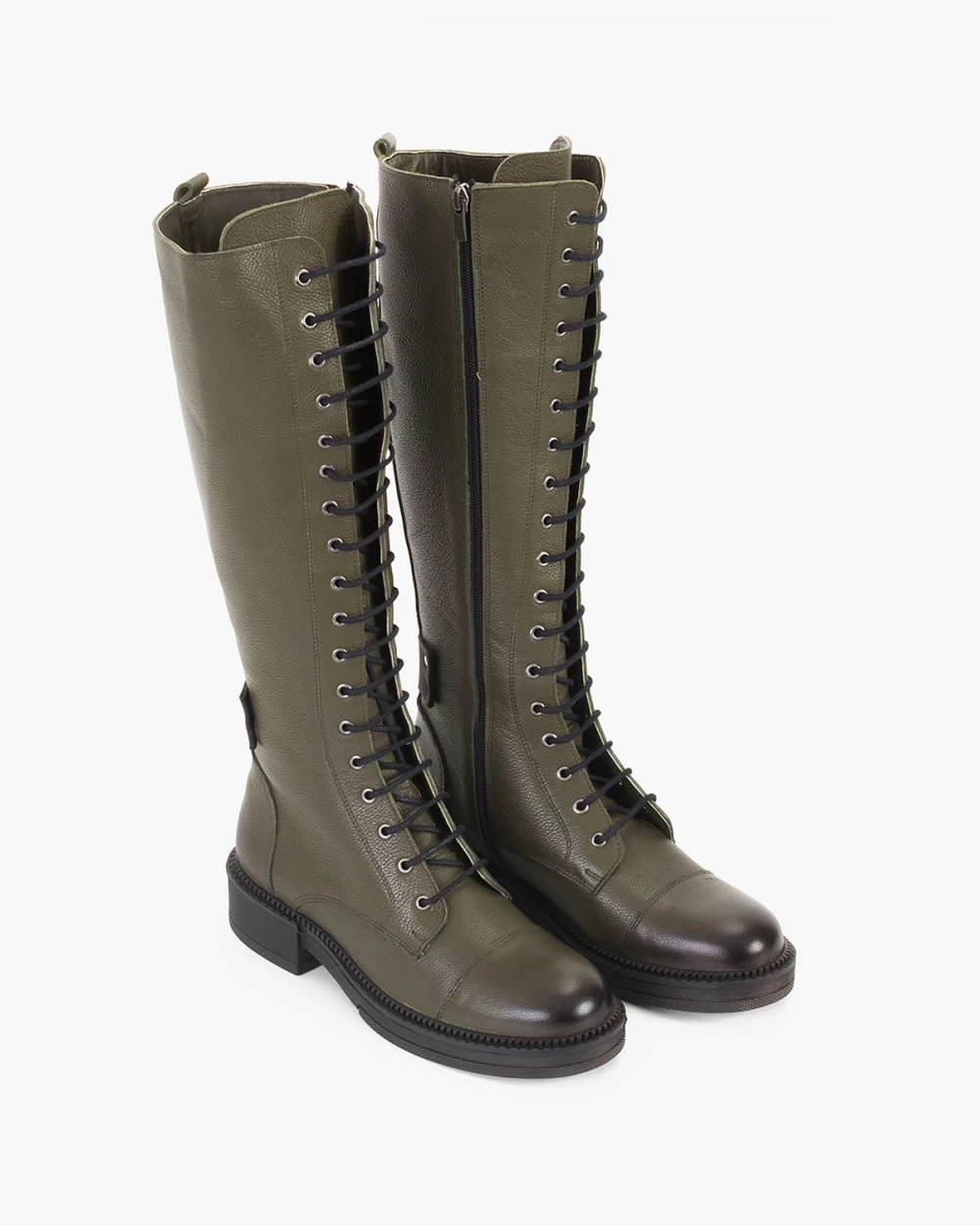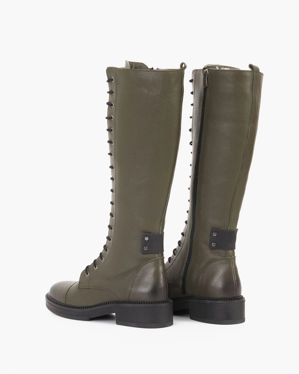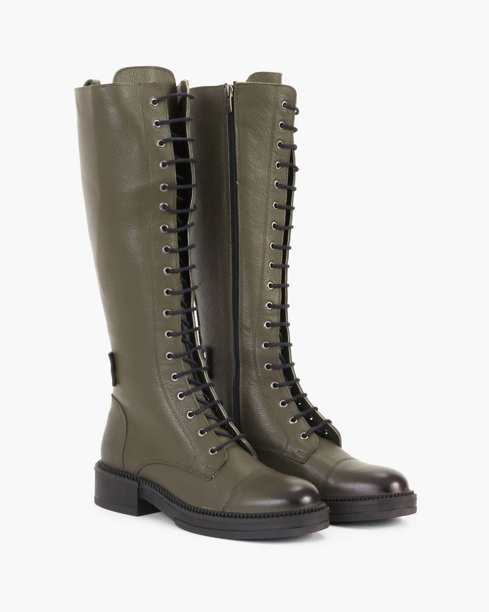 Oliwkowe kozaki damskie skórzane