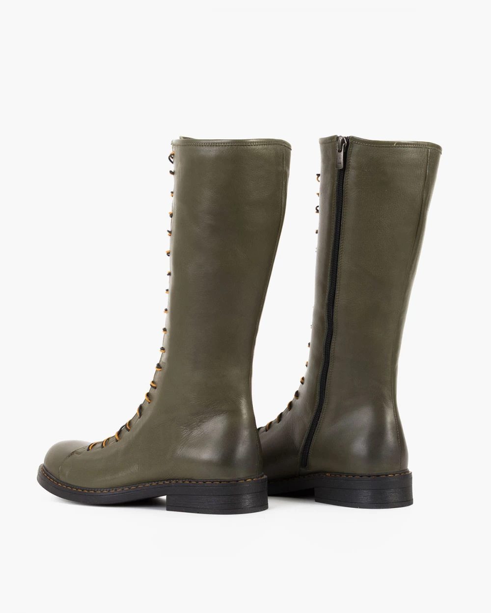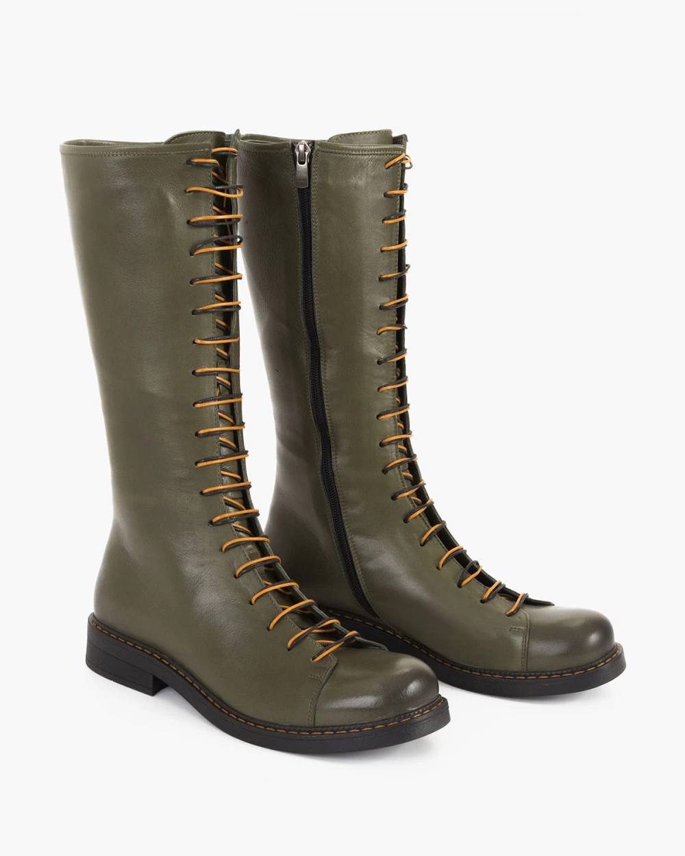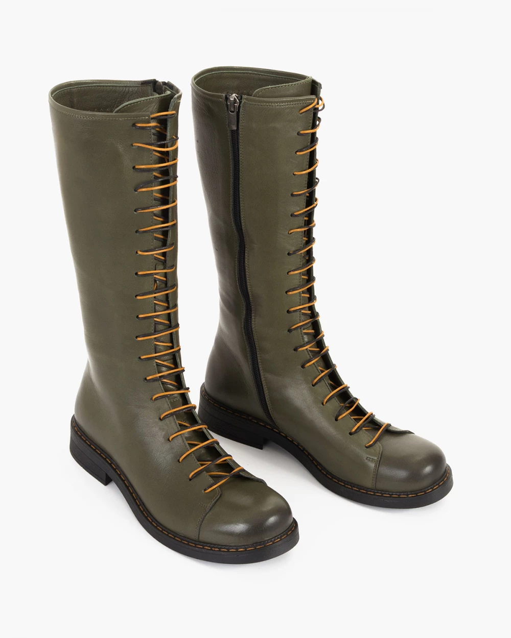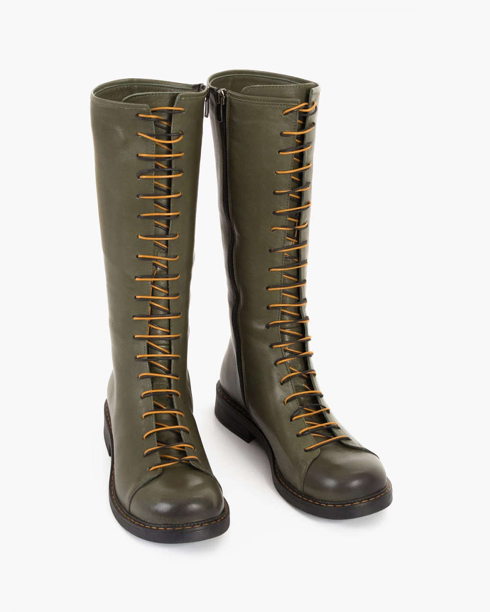 Oliwkowe kozaki damskie skórzane