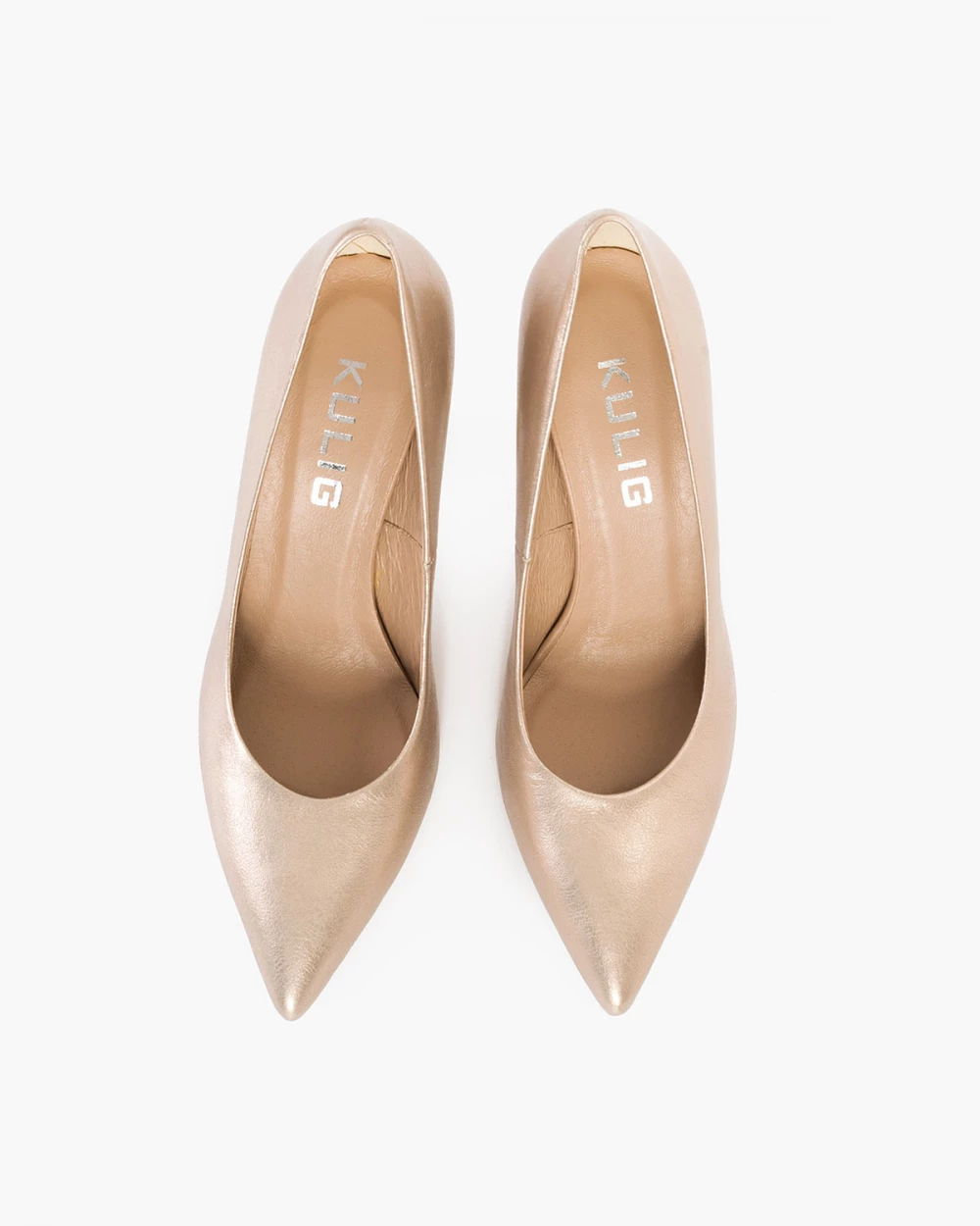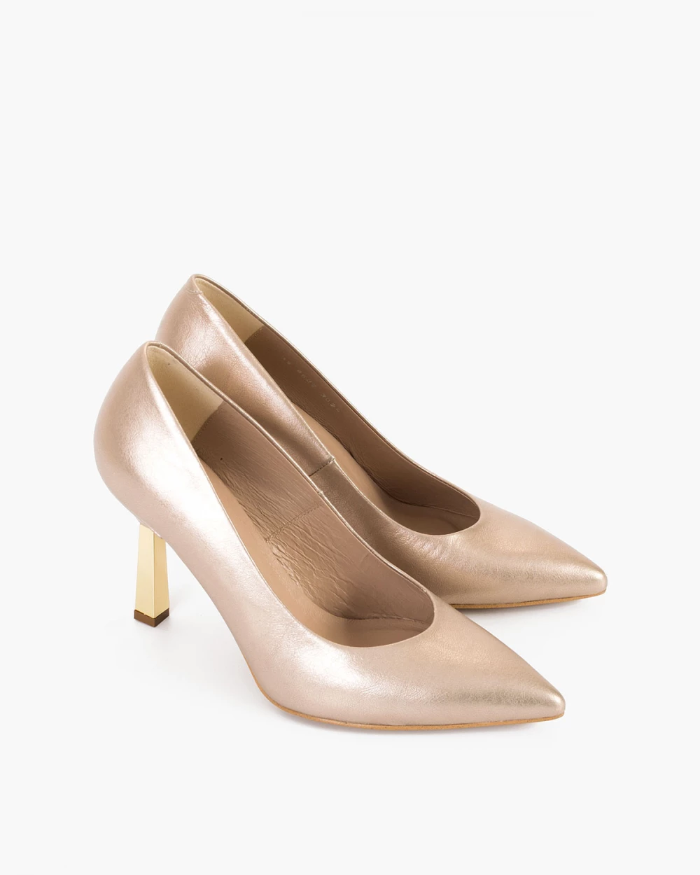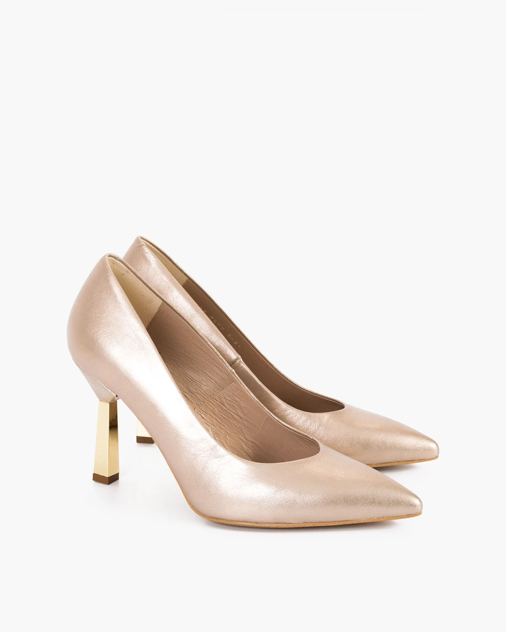 Złote czółenka skórzane na szpilce