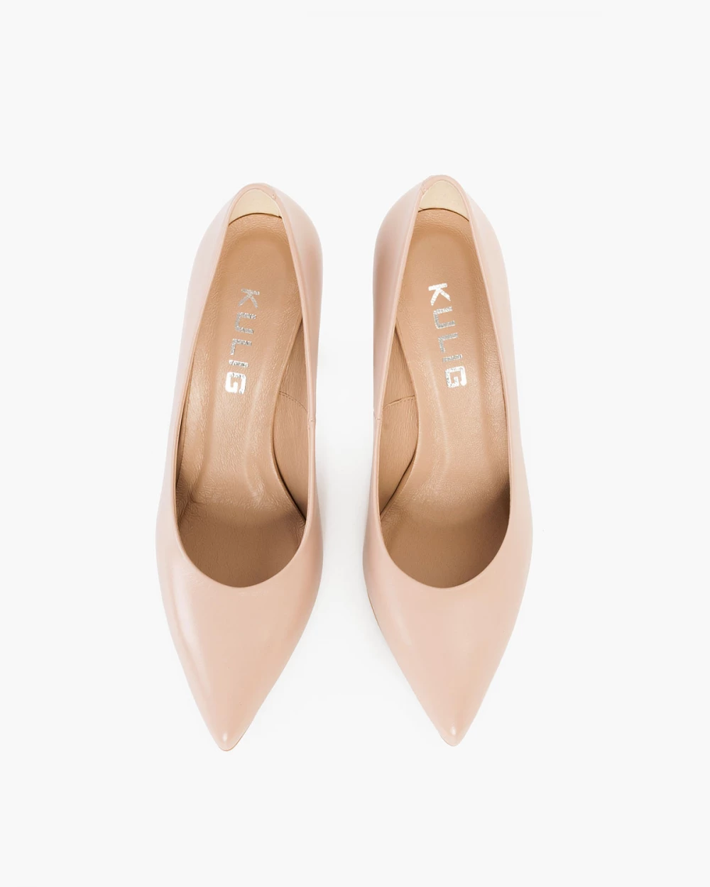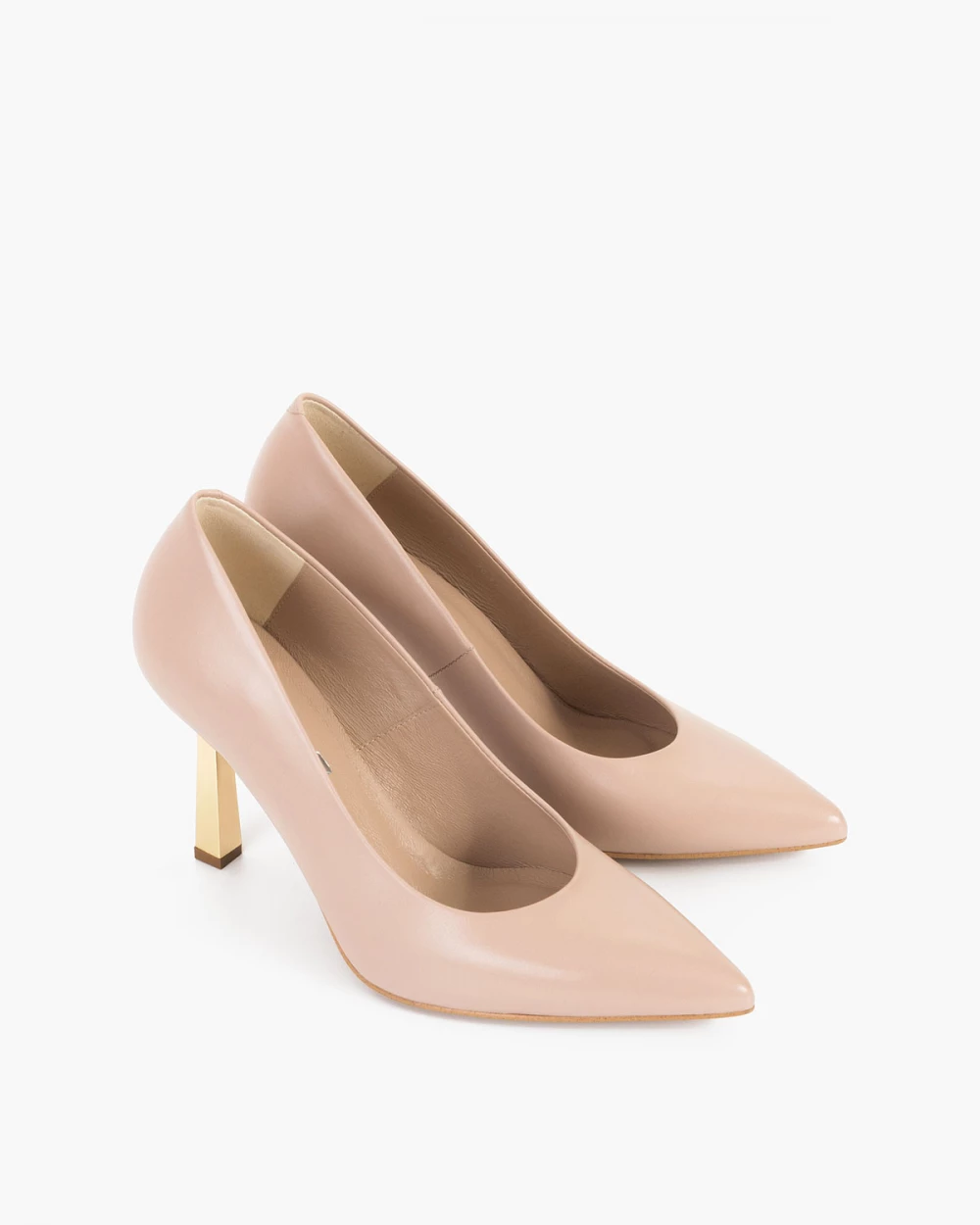Beżowe czółenka skórzane na szpilce