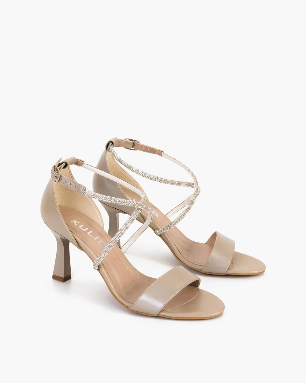 Beżowe sandały damskie skórzane na szpilce