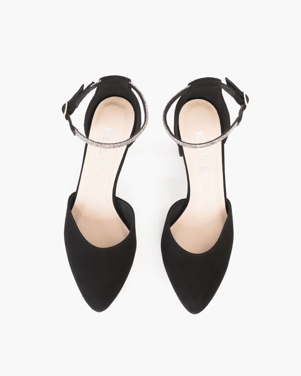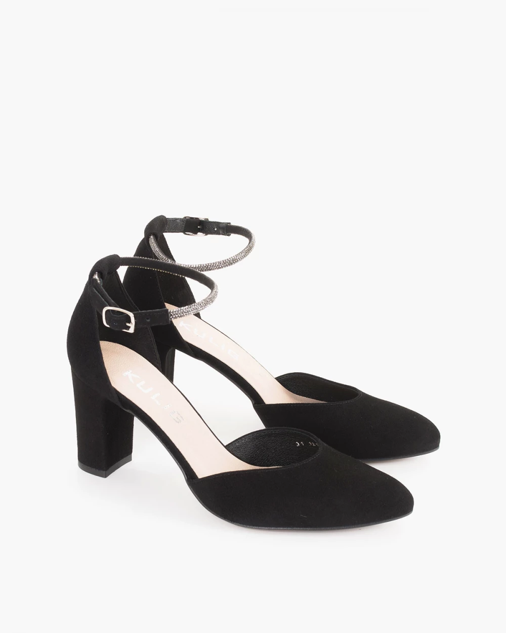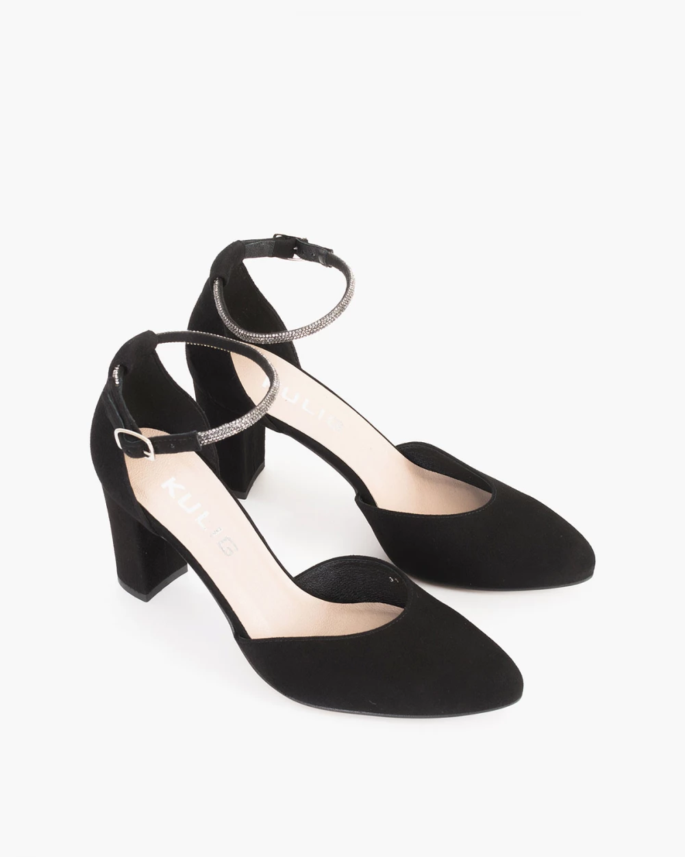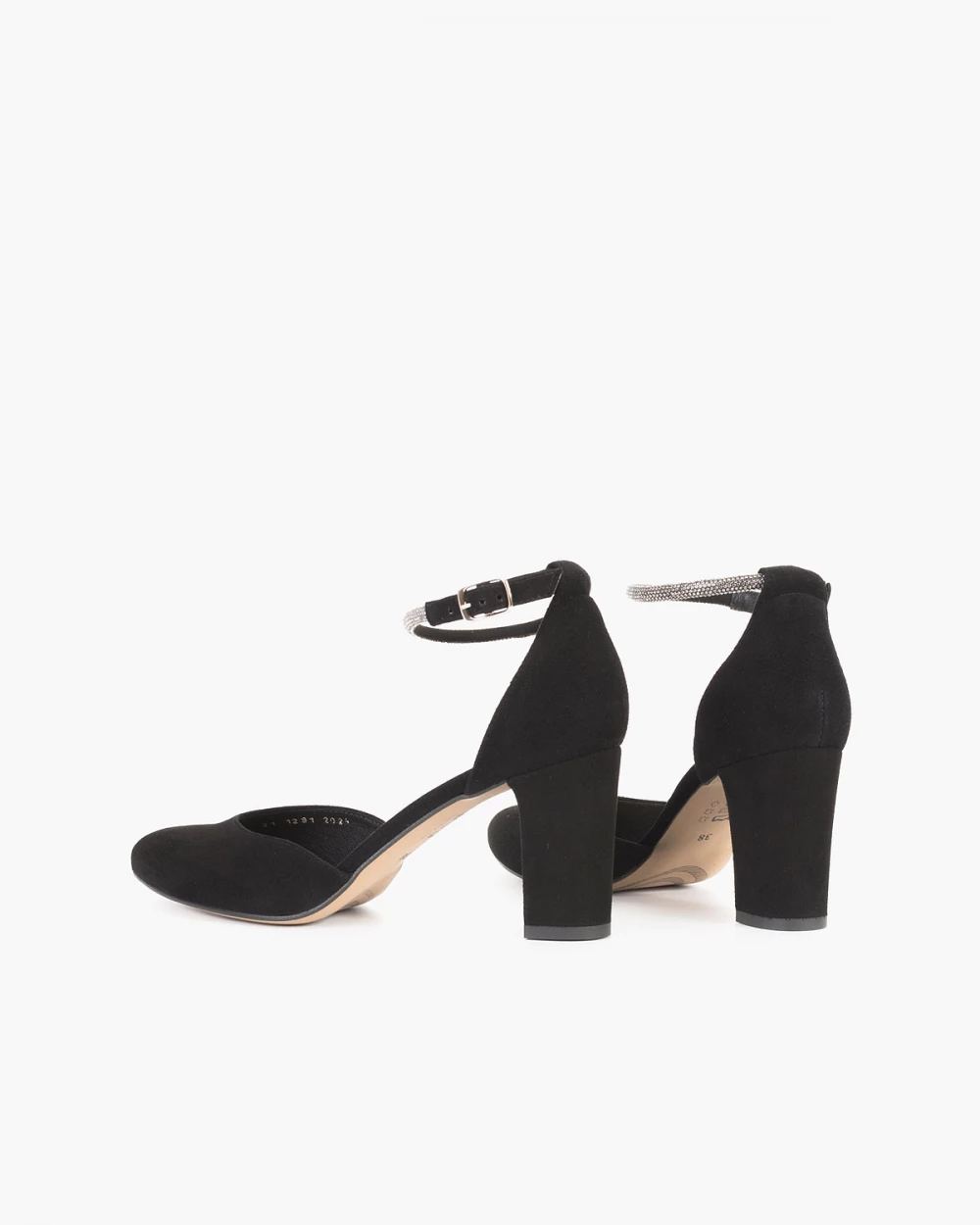 Czarne sandały damskie zamszowe na słupku