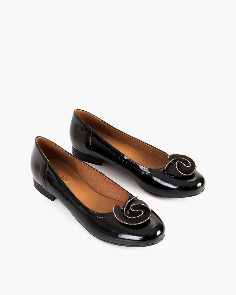 Czarne baleriny lakierowane z różą