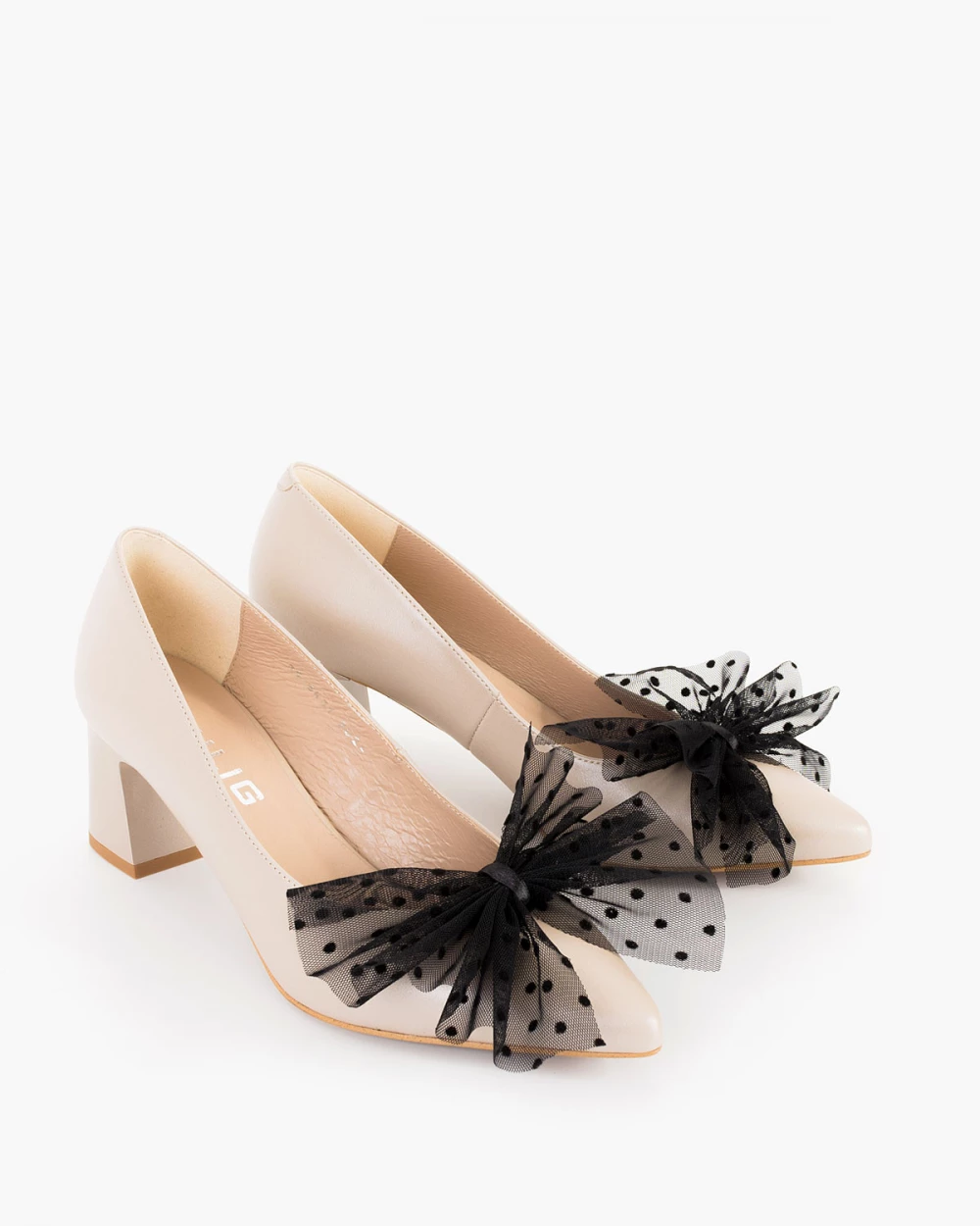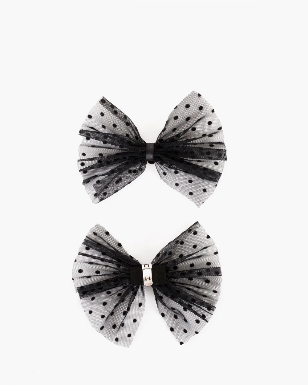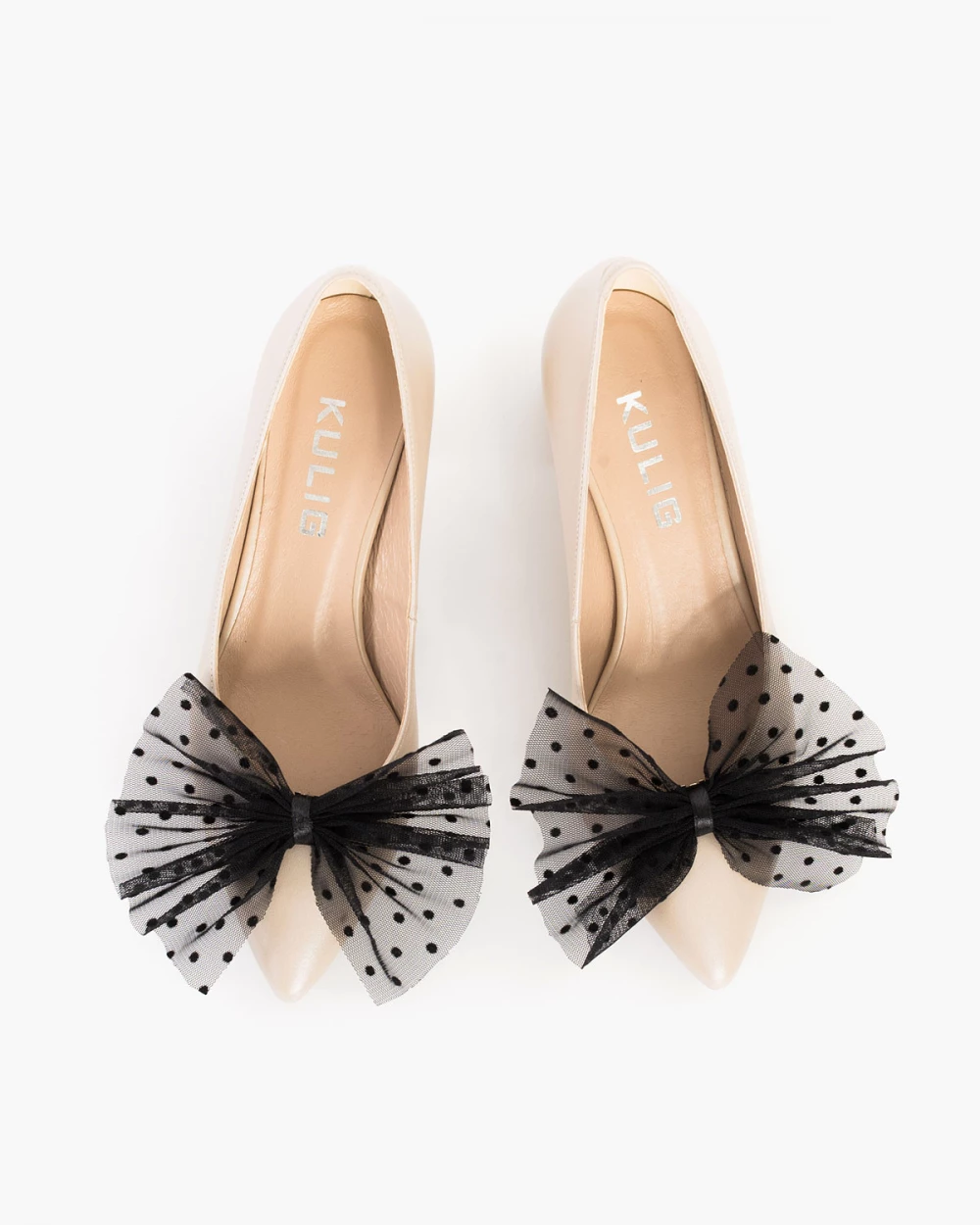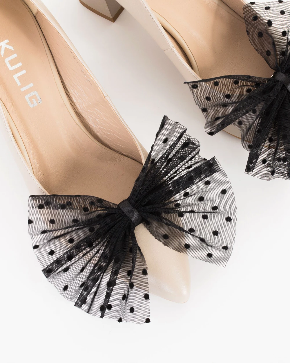 Czarne kokardy do butów w groszki