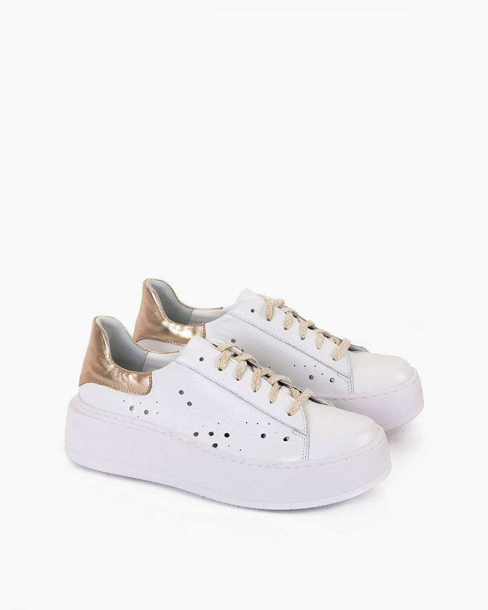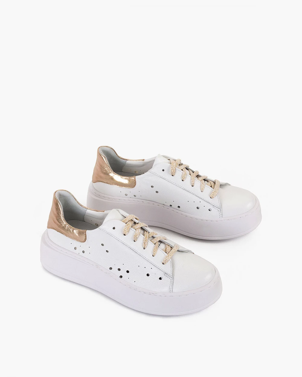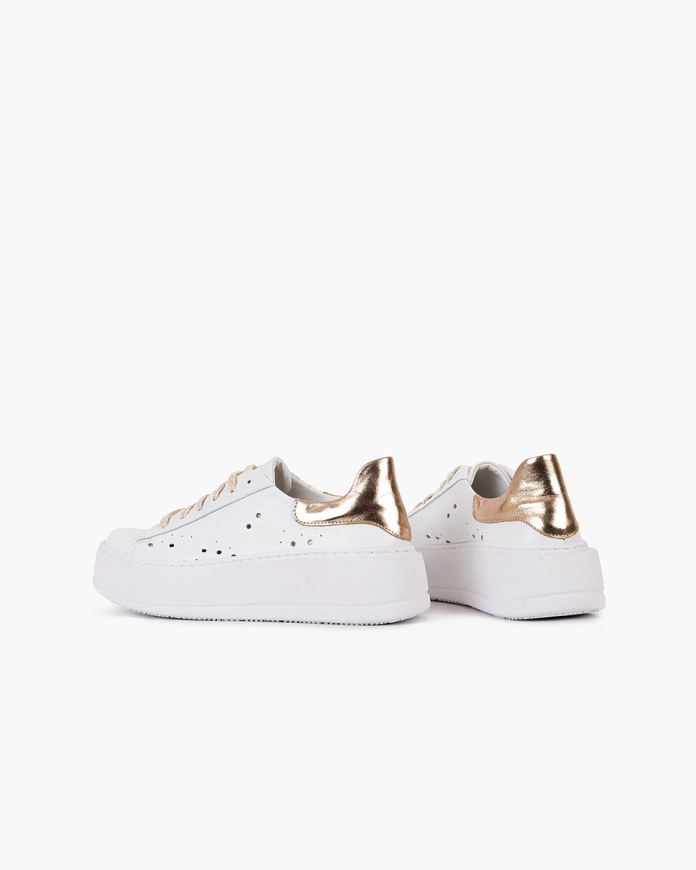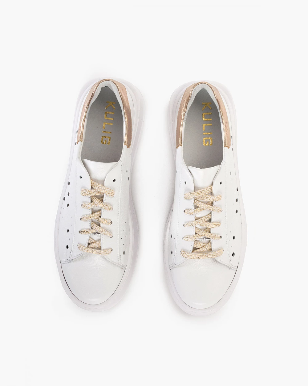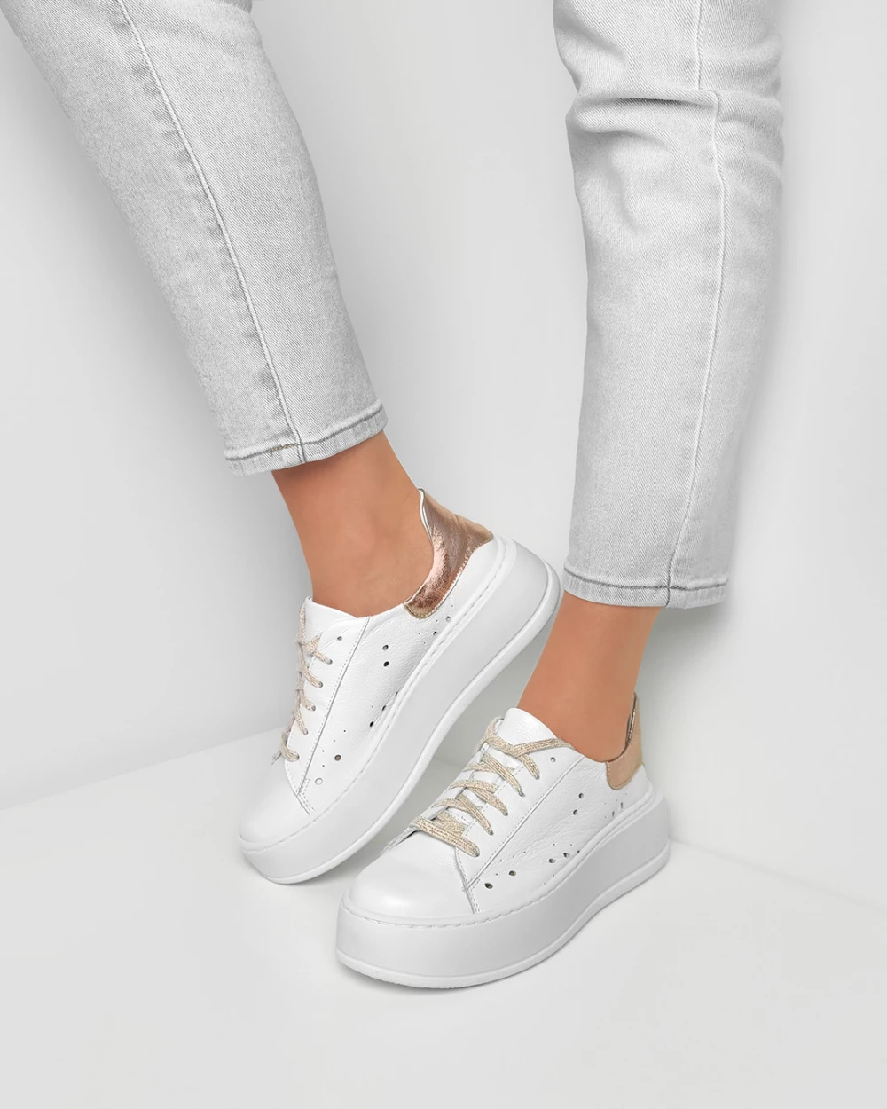 Białe trampki damskie skórzane ze złotymi wstawkami