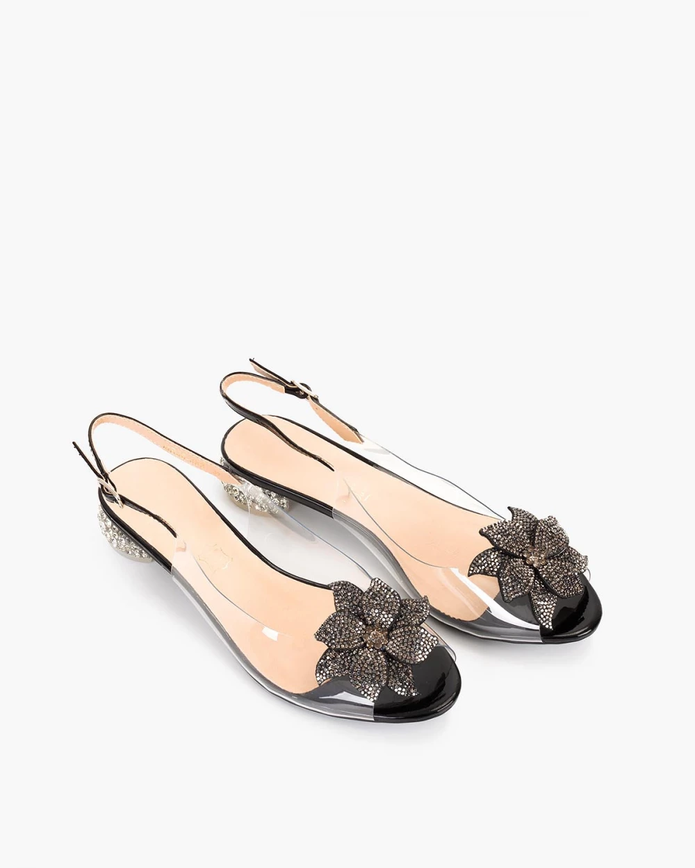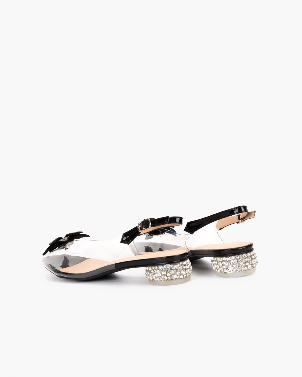 Czarne sandały damskie żelowe na klocku z cyrkoniami