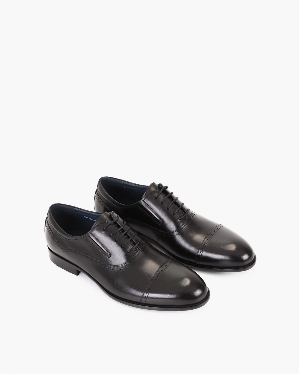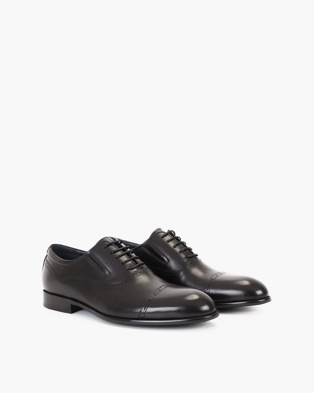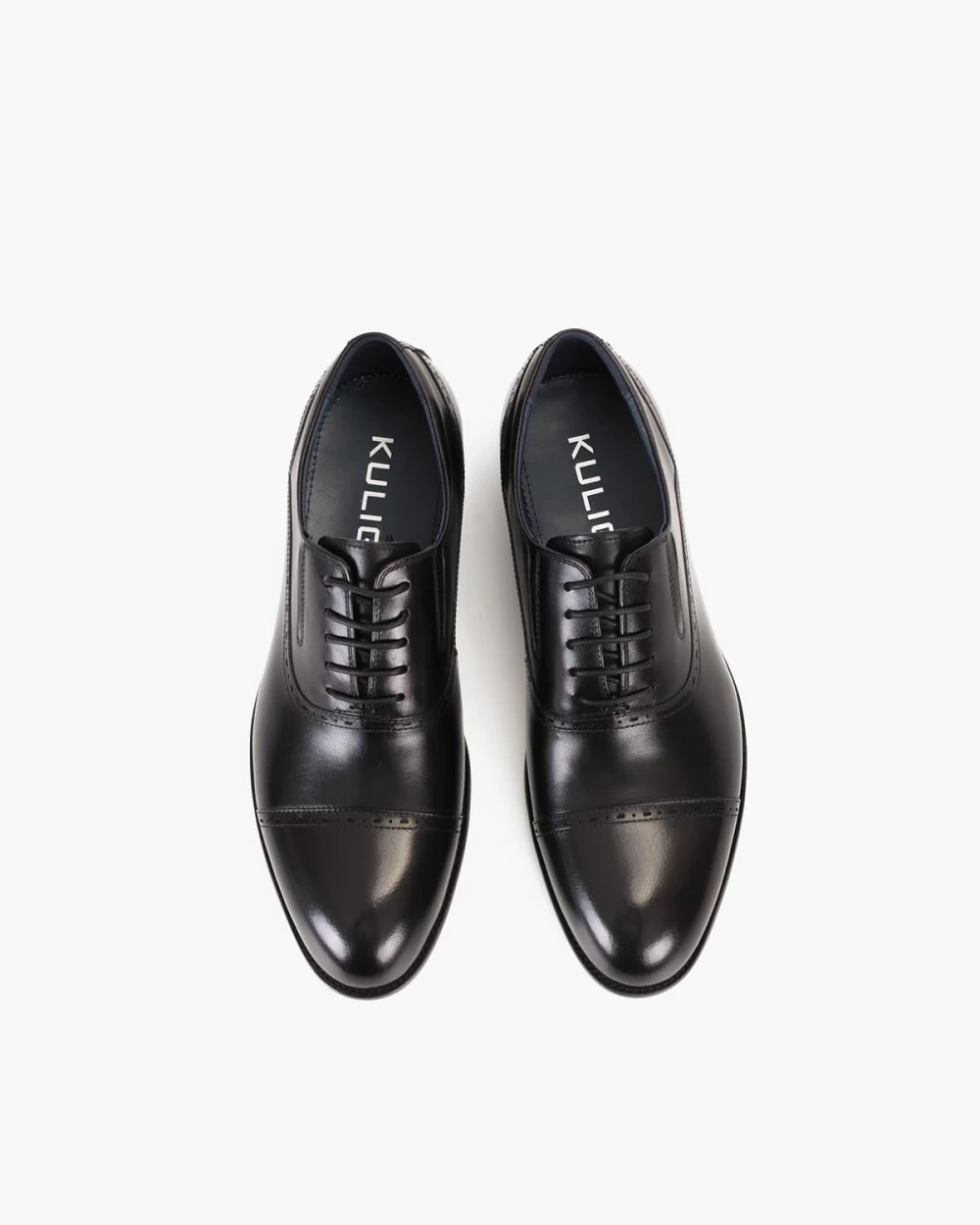 Czarne półbuty wizytowe męskie ze skóry licowej
